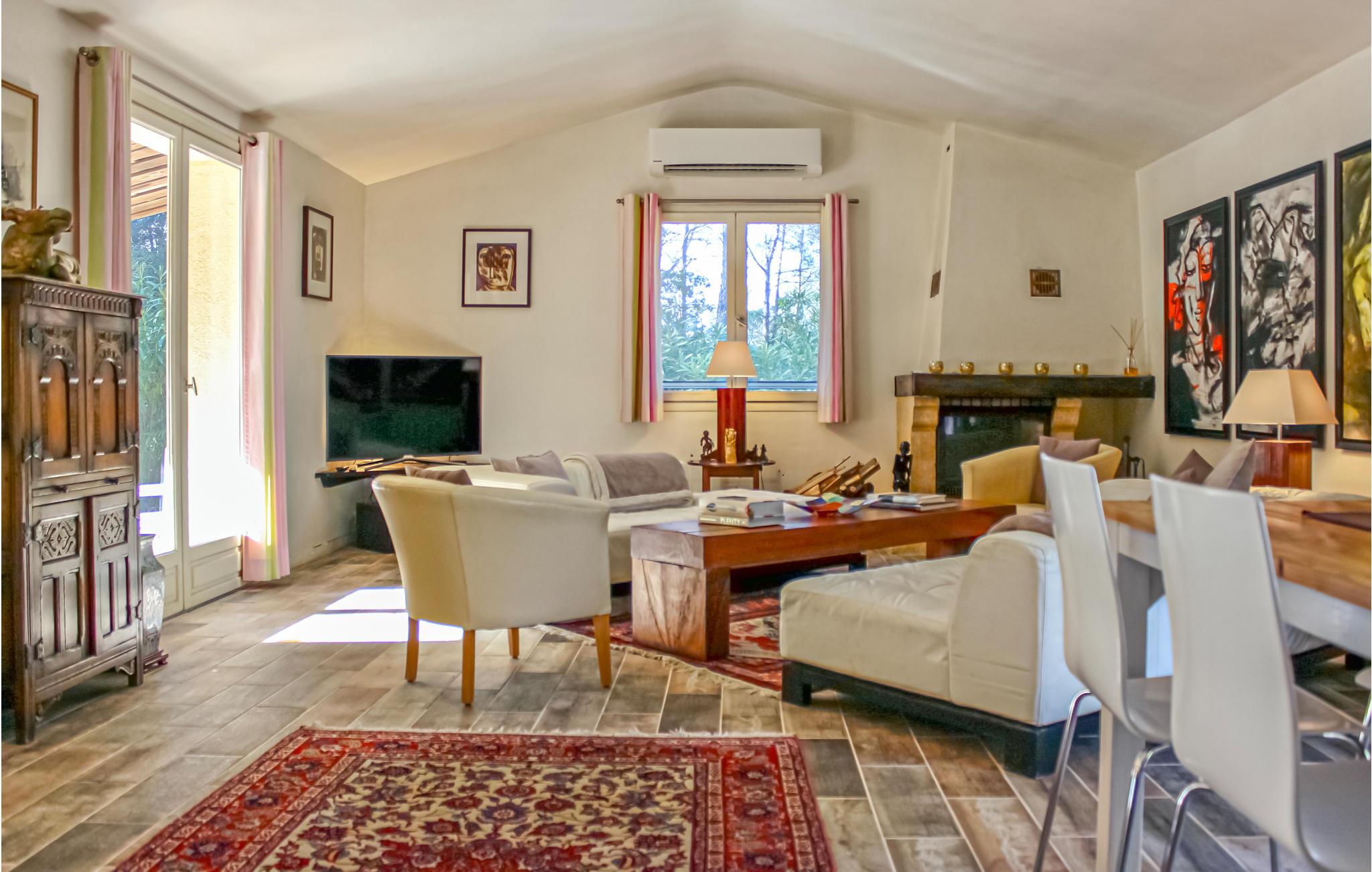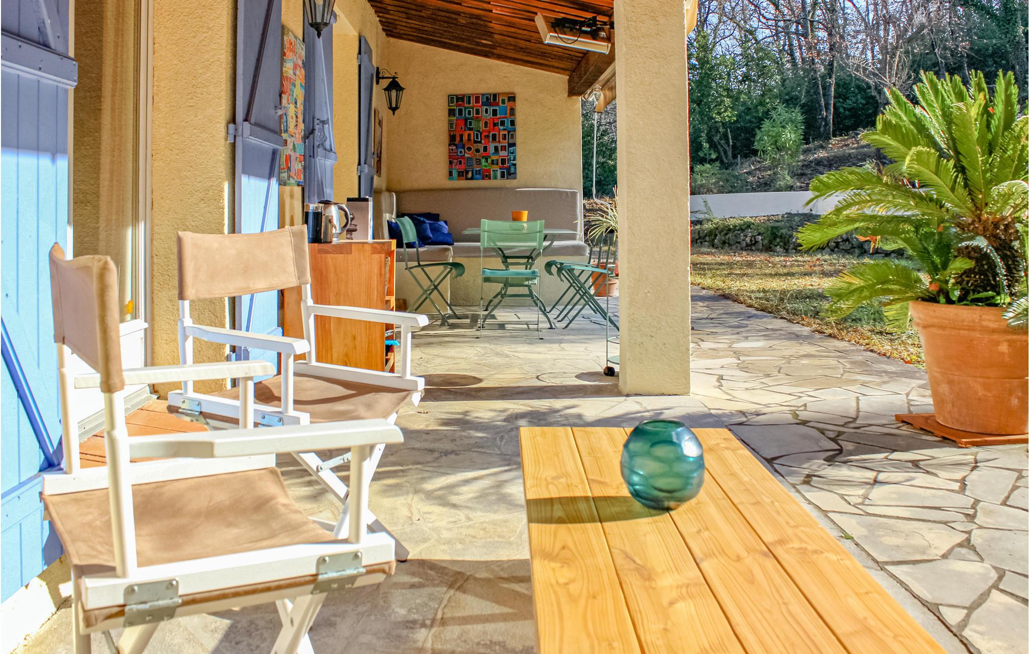 På grund af sin høje beliggenhed giver denne hyggelige villa med tre soveværelser og to badeværelser fuldstændig privatliv samt en storslået udsigt over en dal med de charmerende landsbyer Fayence, Callian og Montauroux op til bjergene i baggrunden. Ejendommen er en 2.500 m² stor have med blomster, træer og en græsplæne, hvor børnene kan lege helt uforstyrret. Ferieboligen har to terrasser, og I kan slappe af ved poolen med en vidunderlig udsigt. Spadsér gennem den smukke landsby Tourrettes. Golfspillere kan svinge køllerne på Terre Blanche-golfbanen.