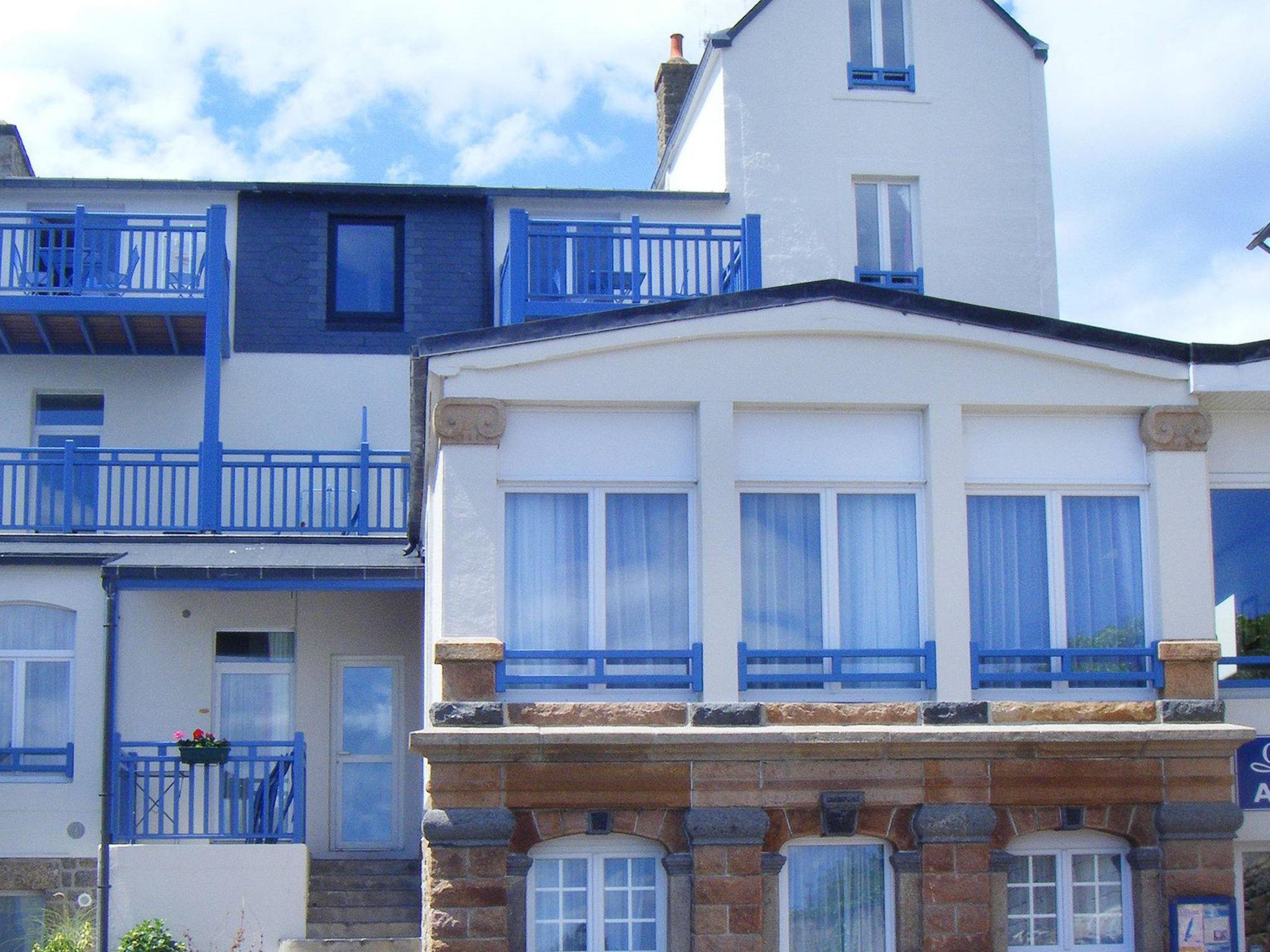 Cosy residence "Les Bains". 100 m from the centre of Trégastel, on top of a hill, 50 m from the sea, 50 m from the beach, road to cross. In the complex: reception, internet access, washing machine, tumble dryer (for shared use, extra). Parking at the house. Shop 100 m, grocery, restaurant 200 m, bus stop 1 km, railway station "Lannion" 10 km, sandy beach "Chemin des Douaniers" 50 m, park "Aquatonic eau de mer" 1 km. Sports harbour 2 km, riding stable 5 km. Nearby attractions: La presqu'île Renote,24h de la Voile, Perros Guirec 5 km, Pleumeur Bodou 5 km, Aquarium de Trégastel, La réserve des 7 îles, Festival du Chant des marins (aout). Hiking paths: La Vallée de Traoueros, Découverte de la côte de granit rose, les vieux Gréments à Paimpol 45 km. Please note: car recommended. Suitable for families, baby equipment on request (extra). Residence with electric gates. The photograph shows a typical example. The photo is just an example. Additional accommodations can be booked.