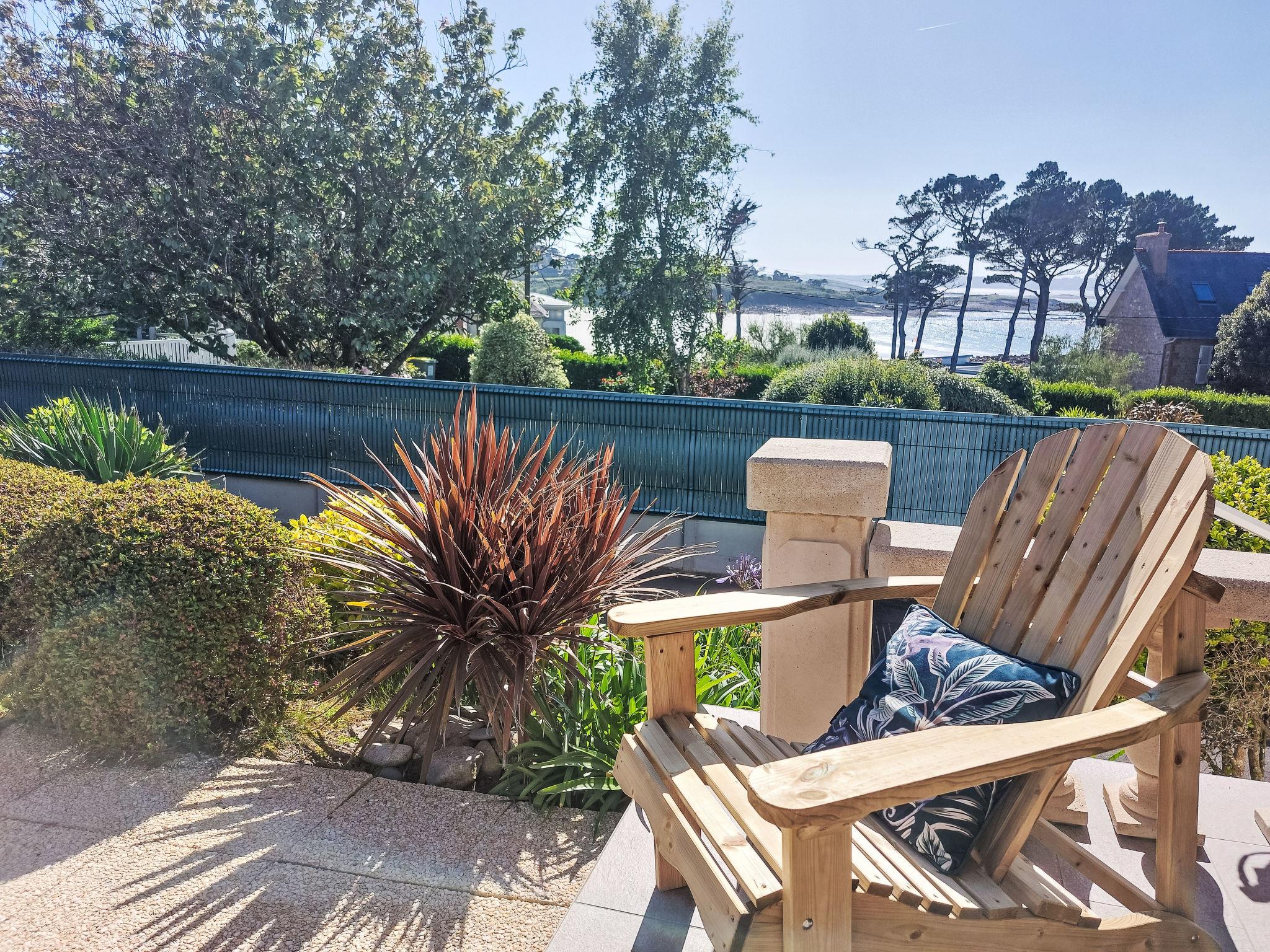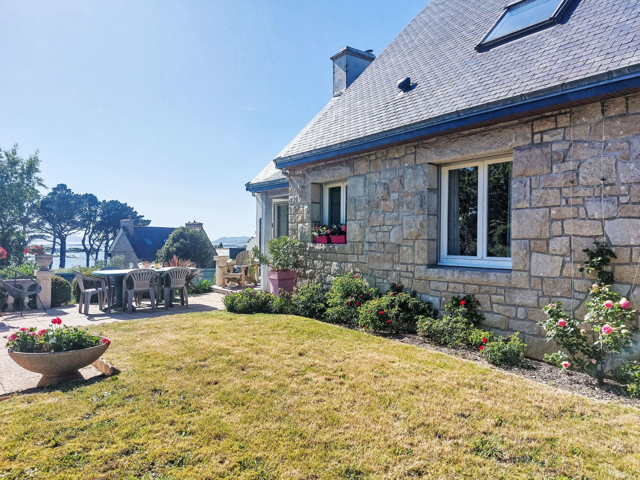 Single-family house "Les Courlis". In the district of Poulpry 300 m from the centre of Trestel, 9 km from the centre of Louannec, 12 km from the centre of Perros-Guirec, 100 m from the sea, 100 m from the beach. Private: property 1'000 m2 (fenced), well-kept garden with lawn, parking on the premises, single garage. Shop 1.5 km, supermarket 4 km, bus stop 2 km, sandy beach "Poulpry" 100 m. Golf course (18 hole) 19 km, surf school, sailing school 200 m. Nearby attractions: La Roche Derrien 14 km, Tregastel 19 km, Trébeurden 23 km, Château de la Roche Jagu 24 km.