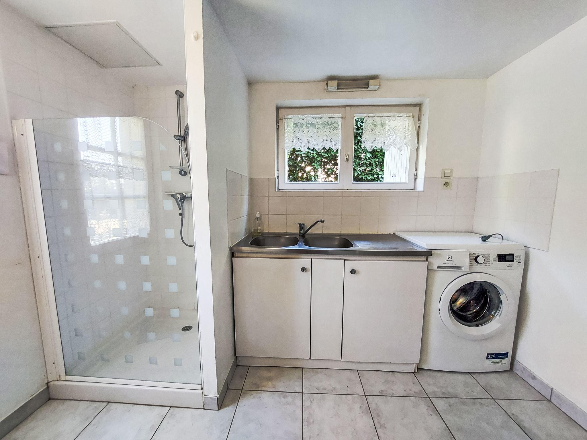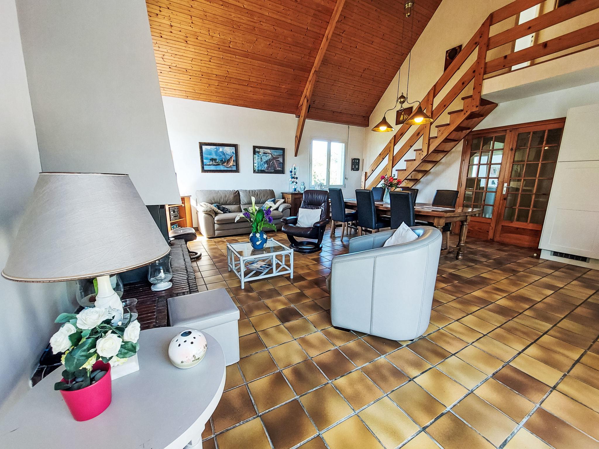 "Les Courlis", 4-room house 110 m2 on 3 levels. Beautiful and cosy furnishings: living/dining room with open-hearth fireplace (only for decoration), dining table, satellite TV and DVD. Exit to the terrace. 1 room with 1 french bed (180 cm, length 200 cm). Open kitchen (oven, dishwasher, 4 ceramic glass hob hotplates, toaster, kettle, microwave, freezer, electric coffee machine). Bathroom, sep. WC, double hand-basin. On the lower ground floor: shower. Upper floor: 2 rooms with sloping ceilings, each room with 2 beds (90 cm, length 190 cm). Electric heating. Terrace. Terrace furniture, barbecue (portable), deck chairs (4). Facilities: washing machine, dryer, iron, children's high chair, baby cot. Internet (WiFi, free). Please note: non-smoking house. Maximum 1 pet/ dog allowed. Smoke alarm.