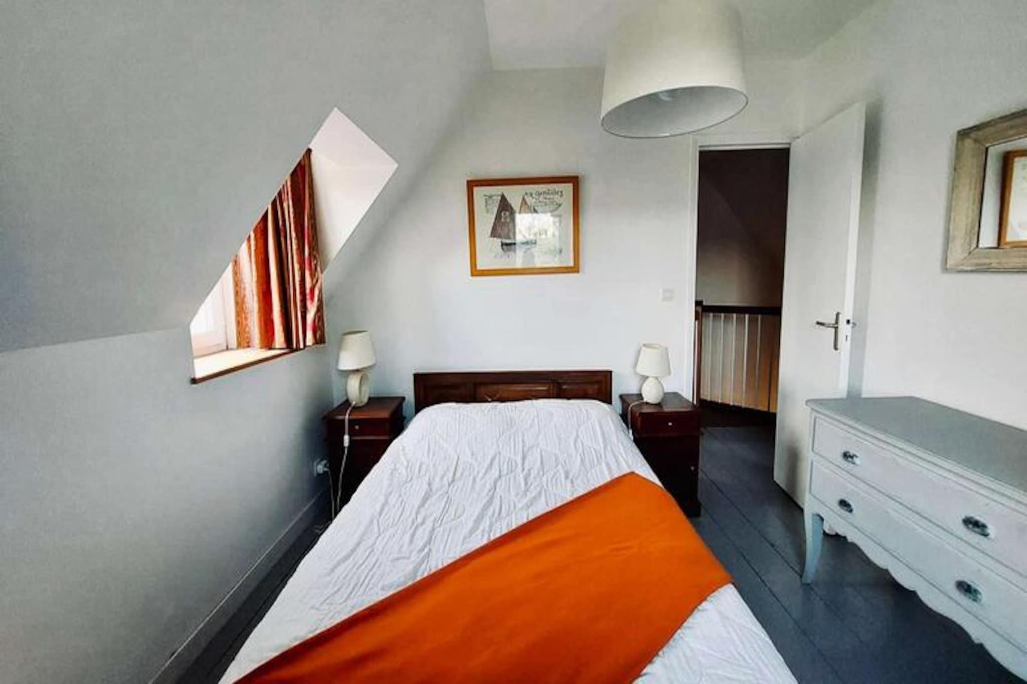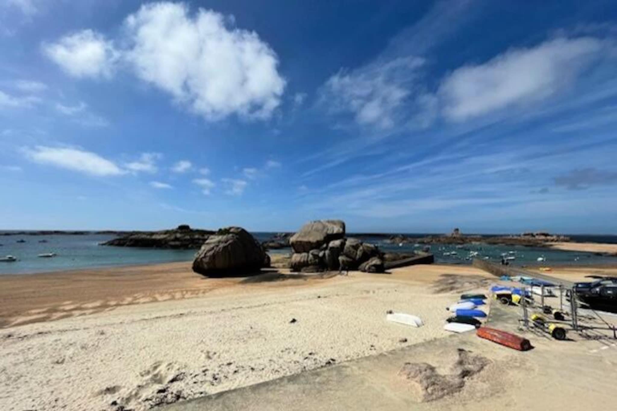 Forestil dig at vågne op til den blide lyd af bølger og duften af ??havluft i den charmerende kystby Trégastel. Dette dejlige feriehus inviterer dig til at opleve skønheden ved den rosa granitkyst, hvor naturens kunstneriske værker er i fuld gang. Fra de unikke lyserøde klippeformationer til de fredfyldte strande er hvert øjeblik her fyldt med magien ved Bretagnes kystlinje. Uanset om du udforsker det nærliggende Ploumanac'h eller nyder en afslappet dag på de lokale markeder, lover denne destination uforglemmelige minder. \n\nHuset er omhyggeligt designet til at sikre et behageligt ophold for op til fem gæster. Med tre hyggelige soveværelser, et veludstyret køkken med moderne apparater og en indbydende stue vil du føle dig hjemme. Stueetagen har et brusebad, mens ovenpå tilbyder et lille badeværelse med toilet. Udenfor venter et privat haveområde med møbler og grill, perfekt til udendørs spisning eller afslapning under stjernerne. Privat parkering tilføjer bekvemmelighed, og valgfrie faciliteter som sengetøj og en 4G Wi-Fi-boks sikrer, at dit ophold er skræddersyet til dine behov. Trégastels beliggenhed på den rosa granitkyst er ideel til at udforske regionens naturlige vidundere. Oplev den fortryllende Île-de-Bréhat, kendt som Blomsterøen, eller tag en naturskøn gåtur langs kysten for at beundre de fantastiske klippeformationer. Lokale markeder og festivaler tilføjer et levende præg til din ferie og tilbyder en smagsprøve på Bretagnes rige kultur og traditioner. Uanset om du søger afslapning eller eventyr, er dette hjem den perfekte base for din kystferie. Omfavn Trégastels charme og skab varige minder i disse idylliske omgivelser.