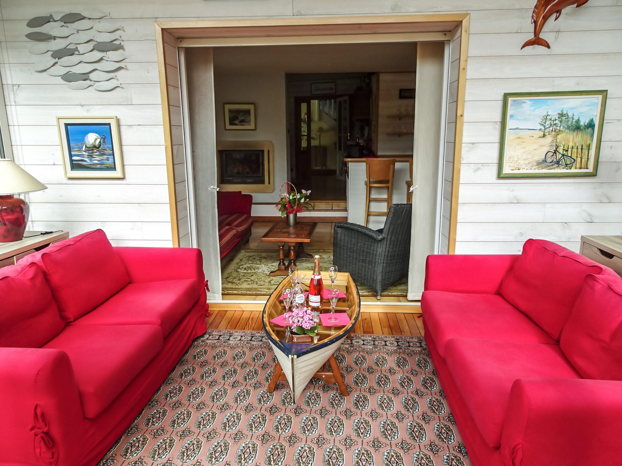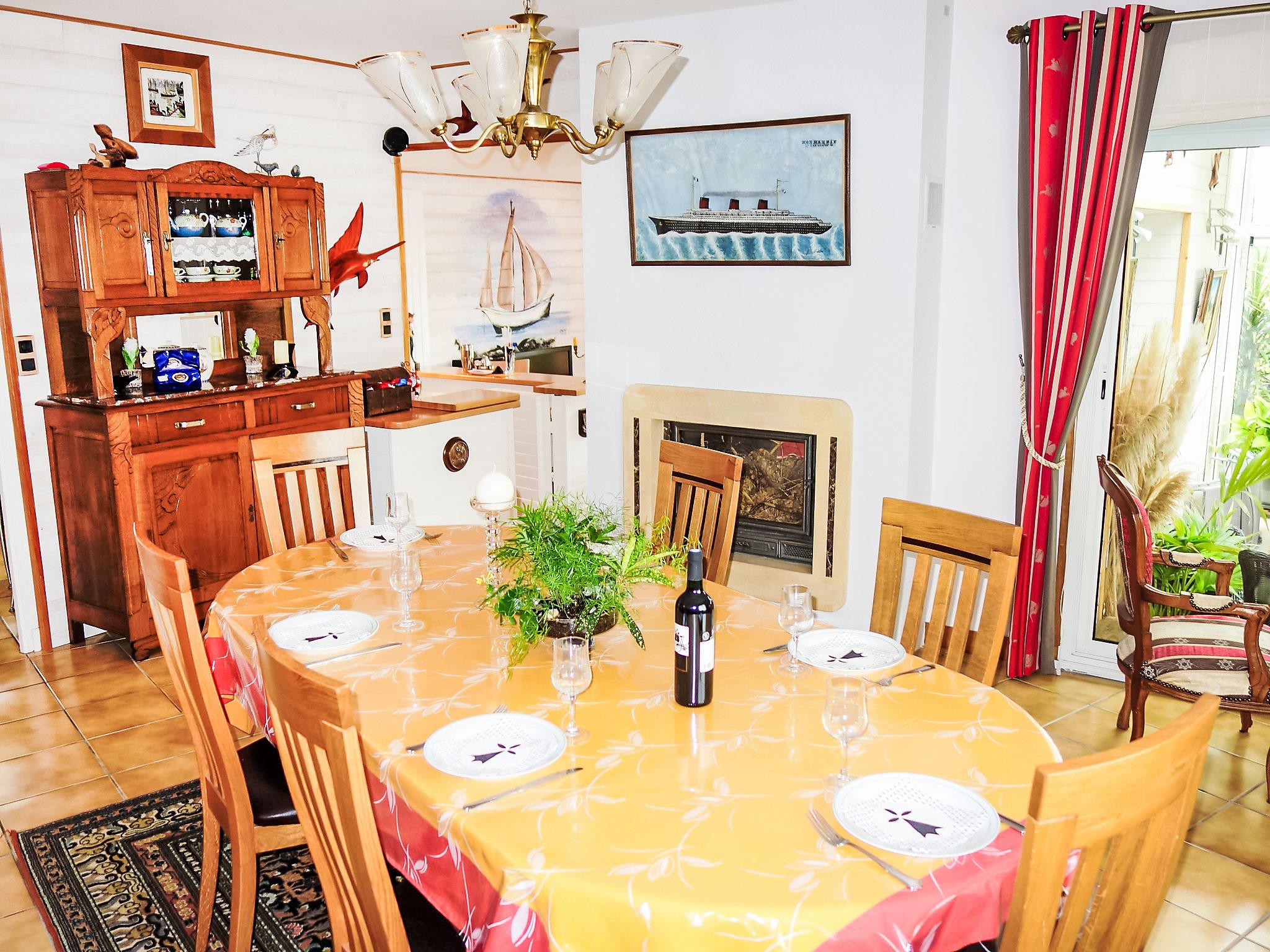 5-room house 180 m2 on 2 levels. Comfortable and modern furnishings: large living/dining room with Scandinavian wood stove, dining table, bar and TV (flat screen), radio, CD-player and DVD. Exit to the veranda. 1 room with 1 french bed (160 cm), shower. Kitchen (4 hot plates, oven, dishwasher, microwave, freezer, electric coffee machine) with dining table. Sep. WC. Upper floor: 1 room with 1 french bed (1 x 140 cm, length 190 cm), hand-basin and shower. 1 room with 1 french bed. 1 room with 2 beds (90 cm). Bathroom, sep. WC. Terrace 25 m2. Terrace furniture. Facilities: washing machine, dryer, iron, baby cot for up to 3 year olds. Internet (WiFi, free). Garage. Please note: the owner does not accept pets. Access to the bedroom with 2 single beds via stairs.