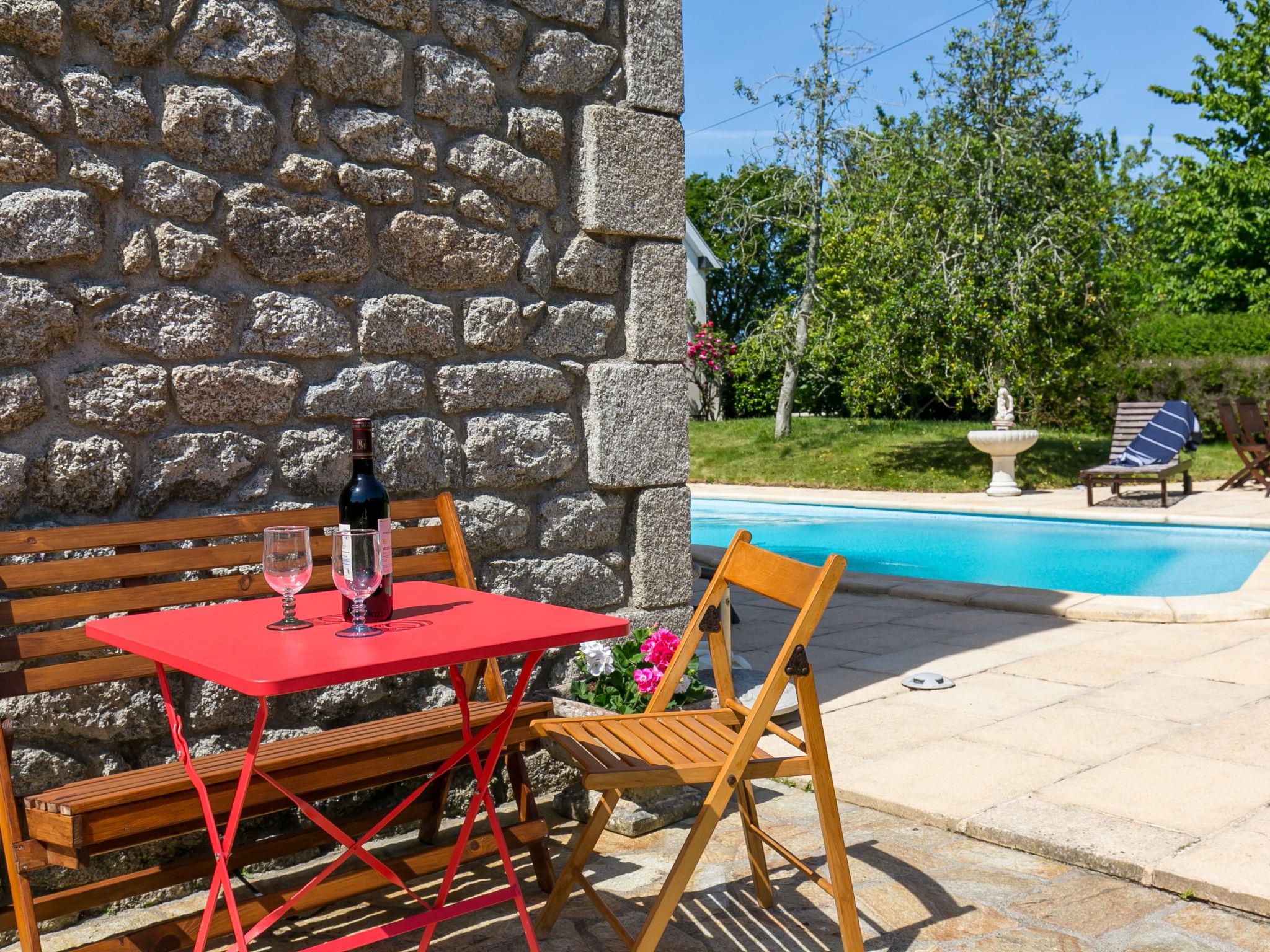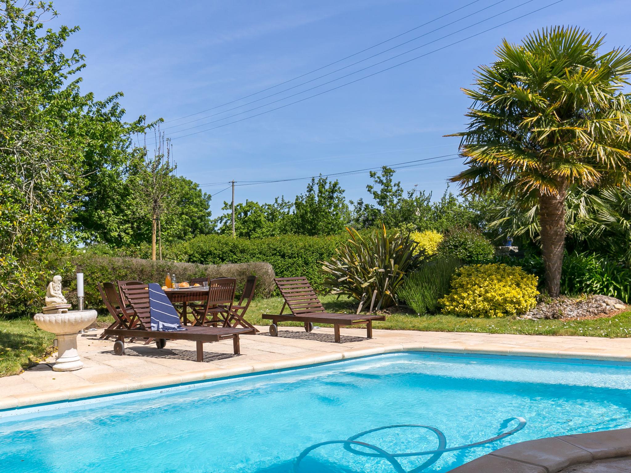 Heated swimmig-pool with a pump. Cosy, comfortable single-family house "Ty Keriquel", 2 storeys, built in 1932. In a hamlet 1 km from the centre of St Philibert, 5 km from the centre of Trégunc, in a quiet, sunny position, 2 km from the sea, 2 km from the beach. Private: beautiful, well-kept garden with lawn and trees, swimming pool heated, secured (10 x 4 m, depth 200 cm, seasonal availability: 23.May. - 30.Sep.). Outdoor shower, parking on the premises. Shop 3 km, grocery 3 km, supermarket 3.5 km, shopping centre 14 km, restaurant 3 km, bakery 3 km, café 3 km, bus stop 5.7 km, sandy beach "Plage de Kersidan" 2 km, thermal baths "Thalasso Concarneau" 15 km. Marina 15 km, golf course (18 hole) 20 km, surf school 8 km, sailing school 2 km, tennis 4 km, riding stable 6 km. Nearby attractions: Pointe de Trévignon 4 km, Pont Aven, Ville des Peintres 10 km, Concarneau et Ville Close 13 km, Port Manec'h,estuaire de l'Aven et Belon 8 km, Quimper 40 km. Hiking paths: GR 34, chemin des douaniers 2 km, belles balades entre terre et mer. Please note: car recommended.