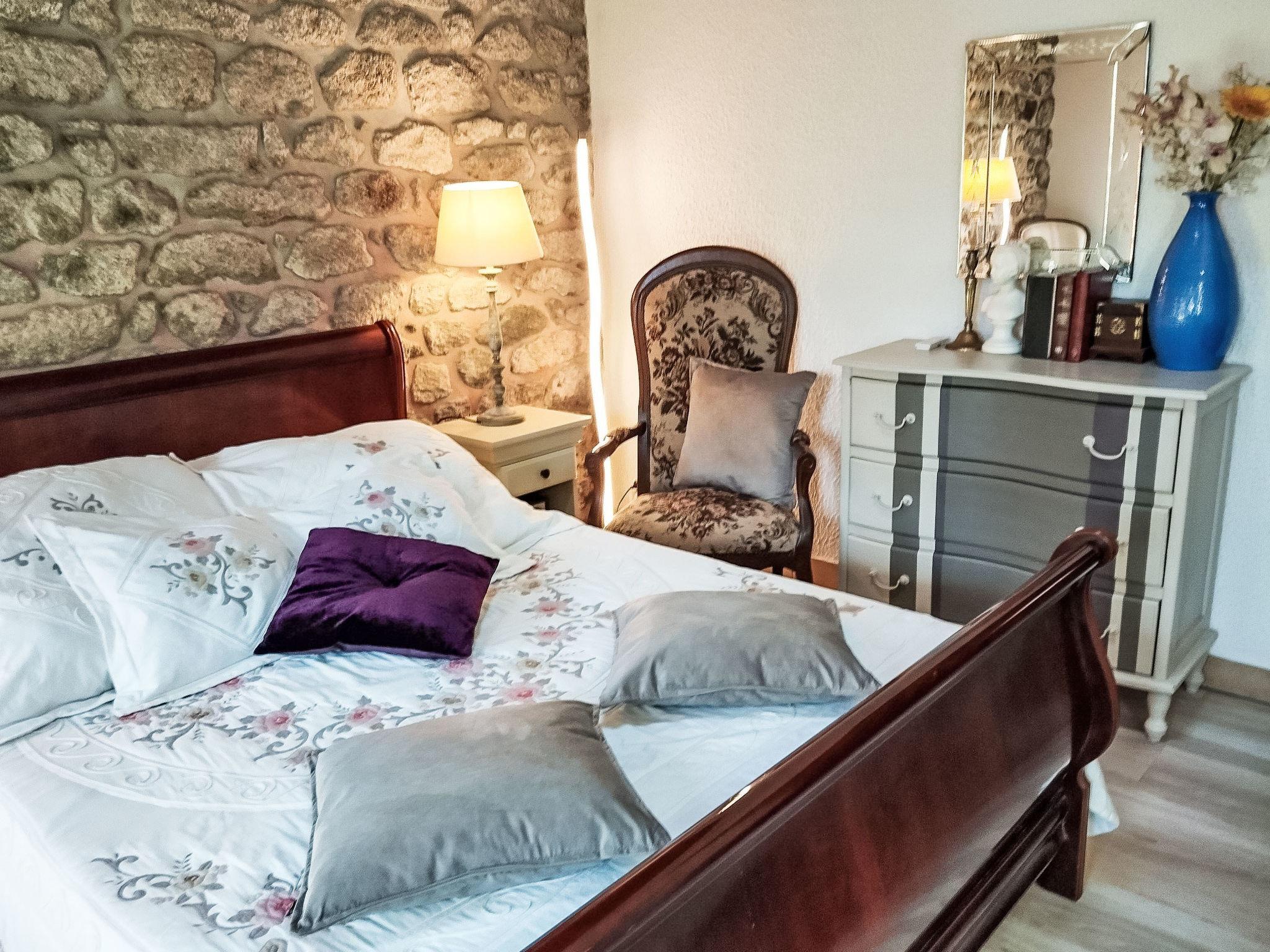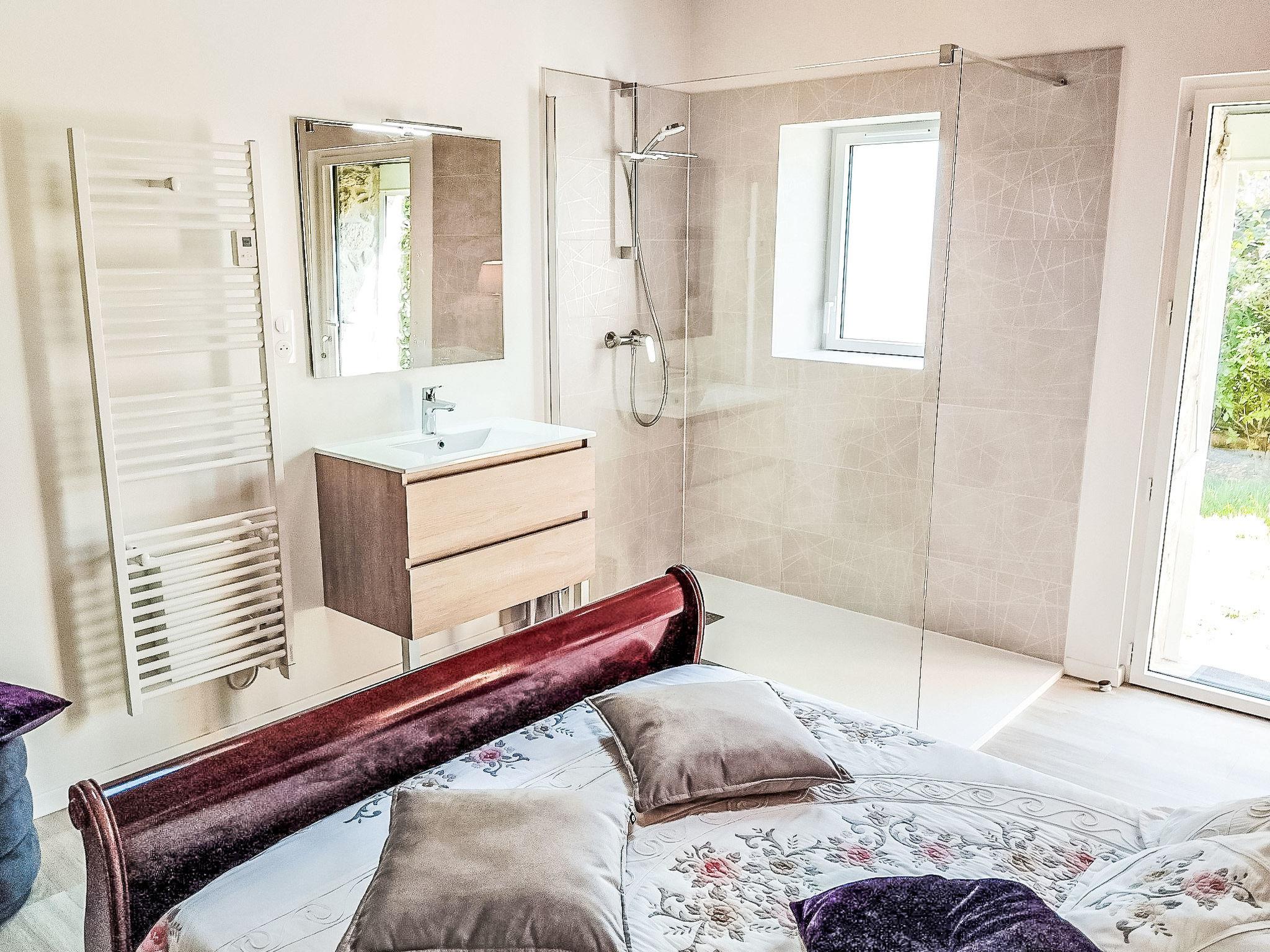 "Ty Keriquel", 5-room house 150 m2. Comfortable and cosy furnishings: living/dining room with open-hearth fireplace (only for decoration), dining table and TV (flat screen), hi-fi system and DVD. 1 room with 1 french bed (1 x 140 cm, length 190 cm), hand-basin, separate WC, bath/shower and double hand-basin. Exit to the garden. Open kitchen (4 hot plates, oven, dishwasher, microwave, freezer, electric coffee machine, Capsules for coffee machine (Senseo) extra). Upper floor: 1 room with 1 french bed (140 cm, length 190 cm). 1 room with 1 french bed (1 x 140 cm, length 190 cm). 1 room with sloping ceilings with 2 beds (90 cm, length 190 cm). Bathroom, sep. WC. Electric heating. Terrace. Terrace furniture, barbecue. Beautiful view of the countryside. Facilities: washing machine, dryer, iron, children's high chair, baby cot, hair dryer. Internet (WiFi, free). Please note: smoke alarm.
