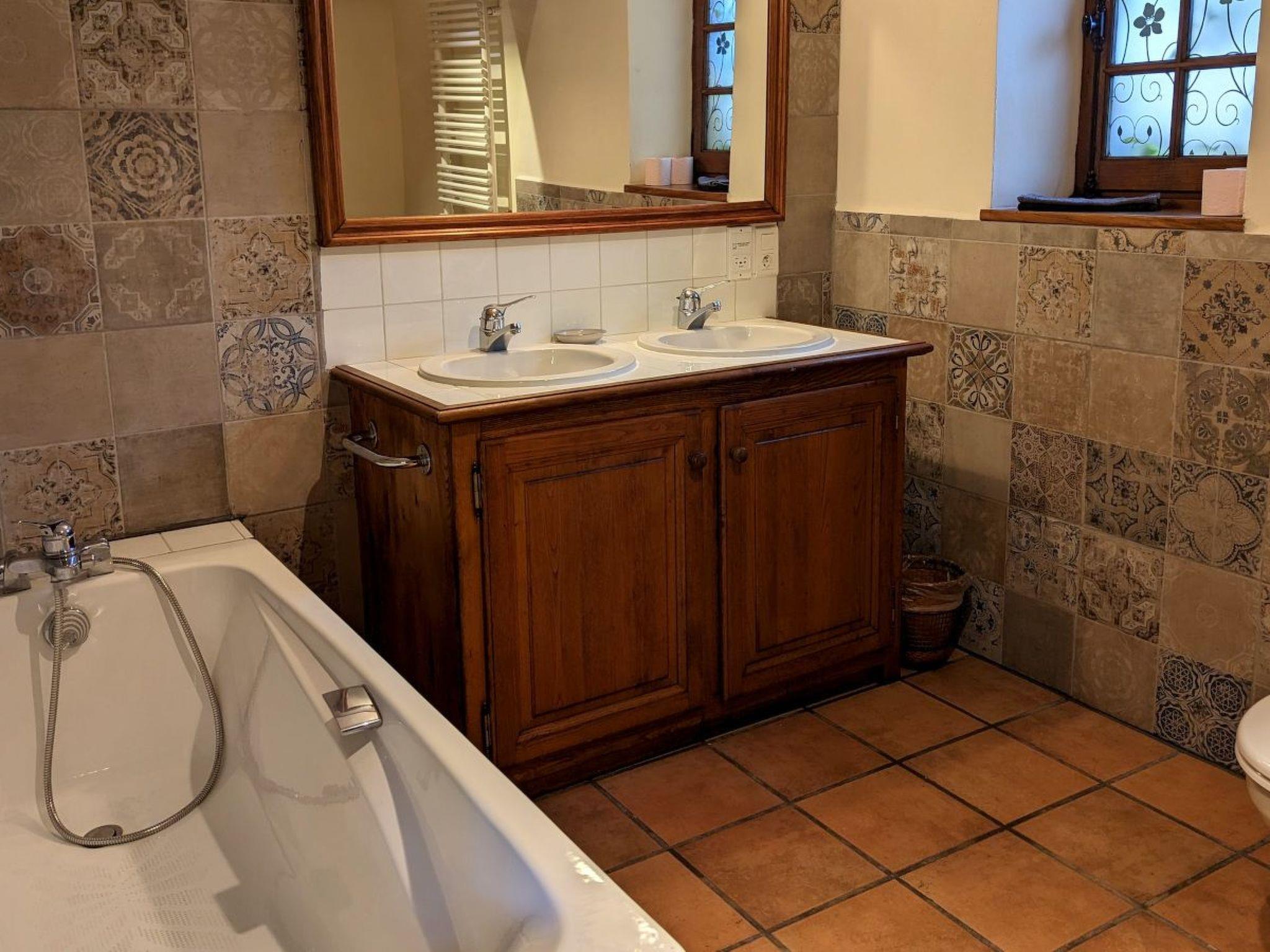 Bedroom 1: Double bed (160-200 cm), view of the private pond, adjoining bathroom with bathtub, double sink and WC. Bedroom 2: Twin beds (2x 90-190 cm), view of the private pond. Bed linen and towels provided (1 set per person), beds made on arrival. Baby bed (umbrella) and high chair available