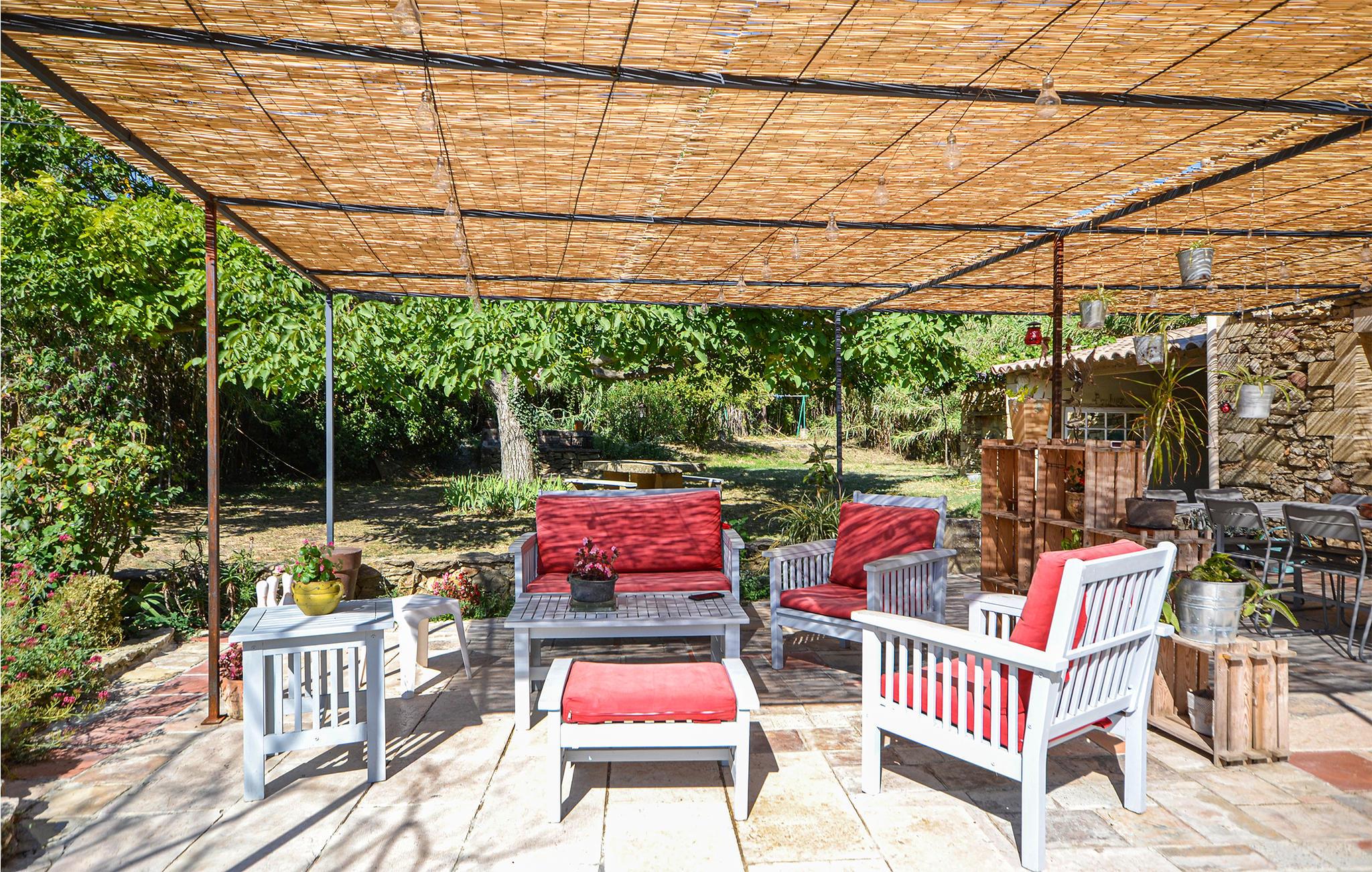 Dette skønne landhus af sten, ligger på en stor grund i skønne omgivelser i Provence. Den store grund er meget ugenert og i haven ligger poolen, som er med til at sikre en vellykket ferie. I huset er der hyggeligt indrettede rum, hvis charme får jer til at føle jer helt hjemme. I bor I udkanten af landsbyen Saint-Quentin-la-Poterie og kun godt fire km fra den unikke middelalderby Uzès. Navnet på turistbyen giver jer en ide om hvad det handler om: I Saint-Quentin-la-Poterie er der mange pottemagere, som I kan se arbejde og hvis potter I kan få lov at købe. Lige så interessant for store og små er den store bambushave i Anduze, ligesom Nîmes og Avignon er værd at besøge. Vi kan også anbefale en tur i kano på Gardon. Et af soveværelserne har eget bad en suite.