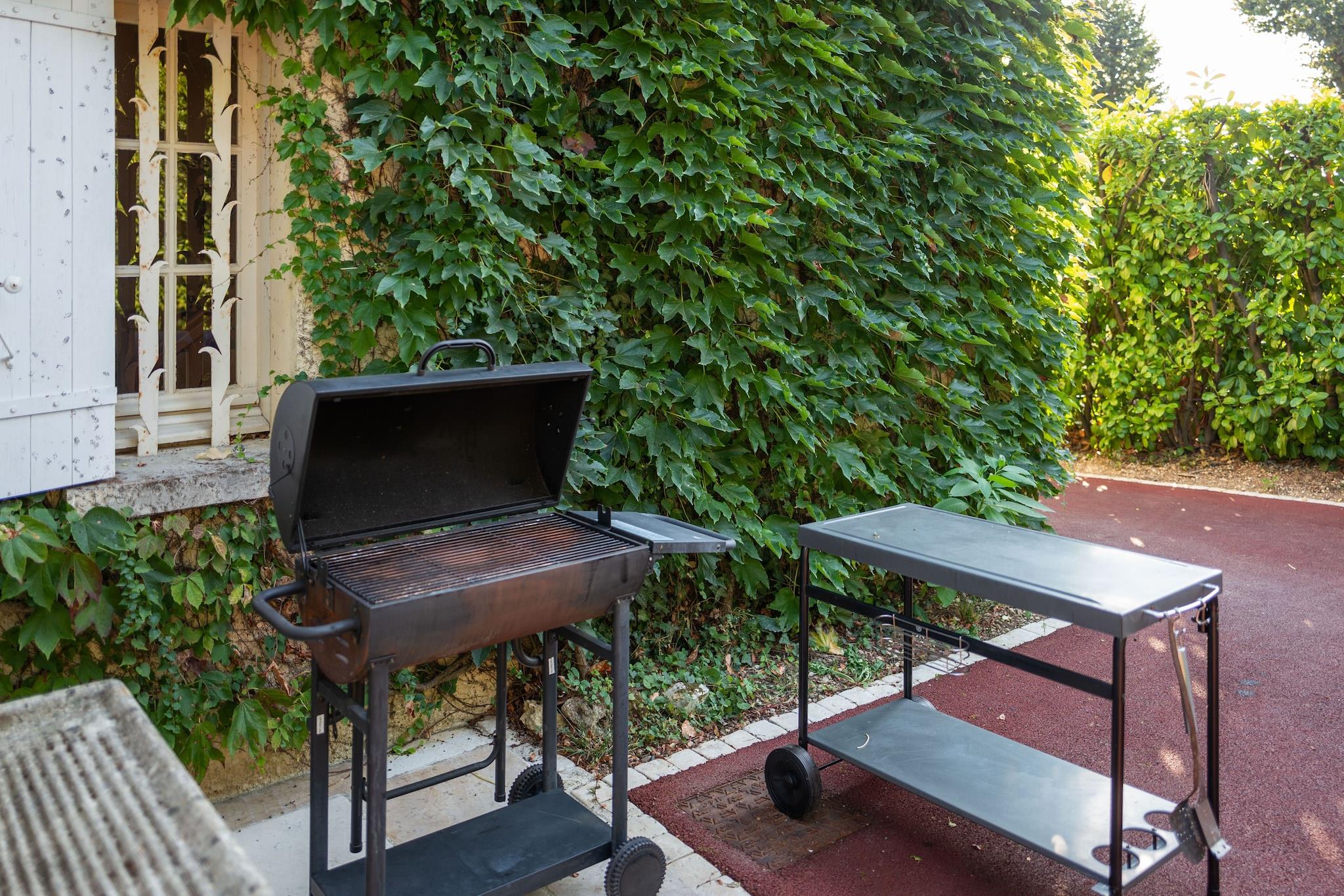 Denne elegante 4-værelses villa i Vélines kan rumme op til 8 gæster og er perfekt til en afslappende sommerferie. Beliggende i hjertet af Dordognes vinland, har det en smukt anlagt privat have, en terrasse med grill og børnevenlige faciliteter, herunder en høj stol, børneseng, boulebane og legeredskaber. Boligen ligger kun 100 meter fra byens centrum, med butikker og det nødvendige inden for 1 km. Vinelskere vil nyde nem adgang til de berømte byer Saint Emilion og Bergerac, som ligger 25 km og 35 km væk. For udendørsentusiaster tilbyder Antoine de Breuilh (6 km) vandsport og ridning. Golfspillere kan tage til Vigiers Golfbane (20 km), mens naturelskere kan udforske Beaupouyet-skoven (25 km). Svømmemulighederne omfatter en søstrand ved Villefranche de Lonchat (12 km) og en indendørs pool i Bergerac (31 km). Villaens beliggenhed kombinerer ro med bekvemmelighed. Nyd lokal spisning, udforsk nærliggende vinmarker, eller slap af i haven med et glas vin. Med Bergerac Lufthavn kun 30 km væk og lægeservice i Sainte-Foy-La-Grande (10 km), er alt hvad du behøver inden for rækkevidde for en uforglemmelig ferie.