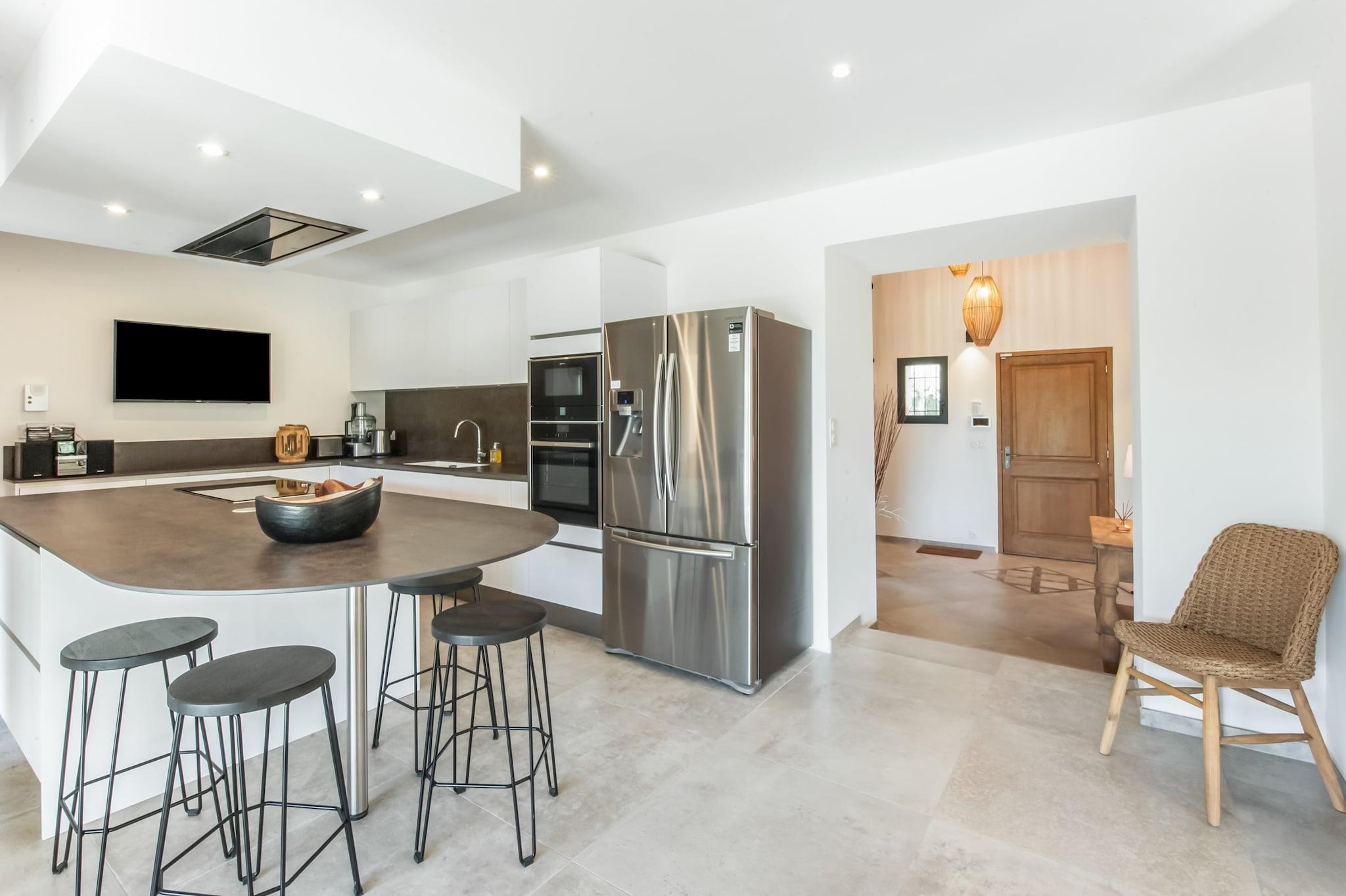 Dette smukt renoverede feriehus ligger kun få minutter fra den charmerende landsby Vaison-la-Romaine. Det er designet til op til 8 gæster og tilbyder 4 komfortable soveværelser, inklusive en mastersuite i stueetagen med eget badeværelse. Den rummelige stue, spiseplads og moderne køkken åbner alle direkte ud til haven og terrassen. Ovenpå finder du yderligere 3 soveværelser og 2 badeværelser, som tilbyder masser af plads til familier eller grupper. Udenfor kan du nyde en opvarmet infinity-pool (åben fra midten af ??april til midten af ??oktober), poolhus og stor terrasse - perfekt til at slappe af i den provencalske sol. Hjemmet blander traditionel charme med moderne komfort og tilbyder et fredeligt og stilfuldt tilflugtssted. Lokale restauranter og supermarkeder er tæt på for din bekvemmelighed. Uanset om du slapper af ved poolen, udforsker de nærliggende romerske ruiner eller nyder et glas vin under stjernerne, er denne villa ideel til en afslappende ferie i det sydlige Frankrig.