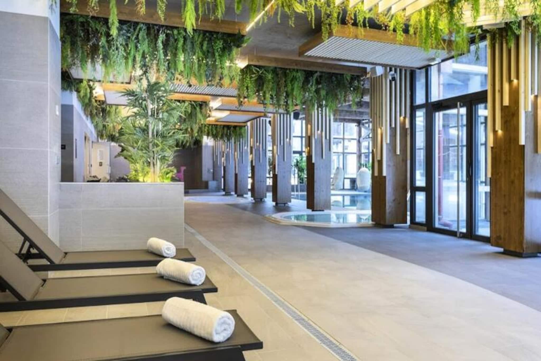 I hjertet af de majestætiske Alper, hvor snedækkede tinder møder endeløse blå himmel, tilbyder Résidence Les Balcons de Val Cenis Village**** de perfekte rammer for din bjergferie. Denne førsteklasses residens ligger kun 100 meter fra pisterne og gondolbanen, hvilket sikrer ubesværet adgang til de uberørte pister i Val Cenis. Uanset om du er her for at grave dig gennem frisk puddersne eller blot nyde den rolige alpine atmosfære, er dette en destination, der lover uforglemmelige øjeblikke. \n\nTræd indenfor i din varme og indbydende hytte, hvor traditionel charme møder moderne luksus. Disse rummelige hytter har plads til op til 17 gæster og har naturlige fyrretræspaneler, massive trædøre og møbler i bjergstil, der udstråler autenticitet. Det fuldt udstyrede køkken, den hyggelige opholdsstue med sovesofa og de omhyggeligt designede soveværelser sikrer, at al komfort er opfyldt. Efter en dag med eventyr kan du slappe af i spabadet eller i det separate brusebad, velvidende at hver eneste detalje er tænkt over for dit velbefindende. \n\nUd over din hytte kan du forkæle dig selv med de eksklusive faciliteter i den nærliggende Les Balcons Platinium Val Cenis-residens. Foryng dig i den opvarmede pool, sauna, dampbad eller japanske bad, alt sammen designet til at forbedre dit alpine ophold. Residensens førsteklasses beliggenhed placerer dig også tæt på lokale butikker, hvilket gør det nemt at udforske landsbyen og nyde regionale lækkerier. \n\nUanset om du rejser med familie eller venner, er Résidence Les Balcons de Val Cenis Village**** din indgang til den ultimative bjergferie. Med betagende udsigter, luksuriøs indkvartering og uovertruffen adgang til pisterne er det her, hvor dyrebare minder skabes.