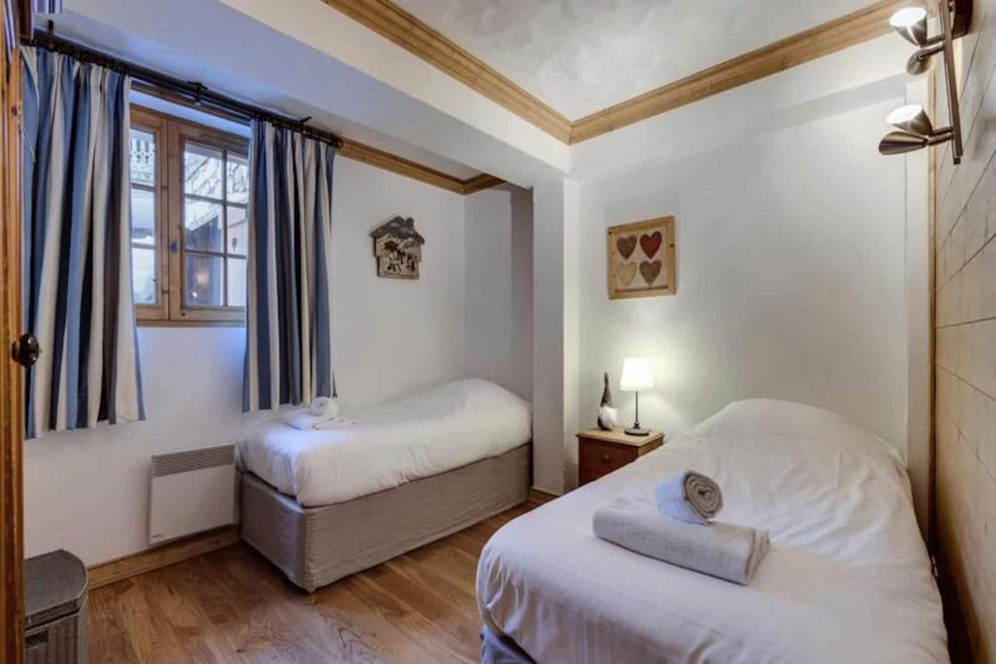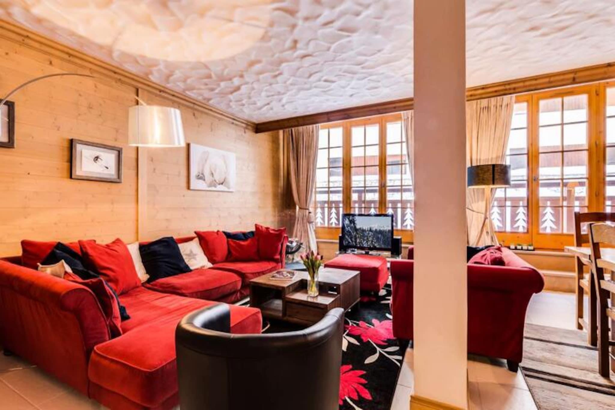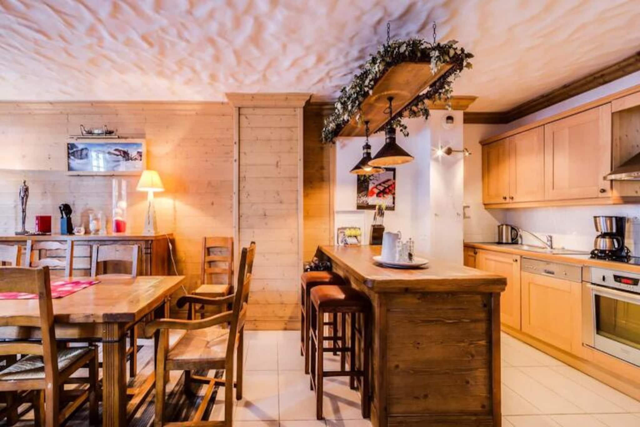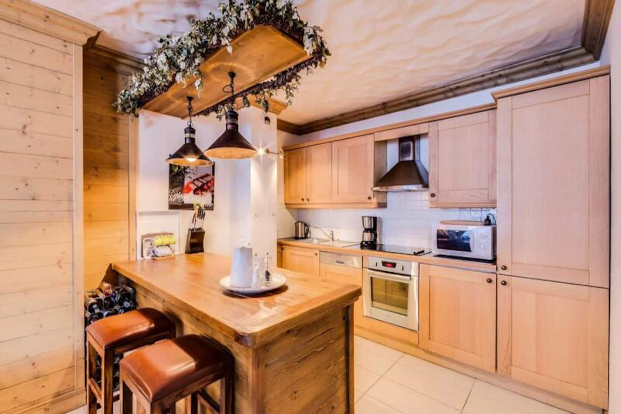 Midt i de betagende tinder i Val d'Isère tilbyder L'Aiglon et exceptionelt alpint tilflugtssted, der problemfrit blander Savoyard-charme med moderne luksus. Dette smukt udformede chalet i sten og træ, beliggende på den prestigefyldte Route de la Balme, giver uovertruffen adgang til det berømte skiområde Espace Killy. Med Olympique-svævebanen kun 100 meter væk begynder dine skiløbseventyr næsten lige uden for døren, hvilket gør den til et ideelt valg for vintersportsentusiaster. \n\nIndenfor udstråler lejligheden varme og elegance med en rummelig planløsning designet til at rumme op til seks gæster. De tre soveværelser, hver med eget badeværelse, sikrer privatliv og komfort for familier eller grupper. Det åbne køkken flyder ubesværet over i den indbydende stue, hvor naturligt lys oversvømmer rummet og skaber en hyggelig atmosfære. Moderne bekvemmeligheder såsom en 94\