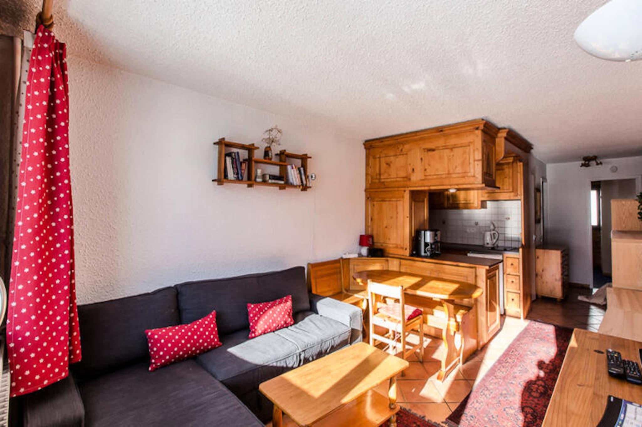 I hjertet af det maleriske La Daille-område tilbyder denne charmerende ski-in/ski-out-lejlighed en idyllisk alpin ferie for op til fire gæster. Forestil dig at træde ud af din bolig og direkte ud på de uberørte skråninger i Val d'Isère med de majestætiske tinder i de franske alper som baggrund. Den sydvendte balkon inviterer dig til at nyde vintersolen, mens du beundrer den betagende udsigt over bjergene, hvilket skaber de perfekte rammer for din morgenkaffe eller afterski-afslapning. Denne 50 m² store lejlighed er omhyggeligt designet til komfort og bekvemmelighed. Den hyggelige stue har et spise- og opholdsområde med tv, mens det fuldt udstyrede køkken har keramisk kogeplade, ovn og opvaskemaskine, hvilket gør det nemt at tilberede solide måltider efter en dag på pisterne. Sovepladserne er ideelle til familier eller små grupper, med et soveværelse med en dobbeltseng og en lukket kahyt med køjesenge. Et badeværelse og separat toilet bidrager til rummets praktiske anvendelighed og sikrer et behageligt ophold for alle. Ejendommen, der ligger i Le Bellecote-residensen, kan prale af en elevator, et skiboks og direkte adgang til pisterne. Kun få skridt væk finder du et indkøbscenter med restauranter, skiudlejning og en skiskole, mens den gratis shuttlebus til Le Fornet og feriestedets centrum stopper bekvemt foran boligen. Uanset om du er her for at stå på ski, udforske eller bare slappe af, er alt hvad du behøver inden for rækkevidde. Med sin uovertrufne beliggenhed, moderne faciliteter og løftet om uforglemmelige alpine eventyr er denne lejlighed den perfekte base for din Val d'Isère-ferie. Book nu, og lad magien i de franske alper skabe minder for livet.