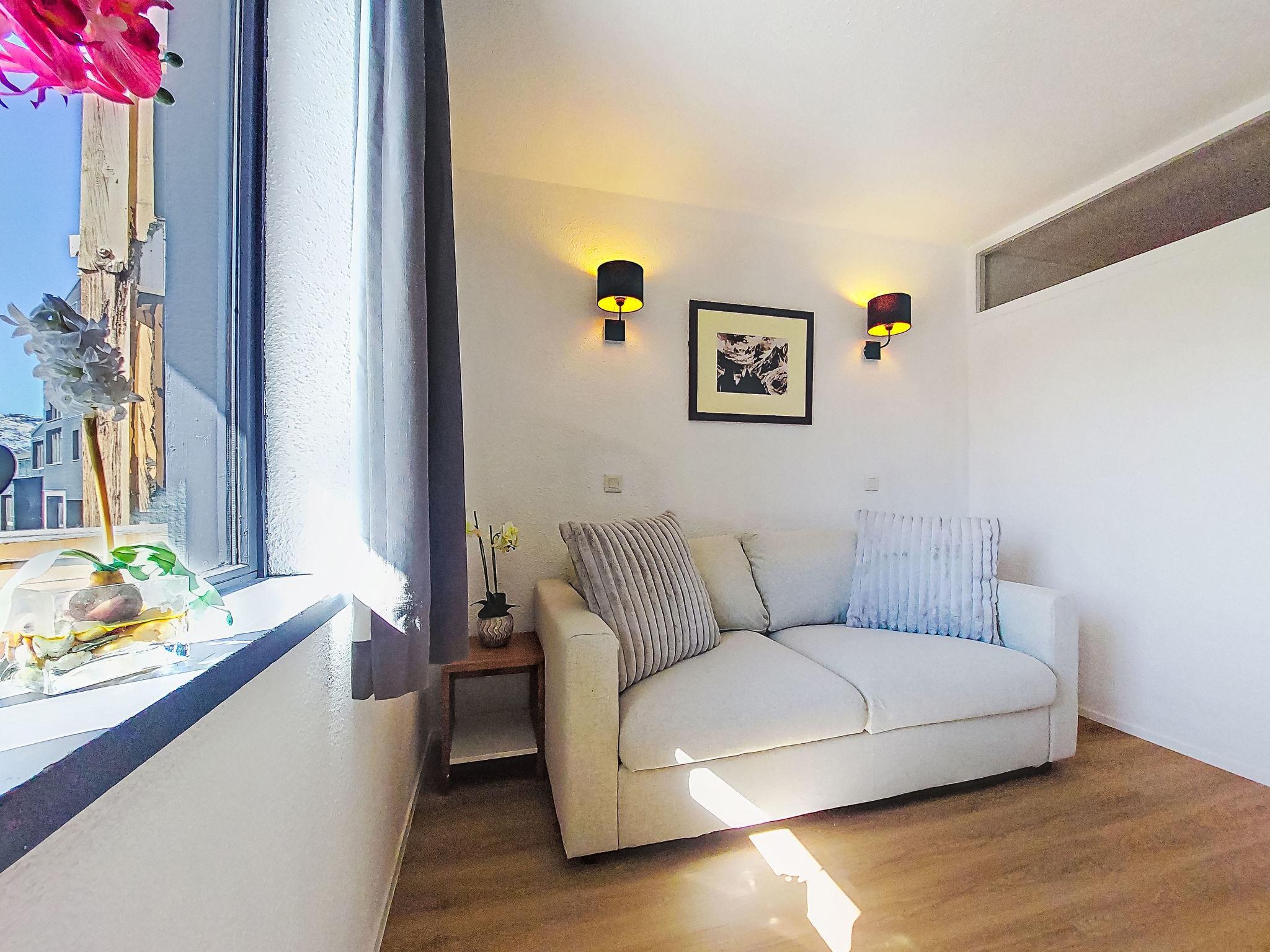 1-room studio on 6th floor, south facing position. Fully renovated in 2025, practical and comfortable furnishings: living/dining room with 1 double sofabed (1 x 140 cm, length 190 cm), dining nook, TV and electric heating. Sleeping alcove with 1 x 2 bunk beds (80 cm, length 190 cm). Entrance hall with kitchen corner. Kitchenette (dishwasher, 2 induction hot plates, toaster, kettle, electric coffee machine, Capsules for coffee machine (Nespresso) extra, combination microwave). Shower, sep. WC. Electric heating. Parquet floors. Small balcony 3 m2. Very beautiful panoramic view of the mountains, the valley and the resort. Facilities: safe. Internet (WiFi, extra). Please note: non-smokers only. Smoke alarm. Offer by a private individual according to Art. 155, IV of CGI. 73257010807DP