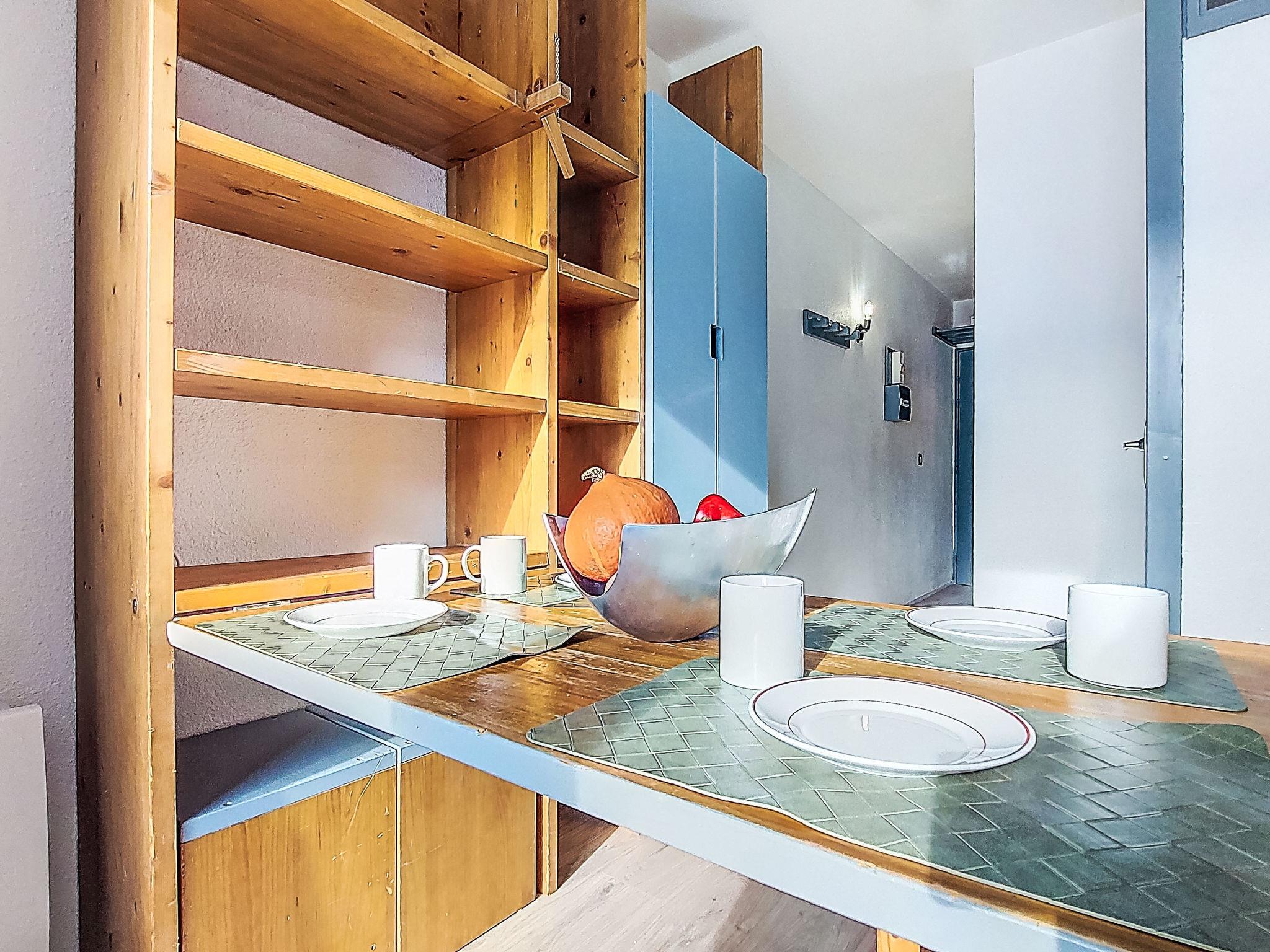 1-room studio 21 m2 on 6th floor. Partly renovated in 2025, beautiful and tasteful furnishings: living/dining room with 1 double sofabed (1 x 140 cm, length 190 cm), dining table and TV (flat screen). Exit to the balcony, south facing position. Entrance hall with dining nook. Sleeping alcove with 1 x 2 bunk beds (80 cm, length 190 cm). Kitchenette (dishwasher, 2 induction hot plates, toaster, kettle, microwave, grill, electric coffee machine). Bath/WC. Parquet floors. Small balcony 3 m2, south facing position. Very beautiful panoramic view of the mountains, the valley, the ski run and the resort. Facilities: Internet (WiFi, extra). Please note: non-smokers only. Offer by a private individual according to Art. 155, IV of CGI.