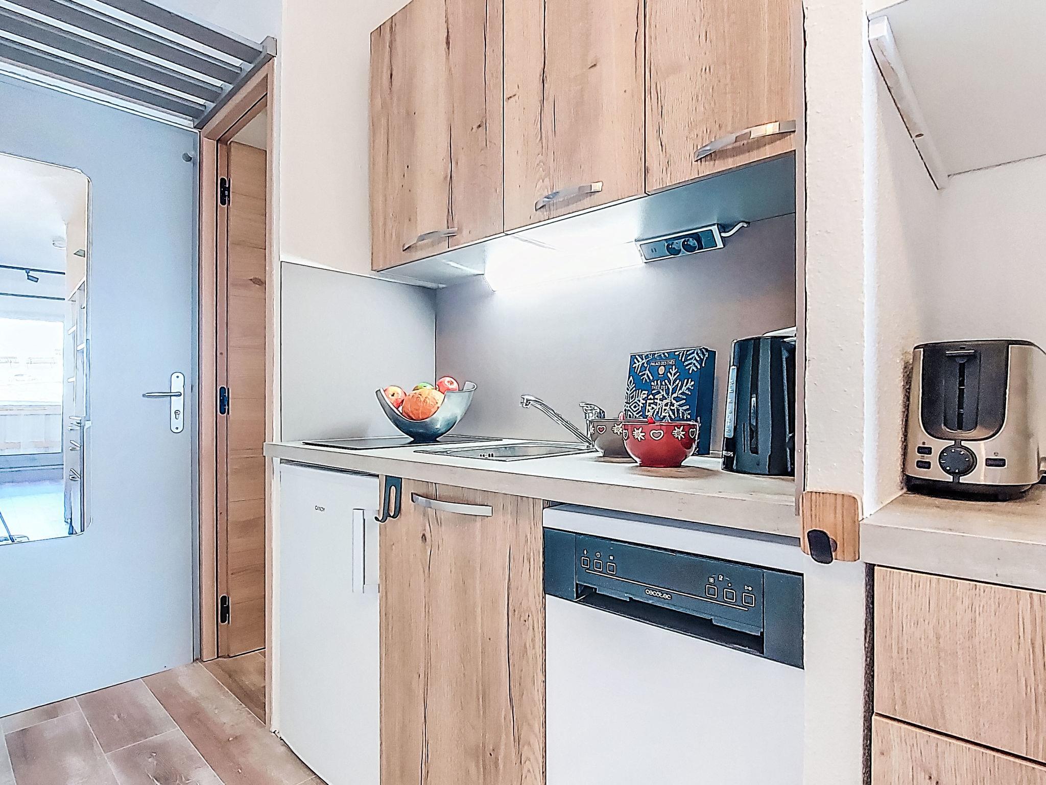 1-room studio 21 m2 on 6th floor, north facing position. Fully renovated in 2025, modern and cosy furnishings: living/dining room with 1 double sofabed (1 x 140 cm, length 190 cm), dining table and TV (flat screen), electric heating. Exit to the balcony, north facing position. Entrance hall with kitchen corner. Sleeping alcove with 1 x 2 bunk beds (80 cm, length 190 cm). Kitchenette (oven, dishwasher, 2 induction hot plates, toaster, kettle, electric coffee machine, Capsules for coffee machine (Nespresso) extra). Bath/WC. Parquet floors. Small balcony 3 m2. Beautiful view of the valley, the ski run and the resort. Facilities: safe. Internet (WiFi, free). Please note: non-smokers only. Smoke alarm. Offer by a private individual according to Art. 155, IV of CGI.