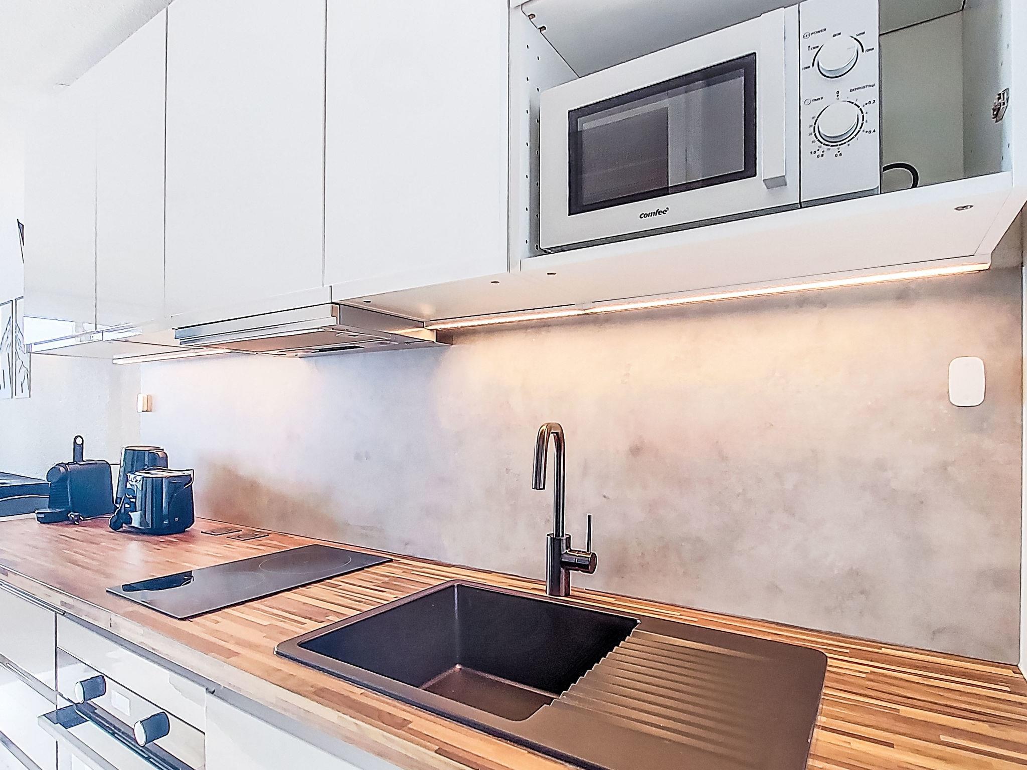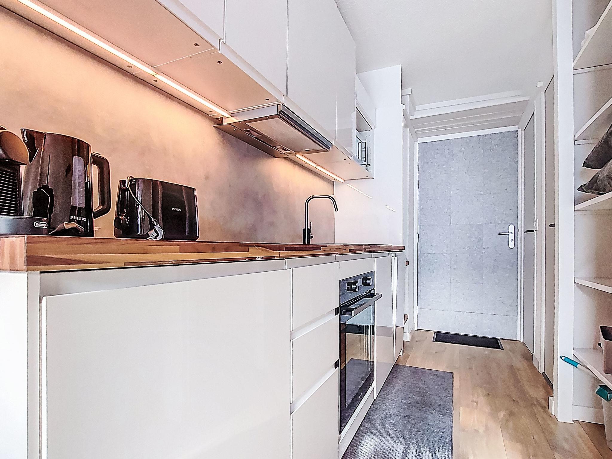 1-room studio 22 m2 on 4th floor, south facing position. Fully renovated in 2025, very modern and luxurious furnishings: living/dining room with 1 double sofabed (1 x 140 cm, length 190 cm), TV and heating stove. Exit to the balcony, south facing position. Sleeping alcove with 1 x 2 bunk beds (80 cm, length 190 cm). Kitchenette (oven, dishwasher, 2 induction hot plates, toaster, kettle, microwave, electric coffee machine, Capsules for coffee machine (Nespresso) extra). Bathroom, sep. WC. Electric heating. Parquet floors. Small balcony 3 m2, south facing position. Very beautiful panoramic view of the mountains, the ski run and the resort. Facilities: children's high chair, baby cot (extra). Internet (WiFi, extra). Please note: non-smokers only. Smoke alarm. Offer by a private individual according to Art. 155, IV of CGI. 73257011386SB