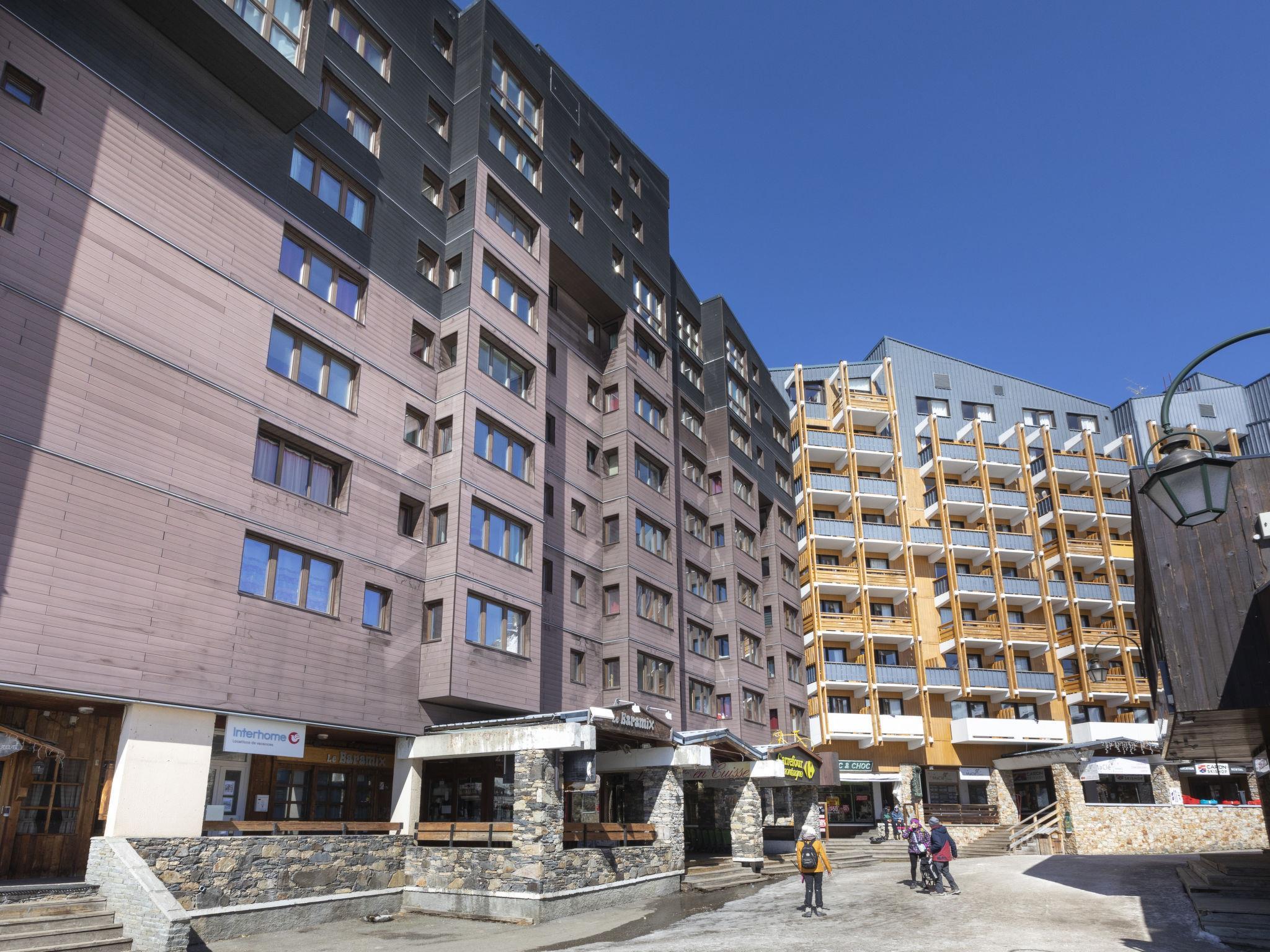 Very beautiful residence "Arcelle", 7 storeys. In the centre of la station, in a busy position, 100 m from the skiing area, in a pedestrian area. In the complex: lift, storage room for skis. In Winter: please take snow chains. Public car park at 50 m, extra. E-charging station. Shop 1 m, grocery, supermarket, shopping centre, restaurant, bar 2 m, bakery 15 m, café 5 m, pedestrian zone 2 m, bus stop 50 m, outdoor swimming pool 20 m. Sports centre 5 m, chair lift 50 m, gondola lift 150 m, skisport facilities 70 m, slopes 100 m, ski rental 2 m, ski bus stop 15 m, ski school 40 m, cross country ski track 1 km, ice rink 150 m. Nearby attractions: Les Menuires 1 km. Well-known ski regions can easily be reached: 3 Vallées. Well-known lakes can easily be reached: Lac du lou 1 km, Lac Menuires 800 m. Please note: baby equipment on request (extra). Groups of teenagers on request only. The owner does not accept any groups. In case of good snow conditions, the house is accessible on skis. The keys‘ handover takes place by the agency Interhome ValThorens. Additional accommodations can be booked. Neighbourhood highly sensitive to noise. Quietness and good behaviour expected.