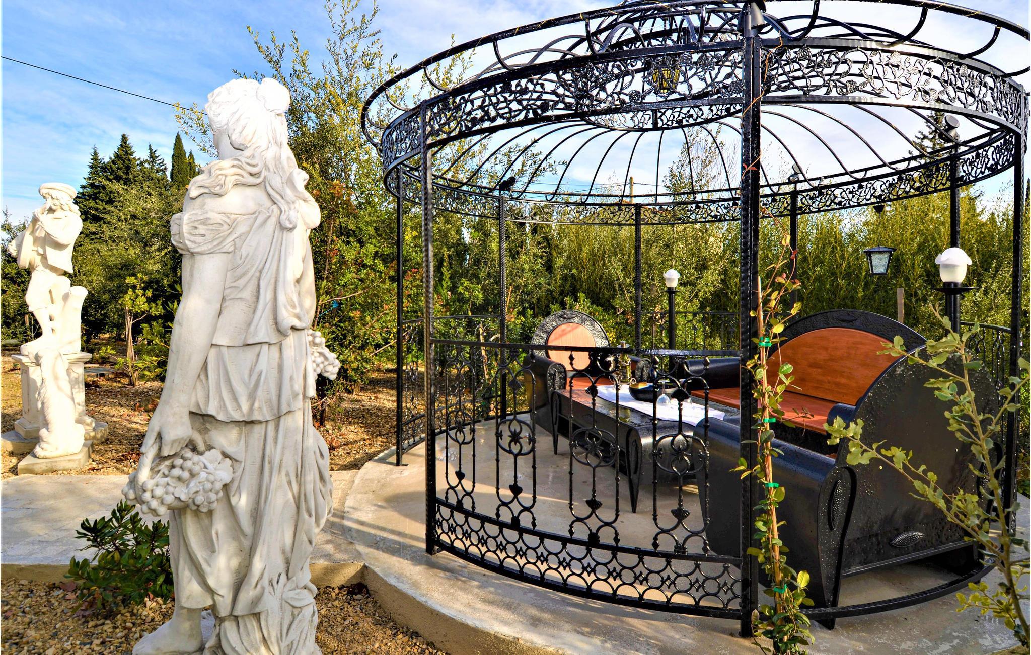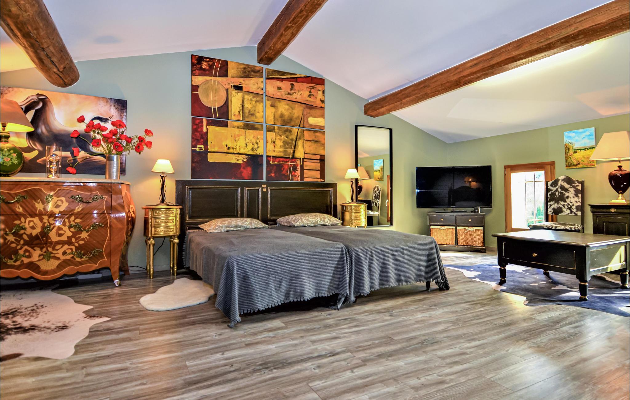 Dette store feriehus ligger tæt på interessante byer som Avignon, Nîmes, Arles og Les Baux-de-Provence. Ferieboligen, der er over 200 m² stor, byder udover egen pool på seks smukke soveværelser og fem badeværelser for op til seksten gæster.En allé beklædt med platantræer fører til huset på en 3,5 hektar stor grund. Ejendommen har tre stuer og to fuldt udstyrede køkkener. Udover den 4 x 12,5 m store swimmingpool, som drives af salt, er der et overdækket og opvarmet spabad, sauna og boulebane til din rådighed, og den ene af de to terrasser har pergola og er udstyret med en stor plancha eller grillplade monteret. Vallabrègues er en hyggelig by med blandt andet et kurvmuseum, og kun ti minutter væk har Avignogn sit tidligere pavepalads, den ikoniske Saint-Bénézet-bro og en travl bymidte. Guidede byture tilbydes i Avignon. Også anbefalet er Remoulins, Gardon-kløfterne med den populære Pont du Gard, Fontvieille og dens mølle Daudet, slottet ved Tarascon, klosteret Saint-Michel-de-Frigolet, Arles og dets romerske arenaer, Saint-Rémy-de- Provence eller Les Baux-de-Provence med et slot, volde og Carrières de Lumières eller et tidligere stenbrud, der nu er skueplads for unikke multimedieshows og udstillinger. Denne unikke region byder på en lang række cykel- og vandrestier, golfbaner, legepladser (10 minutter), gokartbane i Beaucaire (10 minutter), paintball i Avignon, biografer. Mange markeder tiltrækker vine og andre delikatesser fra regionen, for eksempel i Vallabrègues (mandag morgen), Aramon (onsdage), Fontvieille (mandage og fredage), Saint-Rémy-de-Provence (onsdage) eller i Villeneuve-les-Avignon ( torsdage). De, der kommer om sommeren, kan opleve en feria- eller tyrefægtningsfestival med abrivados (kører tyrene til arenaen) og bandidos (ledsager tyrene til græsningen efter konkurrencen). Dette komfortable midlertidige hjem og denne solrige region lover en afslappende og uforglemmelig ferie i Frankrig.