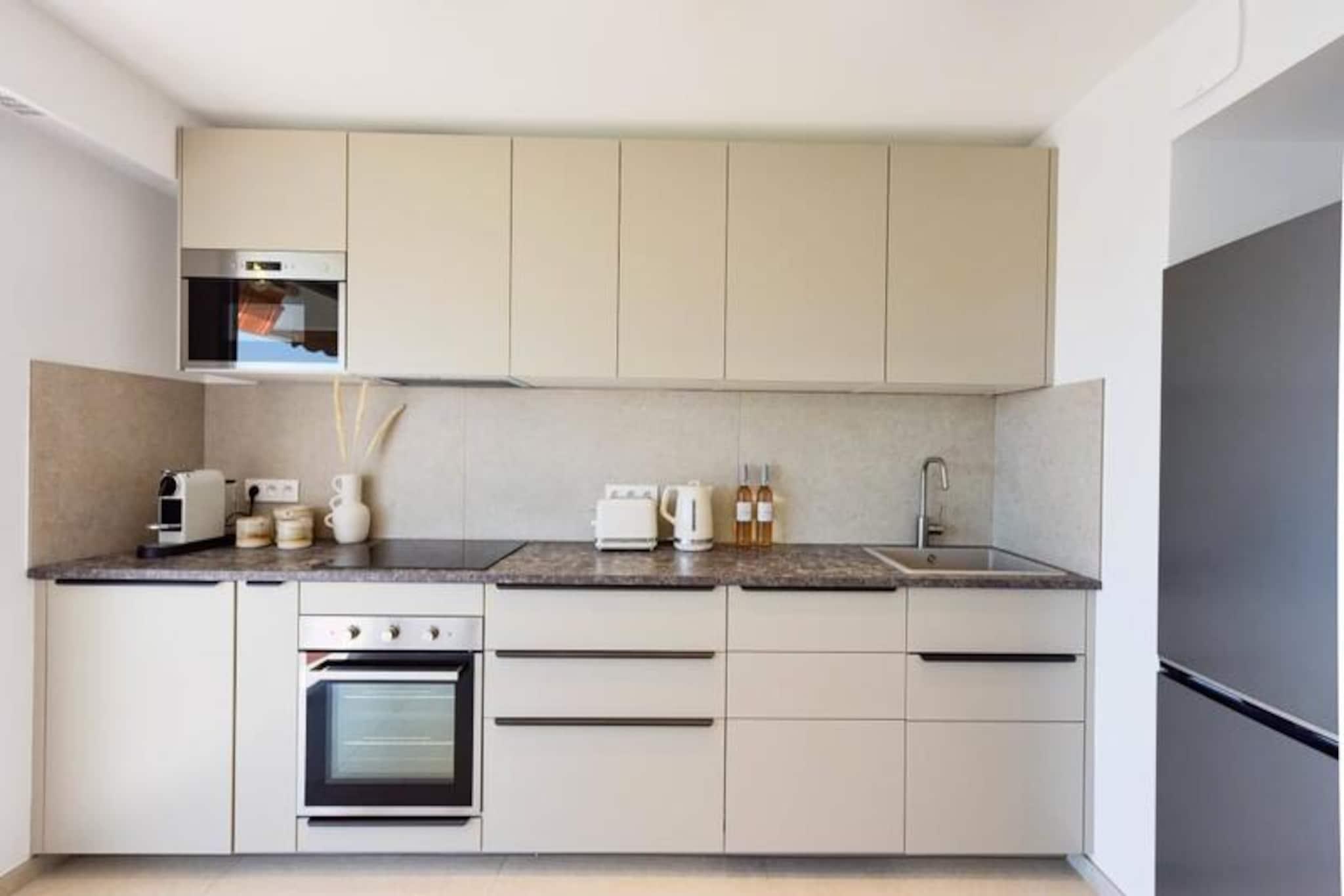 Forestil dig at vågne op til den blide lyd af bølger og træde ud på din private terrasse for at nyde den betagende havudsigt. Denne smukt renoverede lejlighed med et soveværelse i Golfe-Juan tilbyder et roligt tilflugtssted kun 5 minutters gang fra stranden. Beliggende i et lukket område med en sikker underjordisk garage, kombinerer denne ejendom moderne elegance med charmen ved den franske riviera, hvilket gør den til det perfekte tilflugtssted for par eller små familier, der søger både komfort og bekvemmelighed. Træd indenfor og oplev en rummelig opholdsstue fyldt med naturligt lys, med en blød sovesofa, lænestole og et smart-tv til hyggelige aftener. Det fuldt udstyrede, eksklusive køkken åbner ud til stuen, hvilket skaber et problemfrit rum til madlavning og spisning. Soveværelset med aircondition har en luksuriøs kingsize-seng, premium-sengetøj og direkte adgang til terrassen, hvor du kan nyde måltider under åben himmel ved spisebordet, mens du kigger ud over det azurblå vand. Et elegant badeværelse med bruseniche og LED-antidugspejl tilføjer et strejf af spa-lignende forkælelse. Beliggenheden er uovertruffen. En kort gåtur fører dig til sandstrandene i Golfe-Juan, den pulserende havn med dens yachter og bådudlejning samt charmerende lokale butikker og restauranter. For en dag med udforskning ligger Cannes og Antibes kun en kort køretur væk og byder på ikoniske vartegn som Croisetten, Rue d'Antibes og Cap d'Antibes. De nærliggende Lérins-øer, der er tilgængelige med båd, lover turkisblåt vand og uforglemmelig natur. Med sin blanding af luksus, beliggenhed og personlig concierge-service sikrer denne lejlighed et mindeværdigt ophold på Côte d'Azur. Uanset om du er her for afslapning eller eventyr, er dette din port til det bedste af den franske Riviera.