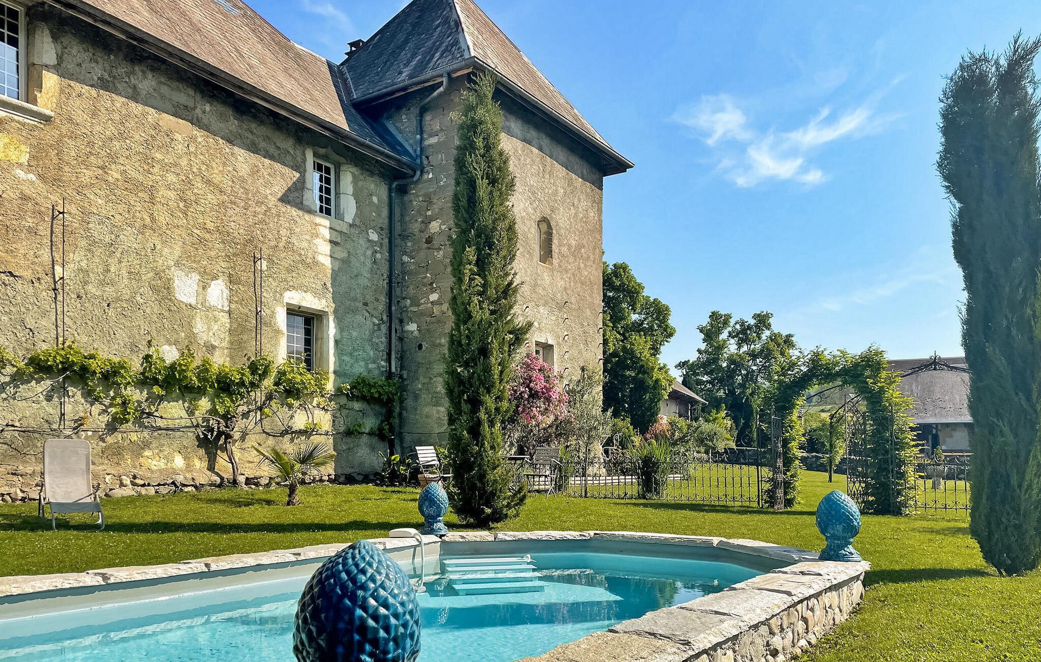 Oplev en enestående ferielejlighed perfekt til et unikt, romantisk ophold, beliggende i et smukt slot fra det 13. århundrede omgivet af det fængslende landskab mellem Annecy-søen og Bourget-søen. Beliggende på første sal i slottets venstre tårn tilbyder denne ejendom en unik oplevelse. Lejligheden har en indgang til en rummelig opholdsstue, der består af et fuldt udstyret åbent køkken med vigtige apparater, en spiseplads og et komfortabelt opholdsområde. Udenfor kan du nyde udsigten over Clergeon og Val de Fier. Nyd adgang til en fælles swimmingpool, en privat terrasse med havemøbler og en grill. Stranden ved floden ved Morge byder på liggestole, en grill og havemøbler. Yderligere faciliteter omfatter opbevaring af sportsudstyr, parkeringsfaciliteter og en rummelig beskyttet gårdhave med et veludstyret køkken til fælles brug blandt feriegæster. Bemærk venligst tilstedeværelsen af heste, hunde, lamaer og høns på ejendommen, og ørredfiskeri er muligt i Morge-floden nedenfor slottet. Derudover er der mulighed for leje af bokse til heste. Om vinteren er sneudstyr afgørende. På grund af ejendommens funktioner som usikrede pools og lave volde, frarådes det at efterlade små børn uden opsyn. En anden ferielejlighed er tilgængelig i højre fløj af slottet. Beliggende mellem søerne Bourget og Annecy mindre end 45 minutter fra Genève, tilbyder slottet et ideelt feriemål mellem Savoy og Schweiz. Rideentusiaster kan tage deres heste med og nyde de mange stier fra slottet. Bemærk venligst: Ejerne bor i stueetagen.