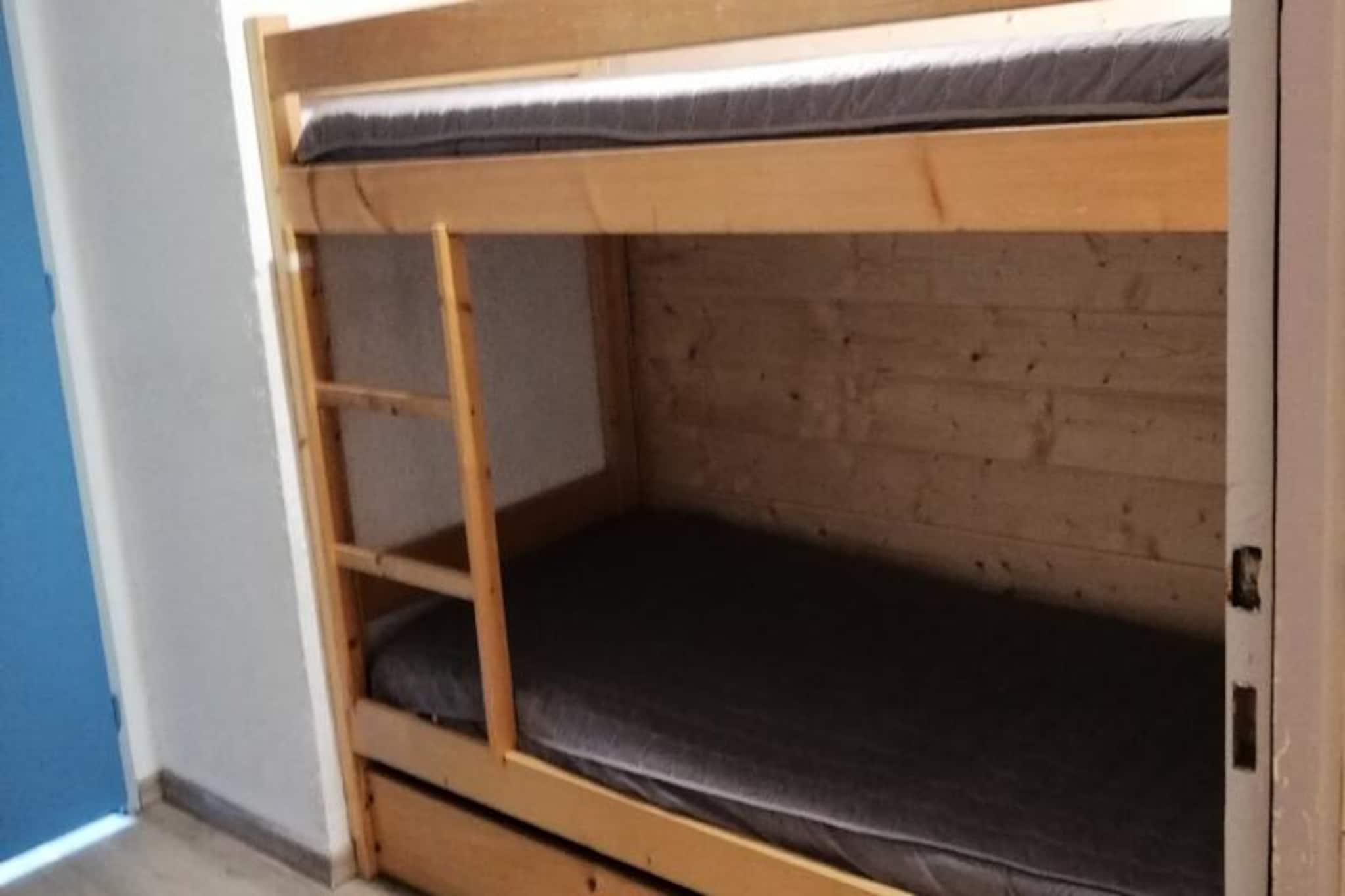 I hjertet af den charmerende alpelandsby Valloire tilbyder denne hyggelige lejlighed et dejligt tilflugtssted for både vinter- og sommereventyr. Kun få skridt fra det pulserende Clos des Etoiles-område vil du finde dig selv fordybet i den livlige atmosfære i de franske alper, omgivet af en fantastisk udsigt over bjergene og et imødekommende samfund. Uanset om du er her for at klatre gennem uberørte skråninger eller sole dig i sommersolen, er denne ejendom perfekt placeret til at få mest muligt ud af dit ophold. \n\nLejligheden har komfortabel plads til op til fire gæster med gennemtænkte sovepladser, herunder en sovesofa i stuen og køjesenge i entréen. Tekøkkenet er udstyret med moderne bekvemmeligheder såsom ovn, mikrobølgeovn, elektrisk kogeplade, opvaskemaskine og køleskab, hvilket gør det nemt at tilberede solide måltider efter en dag med udforskning. Slap af i den hyggelige lounge med et tv eller slap af på badeværelset med badekar og hårtørrer. Den vestvendte terrasse giver et roligt sted at nyde den alpine atmosfære, mens fælles parkering og et skirum gør dit ophold mere behageligt. \n\nVintergæster vil elske nærheden til Crêt de la Brive-svævebanen, kun 280 meter væk, og skiskolens mødested, der sikrer problemfri adgang til pisterne. Om sommeren ligger fritidscentret med swimmingpool, skøjtebane og wellness-område kun 220 meter væk, mens børnelegepladsen ligger en kort gåtur på 400 meter. De nærliggende butikker, kun 130 meter fra boligen, tilbyder alt, hvad du behøver for en behagelig og fornøjelig ferie. \n\nMed sin førsteklasses beliggenhed og indbydende faciliteter er denne lejlighed et ideelt valg for familier, par eller venner, der søger en mindeværdig alpeferie. Oplev Valloires magi og skab varige minder i dette charmerende tilflugtssted.
