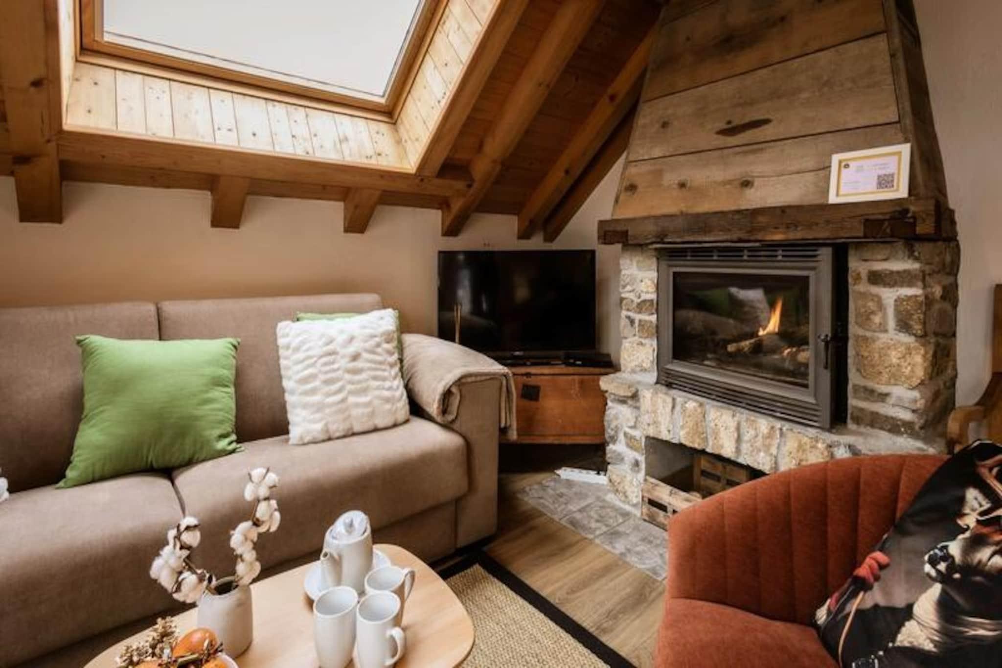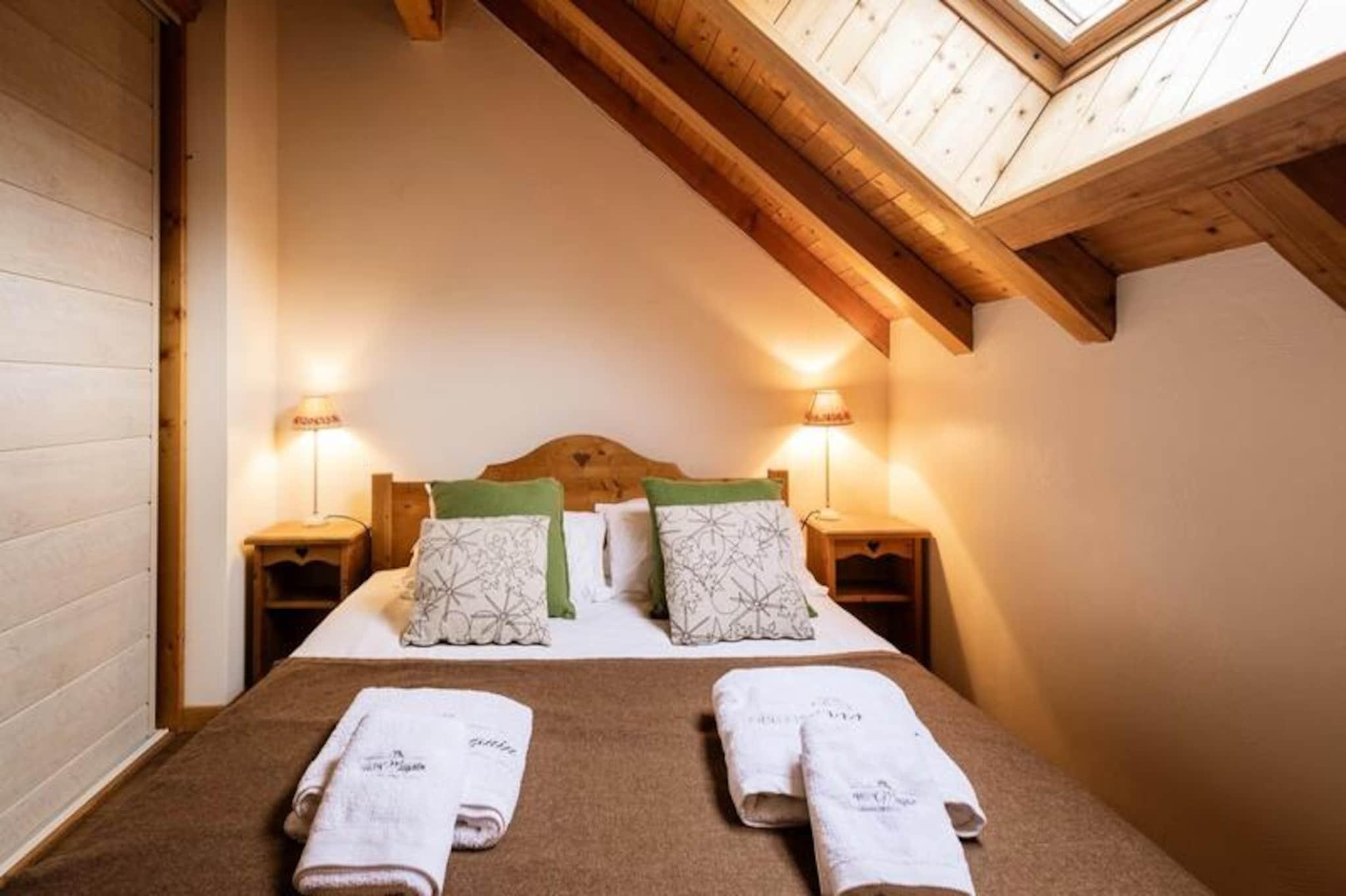 I den charmerende landsby Les Verneys, kun 2 km fra hjertet af Valloire, tilbyder dette traditionelle alpine tilflugtssted en perfekt blanding af rustik charme og moderne komfort. Omgivet af betagende bjerglandskaber er det et ideelt paradis for familier, venner og naturelskere, der søger en mindeværdig ferie i enhver sæson. Uanset om du er her for de snedækkede skråninger om vinteren eller de solrige stier om sommeren, lover denne ejendom en uforglemmelig oplevelse. Huset har en varm og indbydende planløsning med to hyggelige soveværelser og en rummelig stue med en sovesofa, der komfortabelt rummer op til seks gæster. Det åbne køkken er fuldt udstyret med moderne apparater, hvilket gør det nemt at tilberede solide måltider efter en dag med eventyr. Slap af ved pejsen i den sydvendte stue, eller gå ud på den vestvendte balkon for at nyde den fredfyldte udsigt over alperne. Med to badeværelser, vaskemaskine, tørretumbler og gennemtænkte detaljer som redte senge og håndklæder er der tænkt på hver eneste detalje for din bekvemmelighed.\n\nVintergæster vil sætte pris på nærheden til Verneys-stoleliften, kun 400 m væk, og ESF-skiskolens mødested, hvilket gør det nemt at komme ud på pisterne. Langrendsløjper ligger en kort gåtur på 550 m, mens en gratis skilift for begyndere sikrer sjov for alle niveauer. Om sommeren ligger ejendommen kun 750 m fra golfbanen og tennisbanerne, med en legeplads i nærheden for yngre gæster. Lokale faciliteter, herunder et bageri og en aviskiosk, ligger inden for 350 m, og en regelmæssig shuttle til Valloires centrum stopper kun 60 m fra din dør.\n\nMed adgang til en fælles have, grill og wellnessfaciliteter som sauna, dampbad og jacuzzi tilbyder dette hjem afslapning og rekreation i lige mål. Uanset om du søger spændende udendørs eventyr eller fredelige øjeblikke i bjergene, er denne ejendom din port til det bedste af Valloire.
