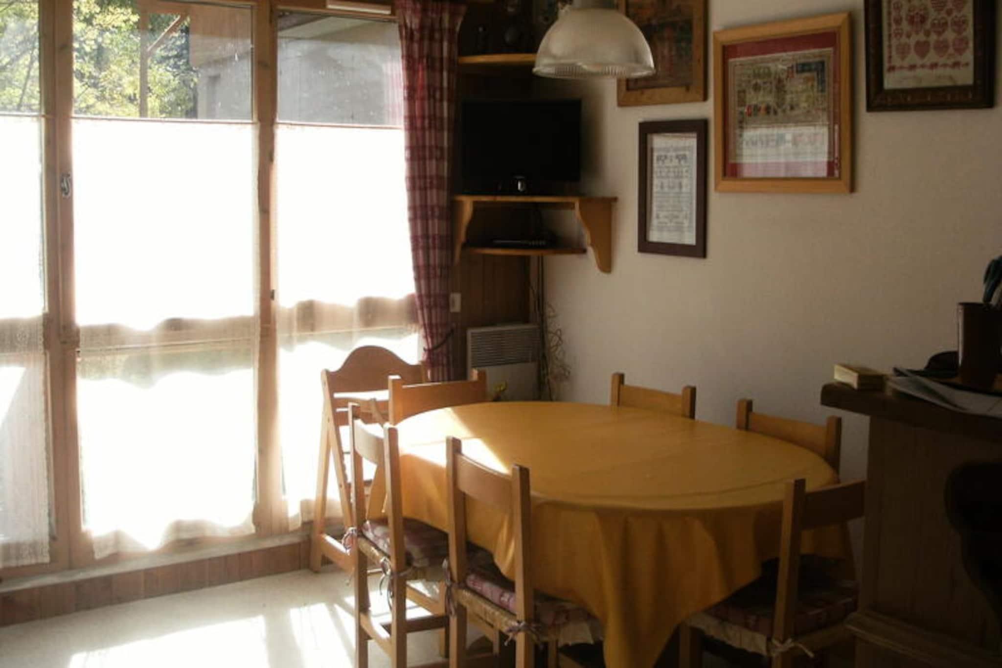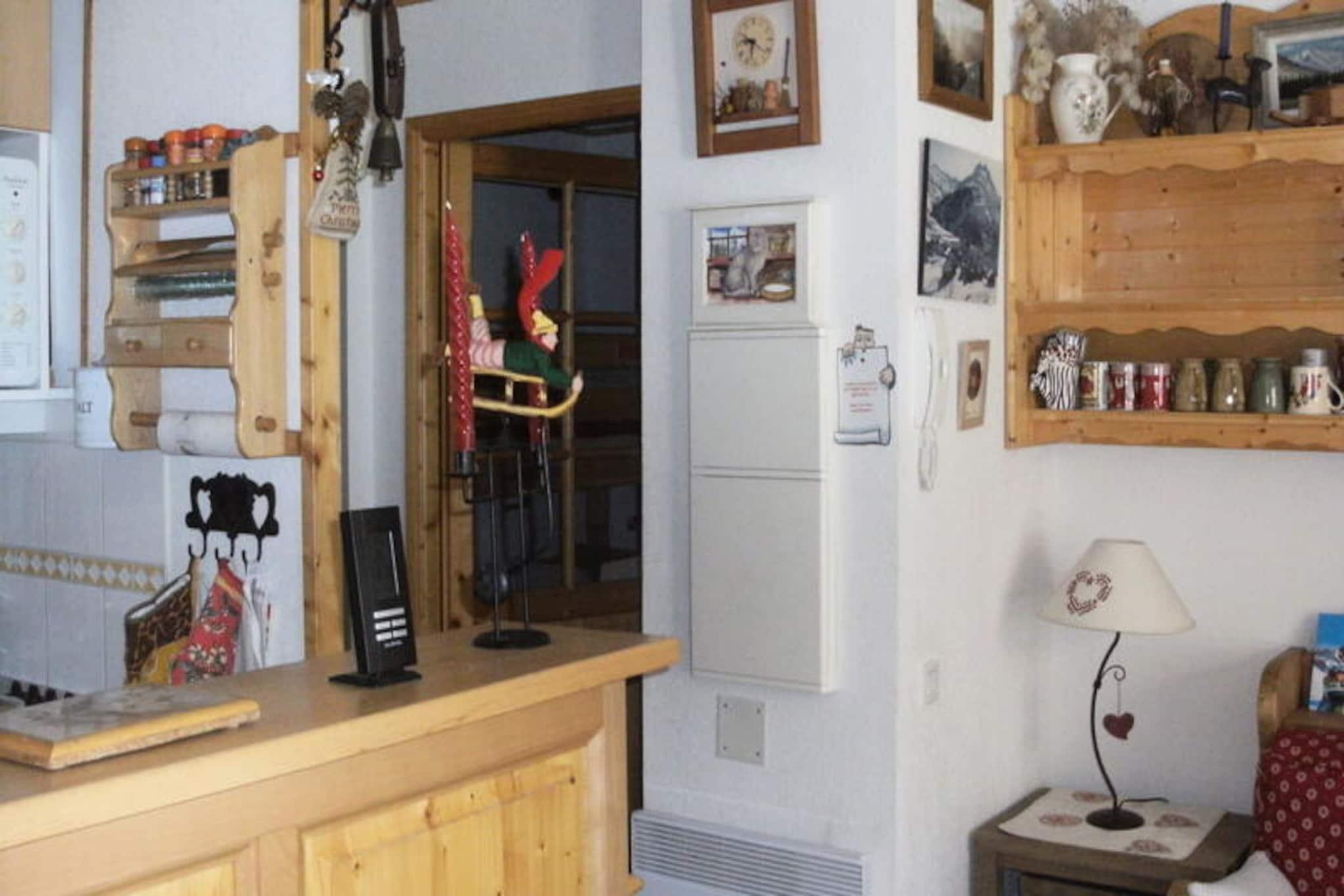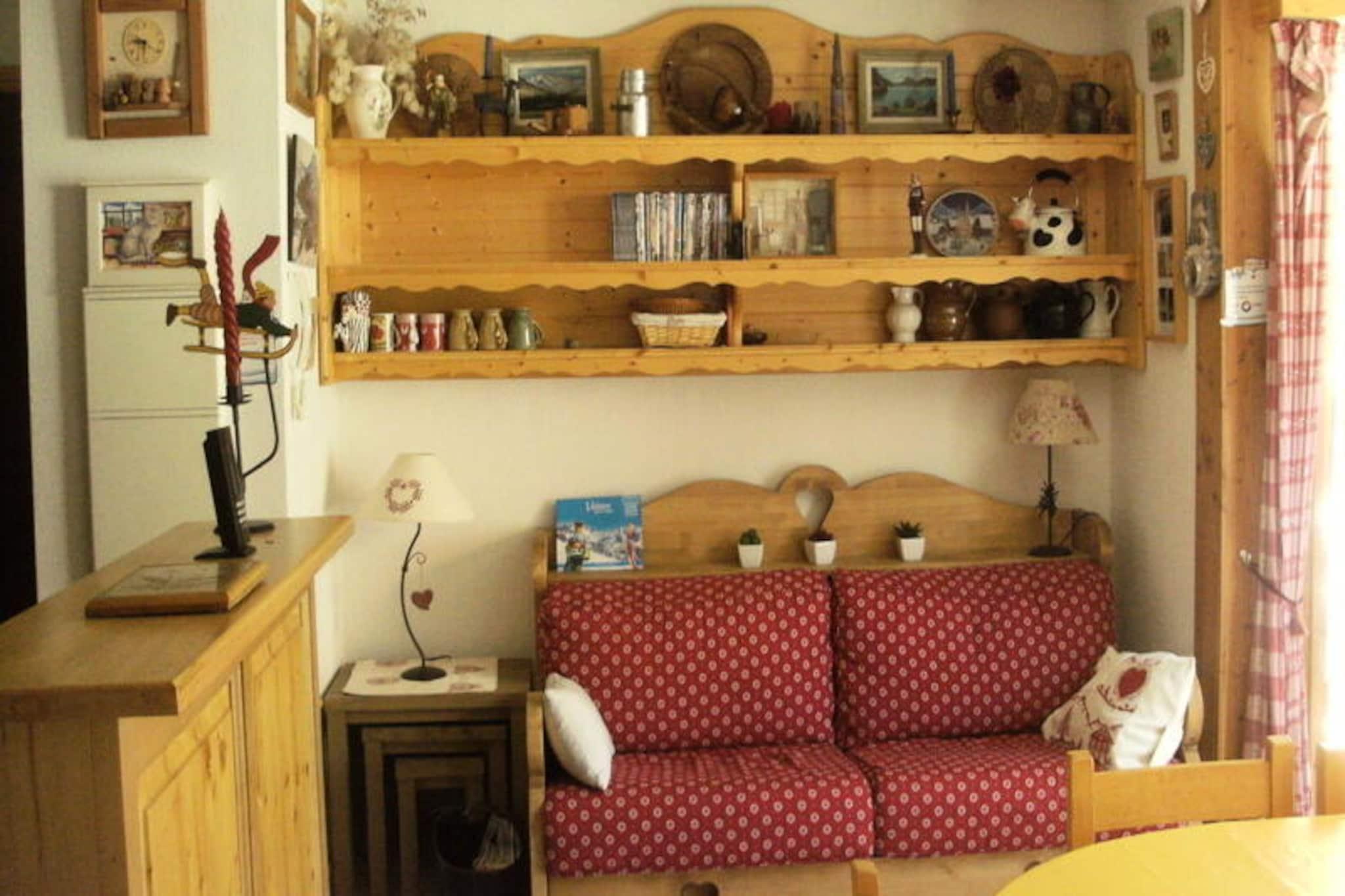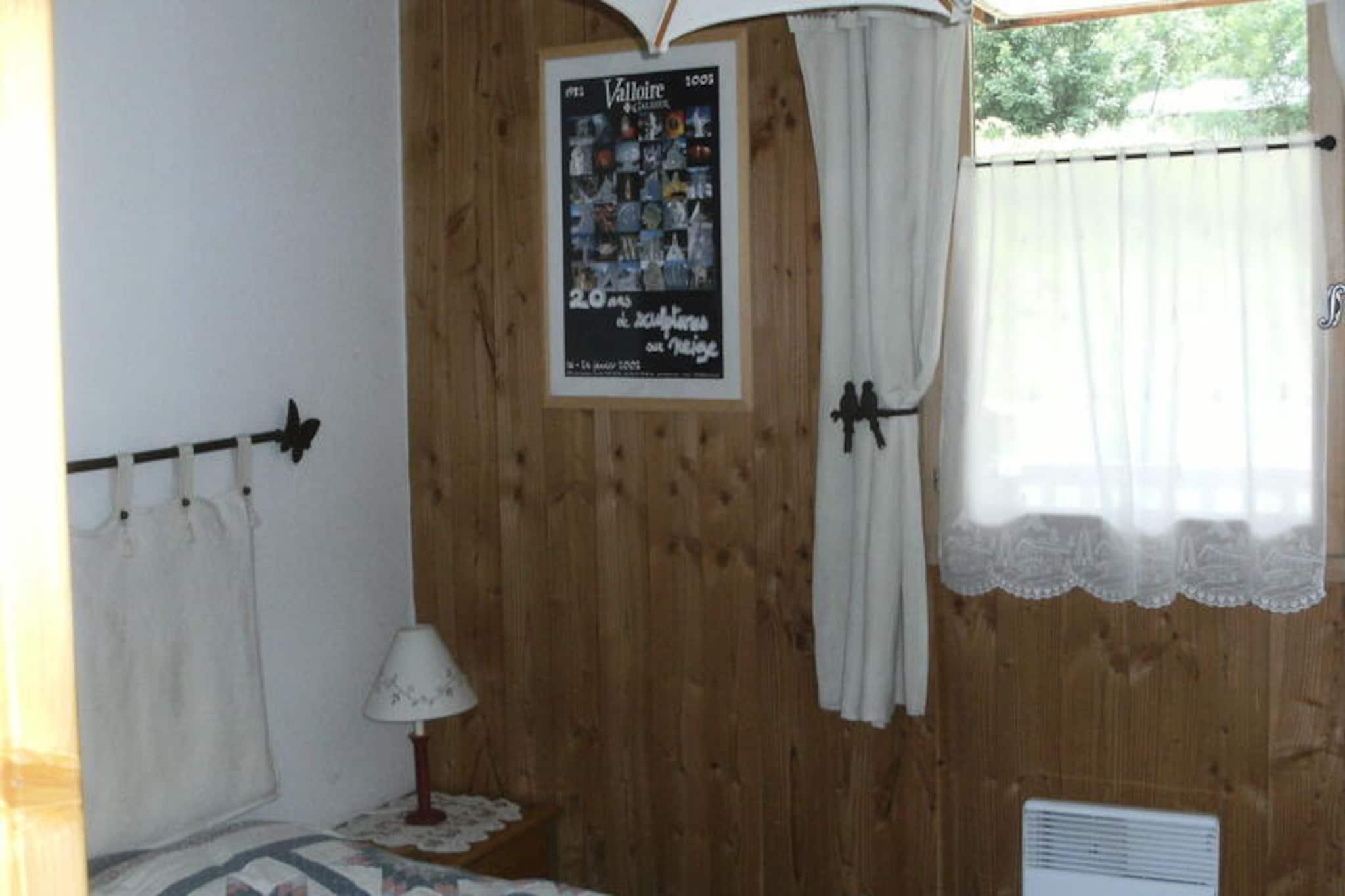 I den charmerende landsby Les Plans, kun en kort gåtur fra hjertet af Valloire, tilbyder denne dejlige bolig et fredeligt tilflugtssted omgivet af de franske alpers majestætiske skønhed. Uanset om du besøger stedet om vinteren eller sommeren, sikrer ejendommens førsteklasses beliggenhed nem adgang til både spændende alpine eventyr og afslappende fritidsaktiviteter. Vågn op til en fredfyldt udsigt over bjergene fra din sydvendte balkon og nyd roen i dette rolige kvarter, mens du stadig er tæt på alt, hvad der sker. Butikker er bekvemt placeret kun 350 meter væk, og en betalt shuttlebus stopper kun 100 meter fra boligen for ekstra bekvemmelighed. \n\nIndvendigt er lejligheden omhyggeligt designet til at rumme op til seks gæster, hvilket gør den ideel til familier eller små grupper. Det hyggelige soveværelse har en dobbeltseng, mens gangen tilbyder køjesenge, og stuen har en komfortabel sovesofa. Tekøkkenet er fuldt udstyret med moderne apparater, herunder ovn, opvaskemaskine, mikrobølgeovn og køleskab med fryser, hvilket sikrer, at du har alt, hvad du behøver for at tilberede lækre måltider. Efter en dag med udforskning kan du slappe af i opholdsstuen med et fjernsyn eller tage et bad i det veludstyrede badeværelse. Yderligere faciliteter inkluderer vaskemaskine, skibokse og en privat garage.\n\nOm vinteren ligger boligen kun 600 meter fra Crêt de la Brive-svævebanen og skiskolens mødested, hvilket gør den til en perfekt base for skientusiaster. Om sommeren ligger fritidscentret med swimmingpool, skøjtebane og wellness-område kun 450 meter væk, mens der ligger en legeplads inden for 250 meter. Uanset om du er på pisterne eller nyder solrige alpine dage, tilbyder denne ejendom den perfekte blanding af komfort og bekvemmelighed.\n\nVælg denne indbydende bolig til din næste ferie og fordyb dig i Valloires charme, hvor uforglemmelige minder venter i enhver sæson.