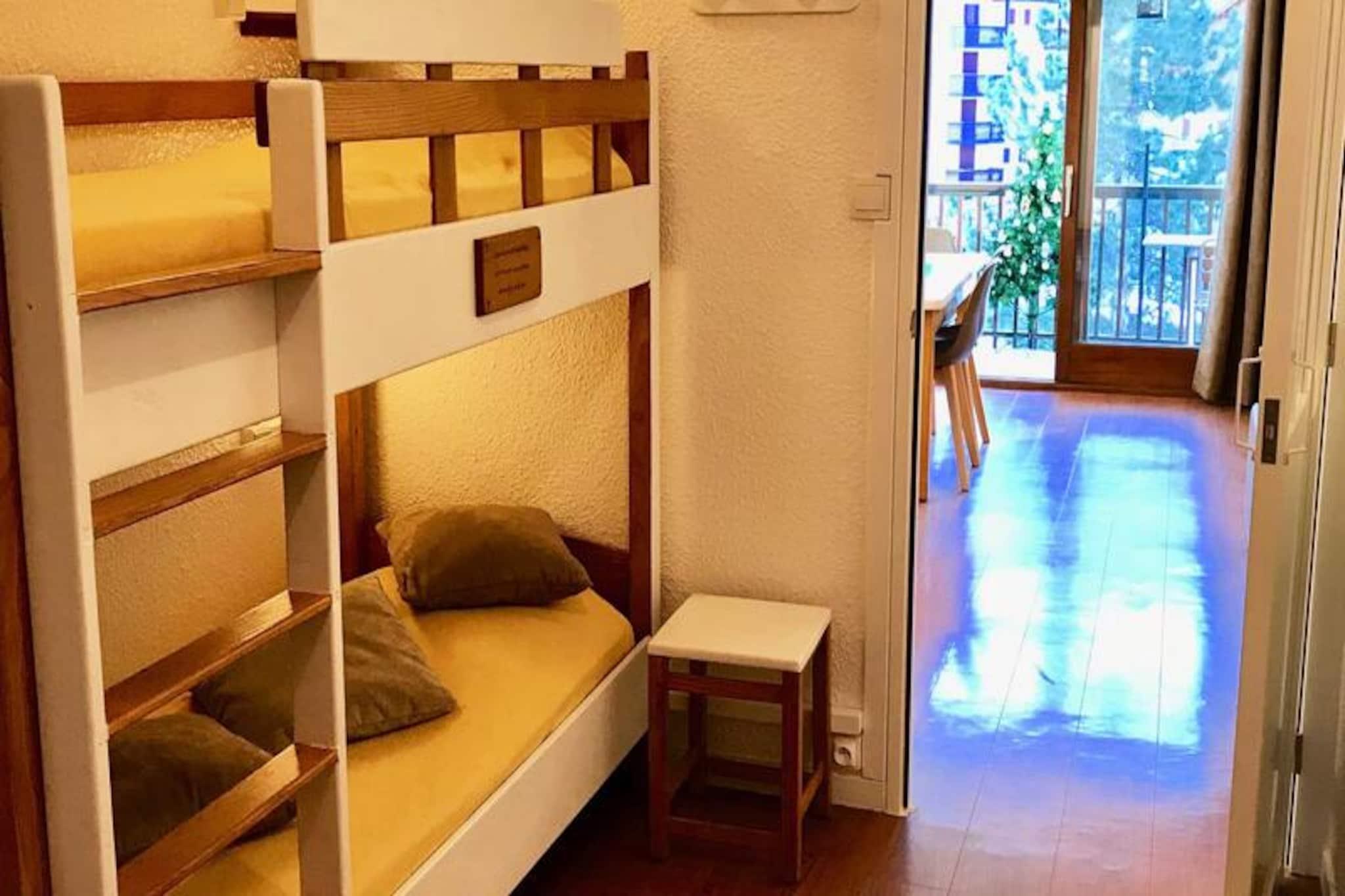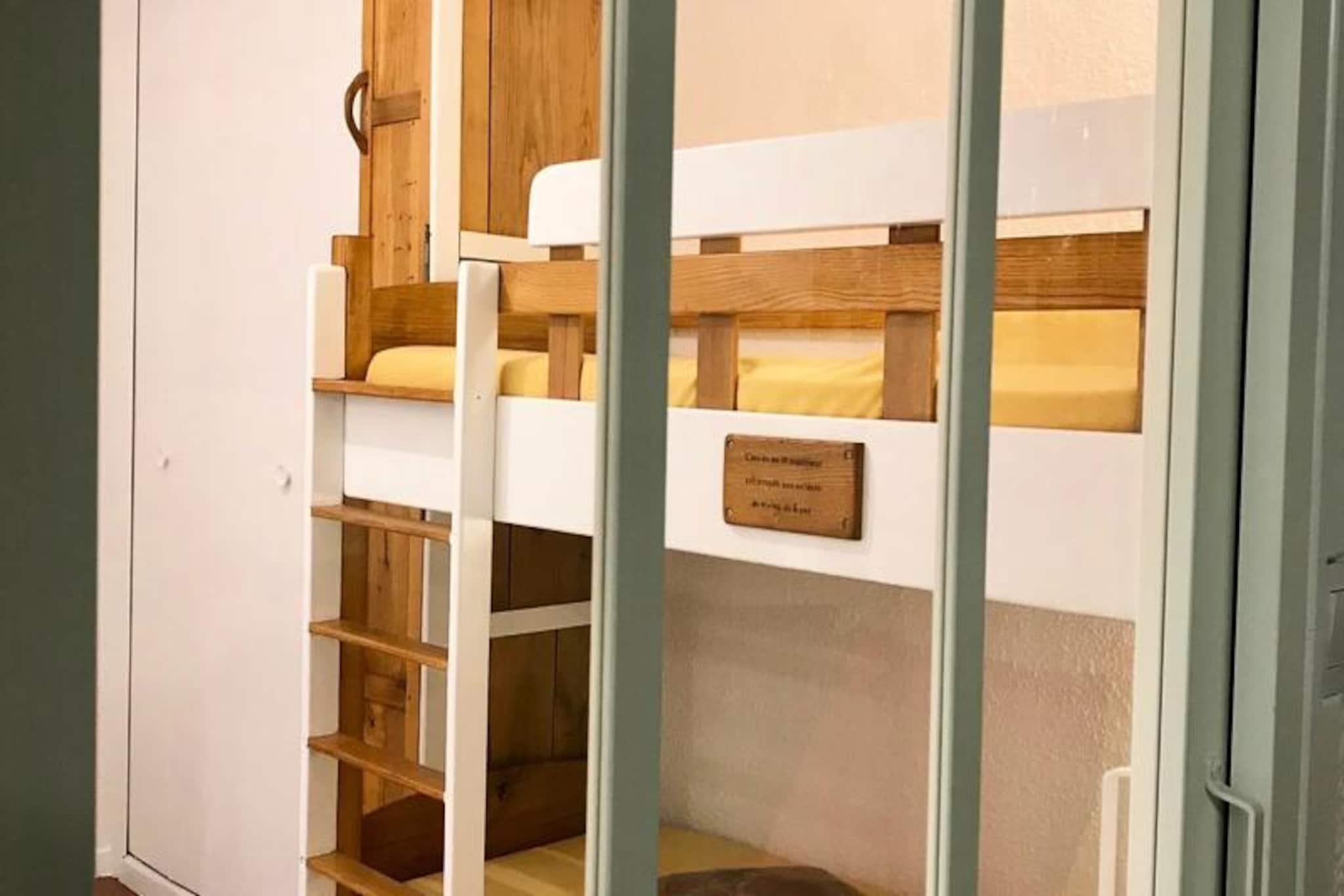 I hjertet af den charmerende alpelandsby Valloire tilbyder denne hyggelige bolig en perfekt blanding af komfort og bekvemmelighed til din næste bjergferie. Med sin centrale beliggenhed befinder du dig kun 220 meter fra Crêt de la Brive-svævebanen og skiskolens mødested, hvilket gør det til et ideelt valg for vintersportsentusiaster. Om sommeren ligger fritidscentret med swimmingpool, skøjtebane og wellness-område kun 500 meter væk, hvilket sikrer aktiviteter året rundt for alle aldre. De omkringliggende landsbygader er fyldt med butikker, der inviterer dig til at udforske lokale delikatesser og kunsthåndværksskatte. \n\nDenne sydvendte lejlighed er omhyggeligt designet til at rumme op til fire gæster. Indgangen har en hyggelig sovekrog med køjesenge, mens stuen tilbyder yderligere sovemuligheder med en sovesofa og en enkeltseng. Tekøkkenet er fuldt udstyret med moderne apparater, herunder ovn, opvaskemaskine, mikrobølgeovn og keramisk kogeplade, hvilket gør det nemt at tilberede måltider efter en dag med eventyr. Slap af i loungen med fladskærms-tv og Wi-Fi, eller gå ud på den solrige balkon for at nyde udsigten over bjergene fra dit private udendørsområde, komplet med bord, stole og liggestole.\n\nFor ekstra bekvemmelighed inkluderer boligen skiopbevaring, elevator og både privat underjordisk parkering og fælles udendørs parkering (afhængigt af tilgængelighed). Uanset om du besøger Valloire om vinteren for at klatre gennem de uberørte pister eller om sommeren for at vandre på de betagende stier, tilbyder den en uforglemmelig alpin oplevelse. Med sin indbydende atmosfære, fantastiske omgivelser og nærhed til vigtige faciliteter er denne 3-stjernede indkvartering den perfekte base for at skabe varige minder i de franske alper.