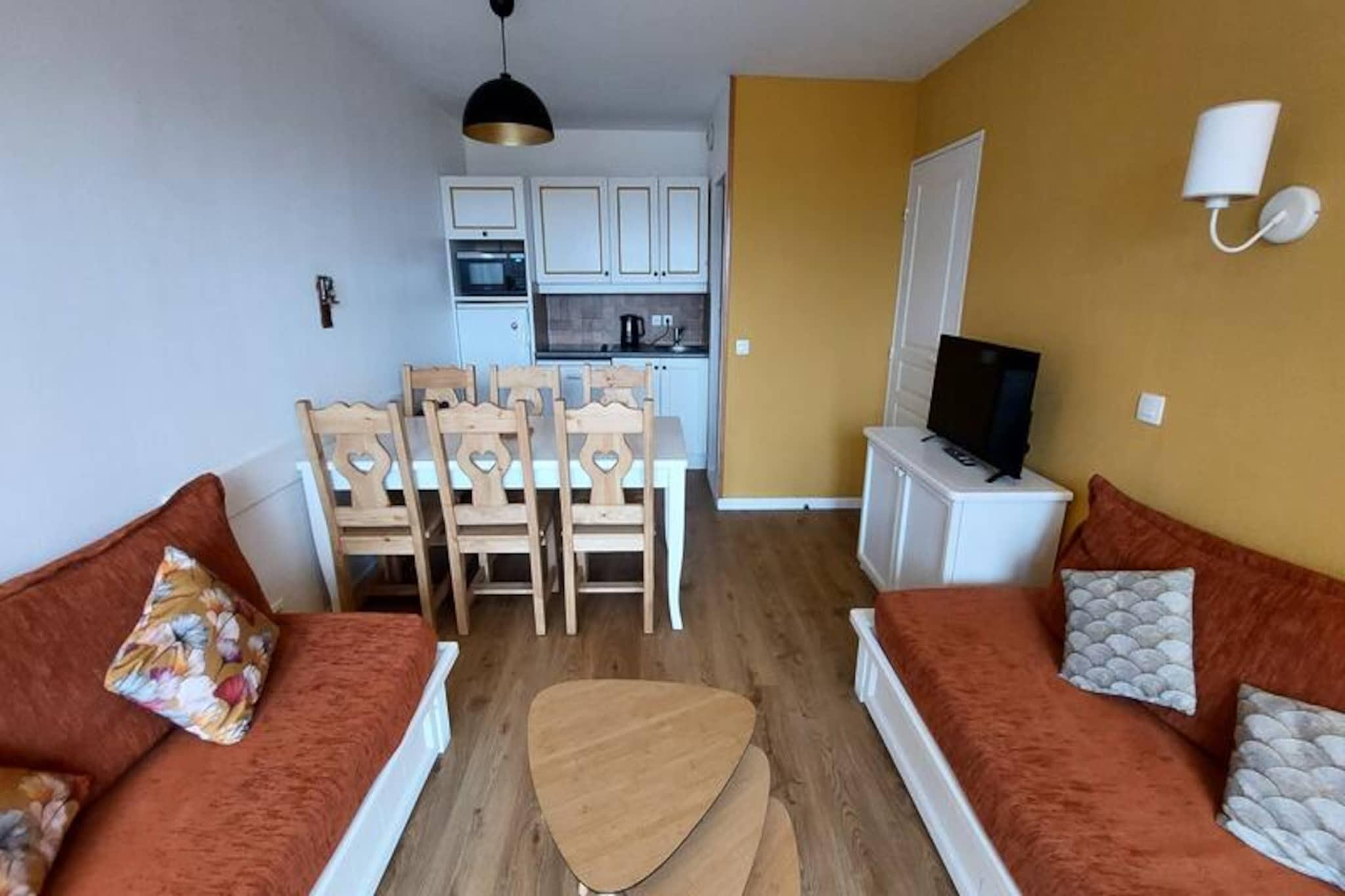 I hjertet af den fantastiske Maurienne-dal tilbyder denne charmerende lejlighed i Le Thabor-residensen et perfekt alpint tilflugtssted. Beliggende på de øvre skråninger af Valmeinier 1800, er residensen omgivet af betagende bjergudsigter og direkte adgang til det berømte skisportsområde Galibier-Thabor. Forestil dig at vågne op til den fredfyldte skønhed af de snedækkede tinder, træde ud på din private balkon for at nyde panoramaudsigten og gå direkte til pisterne kun få skridt fra din dør. Dette er bjergliv, når det er bedst. Lejligheden, der er omhyggeligt designet til komfort, har en rummelig opholdsstue med en sovesofa, et fuldt udstyret køkken i amerikansk stil og en spiseplads med plads til seks personer. To hyggelige soveværelser, herunder et med en dobbeltseng og et andet med køjesenge, sikrer afslappende nætter for op til seks gæster. Med to badeværelser, herunder et med badekar, og moderne bekvemmeligheder som Wi-Fi i receptionen, er dette hjem perfekt til familier eller grupper, der søger en afslappende ferie. Den sydvendte balkon tilbyder et solrigt sted at slappe af efter en dag med eventyr. Ud over residensen ligger Valmeinier 1800, et livligt og indbydende feriested med butikker, restauranter og aktiviteter inden for gåafstand. Om vinteren tilbyder skiområdet Galibier-Thabor uendelige muligheder for skiløb og snowboarding, mens sommeren forvandler regionen til et paradis for vandreture, mountainbiking og udforskning af Alpernes naturlige skønhed. Den opvarmede udendørs pool, der er åben sæsonbestemt, tilføjer et strejf af luksus til dit ophold. Uanset om du er tiltrukket af spændingen ved pisterne eller roen i alpine landskaber, lover denne lejlighed i Le Thabor-residensen en uforglemmelig bjergferie. Omfavn Valmeiniers charme og skab varige minder i disse idylliske omgivelser.