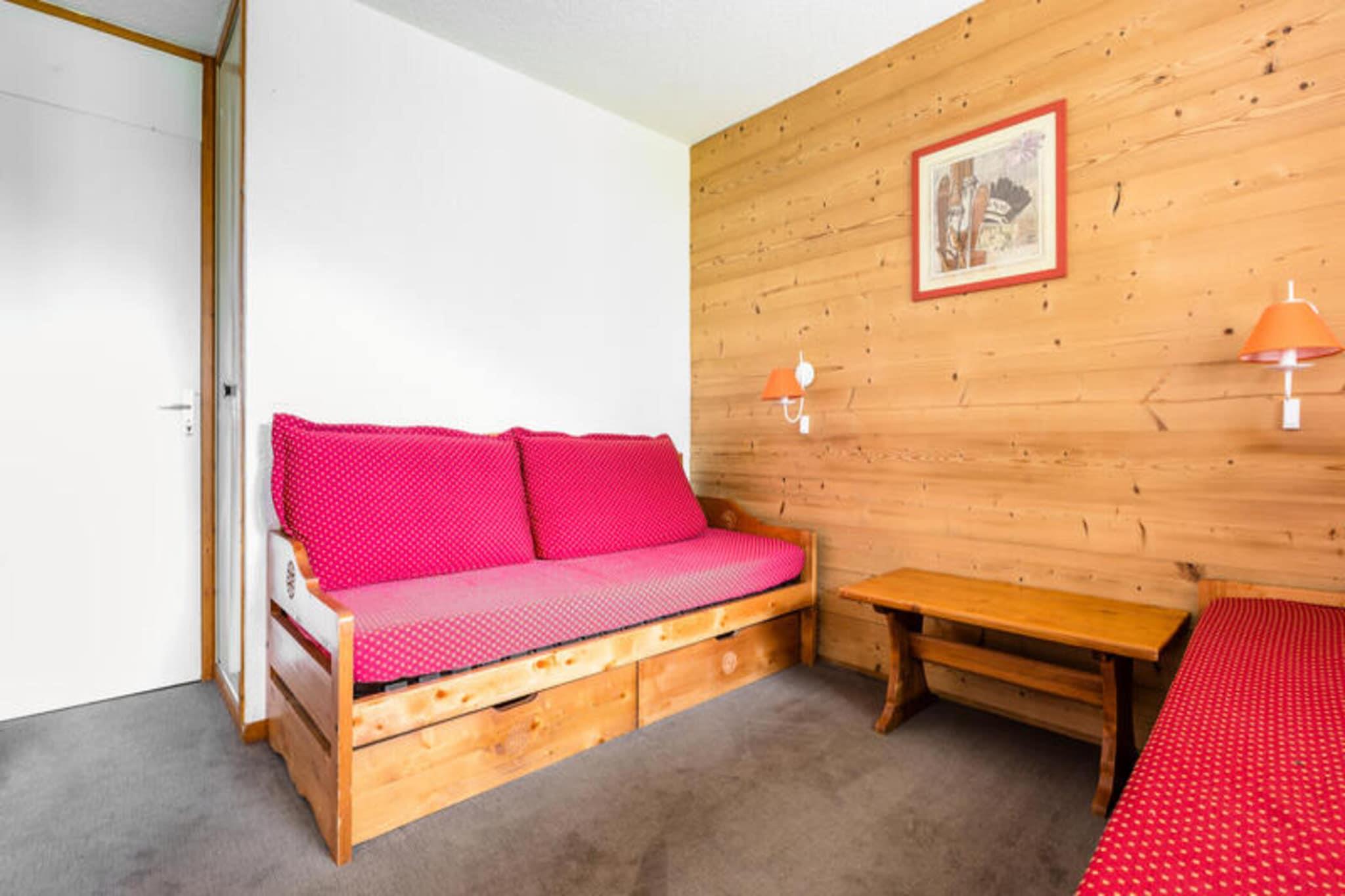 Ejendommen tilbyder sammen med dets hyggelige og funktionelle design et komfortabelt boligareal på 28m², ideelt for op til fire personer. I stuen er der tre sovesofaer, hvoraf den ene har en udtræksseng, hvilket giver fleksibilitet til overnatning. Gæsterne kan nyde en privat terrasse med en behagelig udsigt over landsbyen, som tilbyder et fredeligt tilflugtssted. Boligen er kæledyrsvenlig mod et tillægsgebyr og giver også mulighed for at leje et babysæt, afhængigt af tilgængelighed. Yderligere tjenester såsom Wi-Fi, sengetøj og håndklæder er tilgængelige mod et ekstra gebyr. Slutrengøring er obligatorisk, og daglig rengøring kan arrangeres mod et tillægsgebyr. Der er et skiskab til gæsterne samt adgang til et fjernsyn afhængigt af boligen. Ejendommen er beliggende i Crève Cœur-distriktet i Valmorel og tilbyder en uovertruffen beliggenhed til vinter- og sommeraktiviteter. Gæsterne har direkte adgang til pisterne om vinteren og vandrestier om sommeren, hvilket gør det til en ideel base for udendørsentusiaster. Resortets centrale shoppinggade ligger en kort gåtur derfra, og vigtige tjenester er inden for 5 minutter til fods. Den nærmeste skilift ligger kun 1 til 5 minutters gang fra ejendommen, mens Maeva Home-bureauet ligger mindre end 1 km derfra. Adgang til offentlig transport er også praktisk, med en nærliggende svævebane (Télébourg), der forbinder dig til centrum. Området er let tilgængeligt med bil, og den nærmeste lufthavn er omkring 1,5 time væk. Ejendommen har et funktionelt køkkenområde, som er adskilt fra stuen, og giver gæsterne mulighed for at tilberede deres egne måltider. Et spisebord med plads til fire er inkluderet, hvilket sikrer en behagelig madoplevelse. Badeværelset har bruser, og der er også et separat toilet. Boligen er velholdt og lys, hvilket giver en afslappende atmosfære for gæsterne. For dem med køretøjer er parkering tilgængelig mod et ekstra gebyr, og gratis parkering tilbydes i sommermånederne. Boligen er en del af Maeva Home Selection, hvilket sikrer en høj standard for komfort og kvalitet for et mindeværdigt ophold.