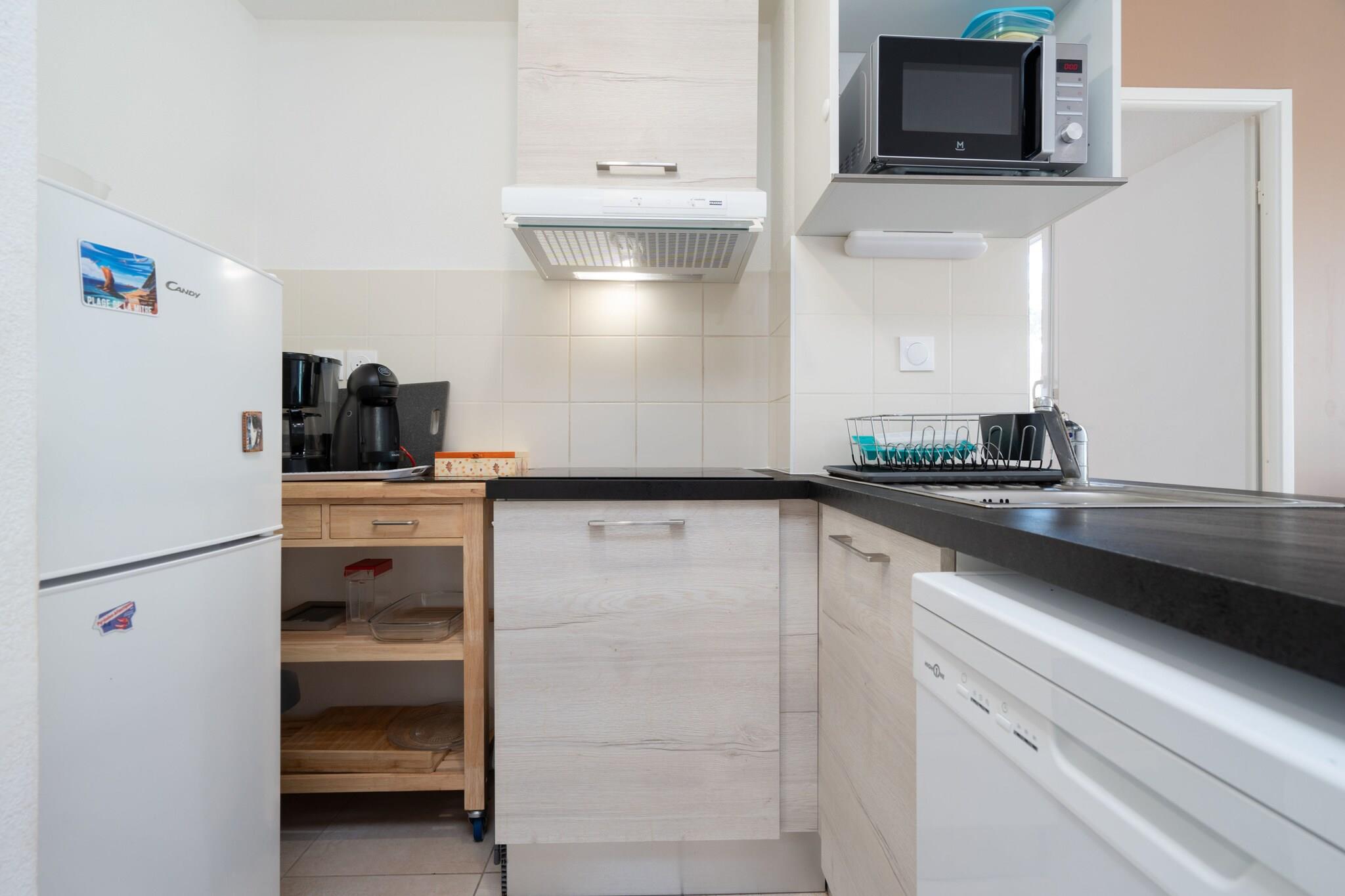 Denne villa på 57 m² i Valras-Plage har 3 soveværelser og kan rumme op til 8 gæster. Beliggende kun 450 meter fra sandstranden og 2 km fra det nærmeste supermarked, er det ideelt for familier, der søger en afslappende kystferie. Villaen er udstyret med forskellige faciliteter, herunder en have, udendørsmøbler, en terrasse og en grill til udendørs nydelse. Det tilbyder også internetadgang (Wi-Fi), elvarme, en fælles opvarmet swimmingpool, udendørs parkering i samme bygning og et tv med satellitkanaler (fransk). Det elektriske køkken i åbent plan er fuldt udstyret med køleskab, mikroovn, ovn, opvaskemaskine, service/bestik, kaffemaskine, brødrister og kedel, hvilket sikrer et bekvemt og behageligt ophold for alle gæster.