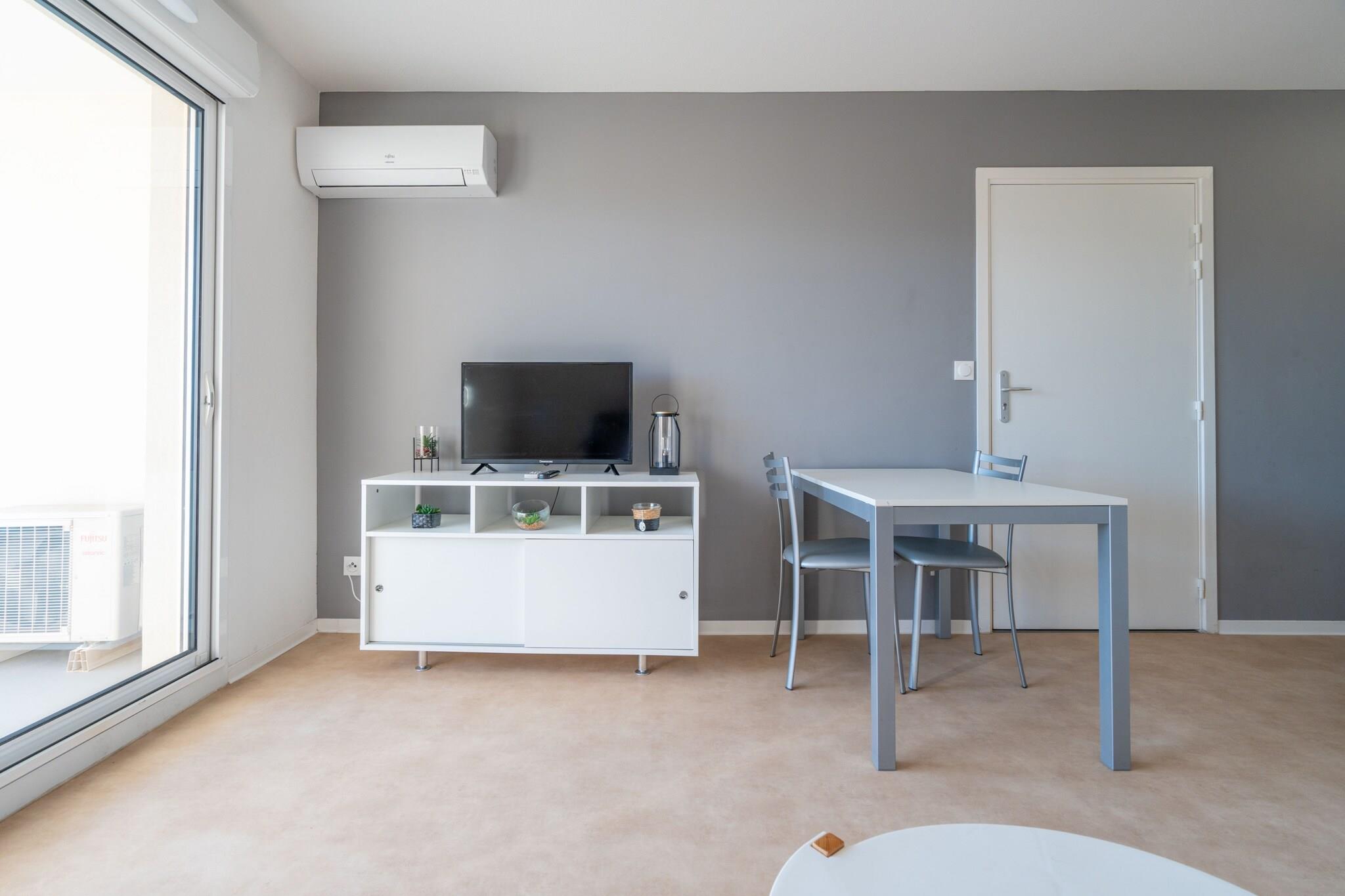 Denne lyse og moderne studio på 26 m² i Valras-Plage er ideel til to gæster, der søger en fredelig kystflugt. Beliggende i et familievenligt område kun 450 meter fra sandstranden, 150 meter fra en restaurant og 2 km fra et supermarked, tilbyder det både bekvemmelighed og charme til et afslappende ophold. Studiet har en privat balkon med havemøbler, aircondition, elvarme og adgang til en fælles opvarmet swimmingpool. Indenfor vil gæsterne finde gennemtænkte faciliteter, herunder et tv, strygejern og hårtørrer for at sikre komfort under deres besøg. Det elektriske køkken i åbent plan er fuldt udstyret med køleskab, mikroovn, opvaskemaskine, kaffemaskine, brødrister, kedel og alle nødvendige redskaber. Uanset om du nyder morgenmaden på balkonen eller udforsker den nærliggende strand og spisesteder, giver dette studie alt det nødvendige for en hyggelig og ubekymret ferie i Valras-Plage.
