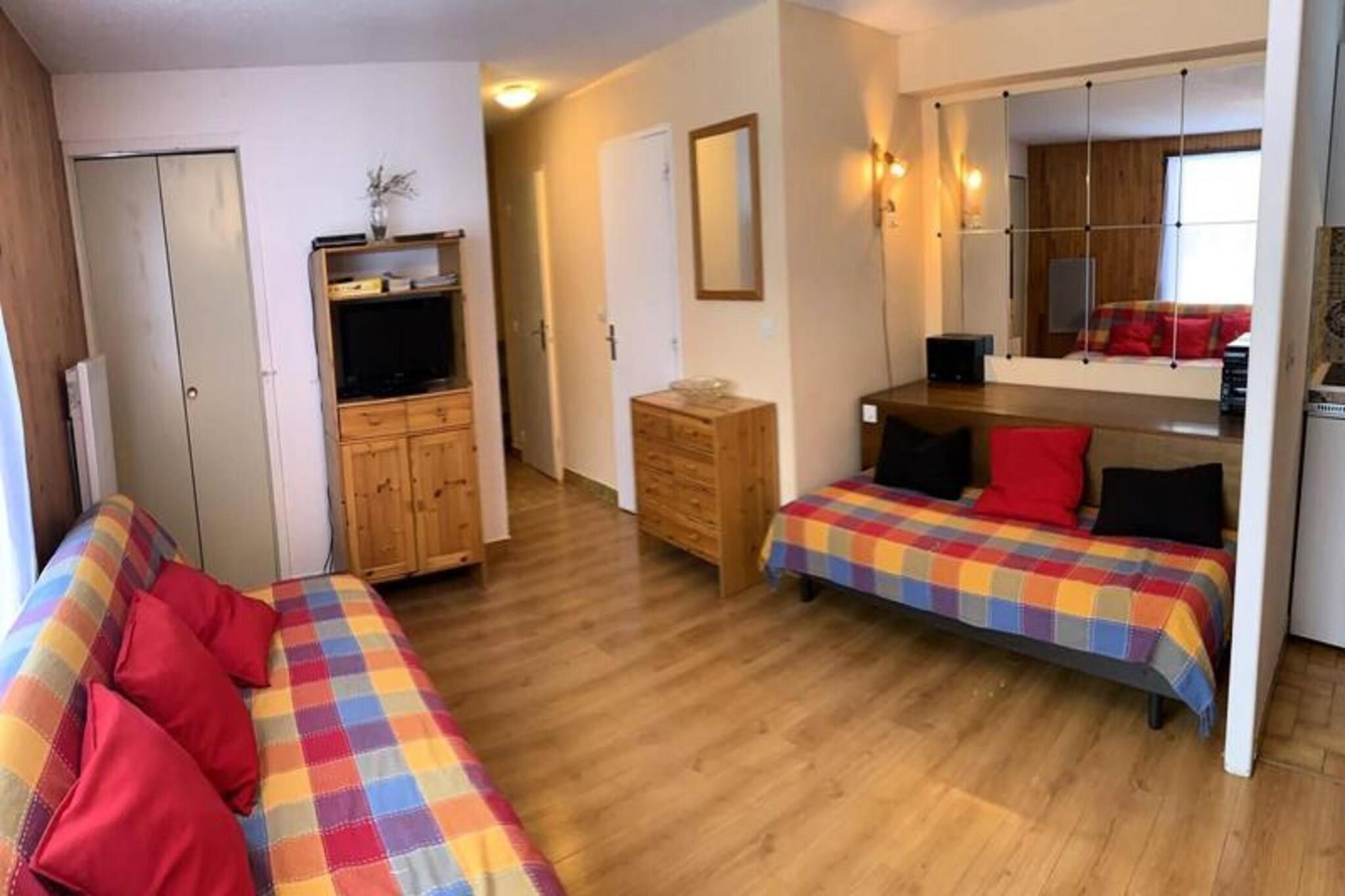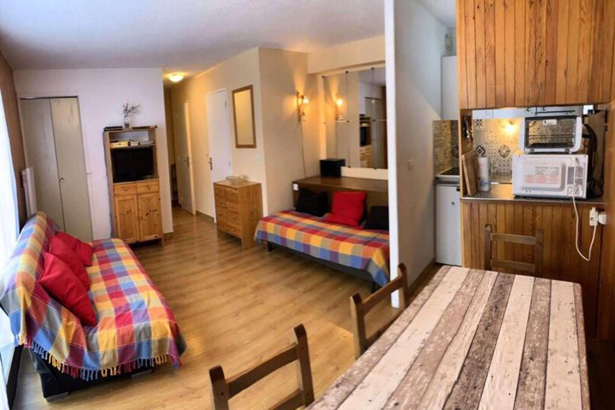 Ejendommen rummer sammen med sit hyggelige og funktionelle design komfortabelt op til 5 gæster. Det har en stue med to dobbelte sovesofaer og et bjerghjørne med en køjeseng, hvilket gør det velegnet til familier eller små grupper. Lejligheden har også en balkon, der tilbyder gæsterne et behageligt udendørsområde. Kæledyr er ikke nævnt, så ejendommen er muligvis ikke kæledyrsvenlig. Yderligere tjenester såsom booking af liftkort, leje af udstyr og skiundervisning kan arrangeres på forhånd, hvilket giver besparelser på op til 15%. Sengelinned og håndklæder medfølger ikke, men er tilgængelige mod et tillægsgebyr. Lejligheden er udstyret med væsentlige faciliteter såsom opvarmning og slutrengøring, hvilket sikrer et problemfrit ophold. Lejligheden ligger i hjertet af feriestedet Vars Les Claux og tilbyder direkte adgang til pisterne, hvilket gør den ideel for vintersportsentusiaster. Gæster kan drage fordel af nærheden til skilifte, hvilket sikrer nem adgang til skiløb og snowboard-aktiviteter. Det omkringliggende område er veludstyret med væsentlige faciliteter såsom butikker, restauranter og caféer. Ejendommen er også bekvemt beliggende nær transportmuligheder, hvilket giver nem adgang til lokale attraktioner, hvilket gør det til en god base for at udforske resortet. I nærheden kan gæster booke deres liftkort, leje udstyr og lektioner, hvilket strømliner deres ferieoplevelse. Lejligheden har et veludstyret køkken med komfur, mikroovn, kaffemaskine, køleskab og kedel, så gæsterne kan tilberede enkle måltider under deres ophold. Badeværelset er adskilt fra toilettet for ekstra bekvemmelighed. Selvom lejligheden byder på de basale fornødenheder til madlavning og komfort, giver den ikke ekstra luksus som en opvaskemaskine eller vaskemaskine. Inklusionen af ??slutrengøring er med til at sikre en ryddelig afgang, og varmeanlægget sørger for en varm og behagelig atmosfære under hele opholdet. Overordnet set tilbyder ejendommen en funktionel og behagelig ramme for en ferie i bjergene.