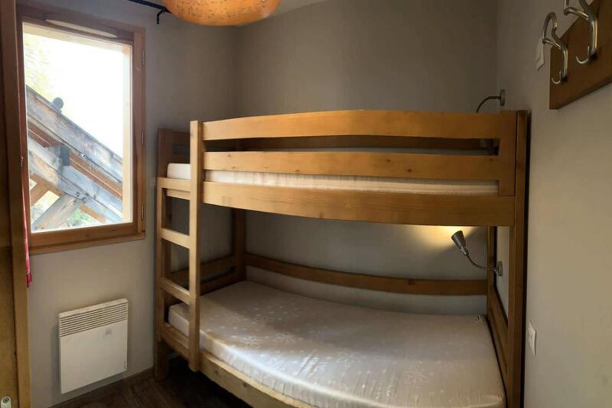 Denne 60 m² duplex 3-værelses lejlighed er beliggende i den prestigefyldte *Le Chalet des Rennes* bolig ved foden af ??pisterne i Fontbonne godset, og tilbyder bekvemmeligheder i topklasse. Lejligheden har plads til op til 6 personer og indeholder et master bedroom, et kabinehjørne med to køjesenge og et andet soveværelse med to enkeltsenge. Der er to badeværelser, det ene med vaskeskab og håndklædetørrer, og en rummelig stue/spisestue med en udtræksseng, alle mod syd med udgang til en balkon. Det fuldt udstyrede tekøkken åbner ud til stuen og giver et hyggeligt, funktionelt rum for gæsterne. Yderligere faciliteter i boligen omfatter et skirum, og gæsterne kan drage fordel af de bedste tilbud på skiundervisning, udstyr og skilifter, når de reserverer gennem ejendommen. Tjenester inkluderet er slutrengøring og opvarmning. Sengelinned og håndklæder medfølger ikke, men kan arrangeres mod et ekstra gebyr. Turistskatter og et kreditkort depositum vil blive opkrævet på stedet ved ankomsten.