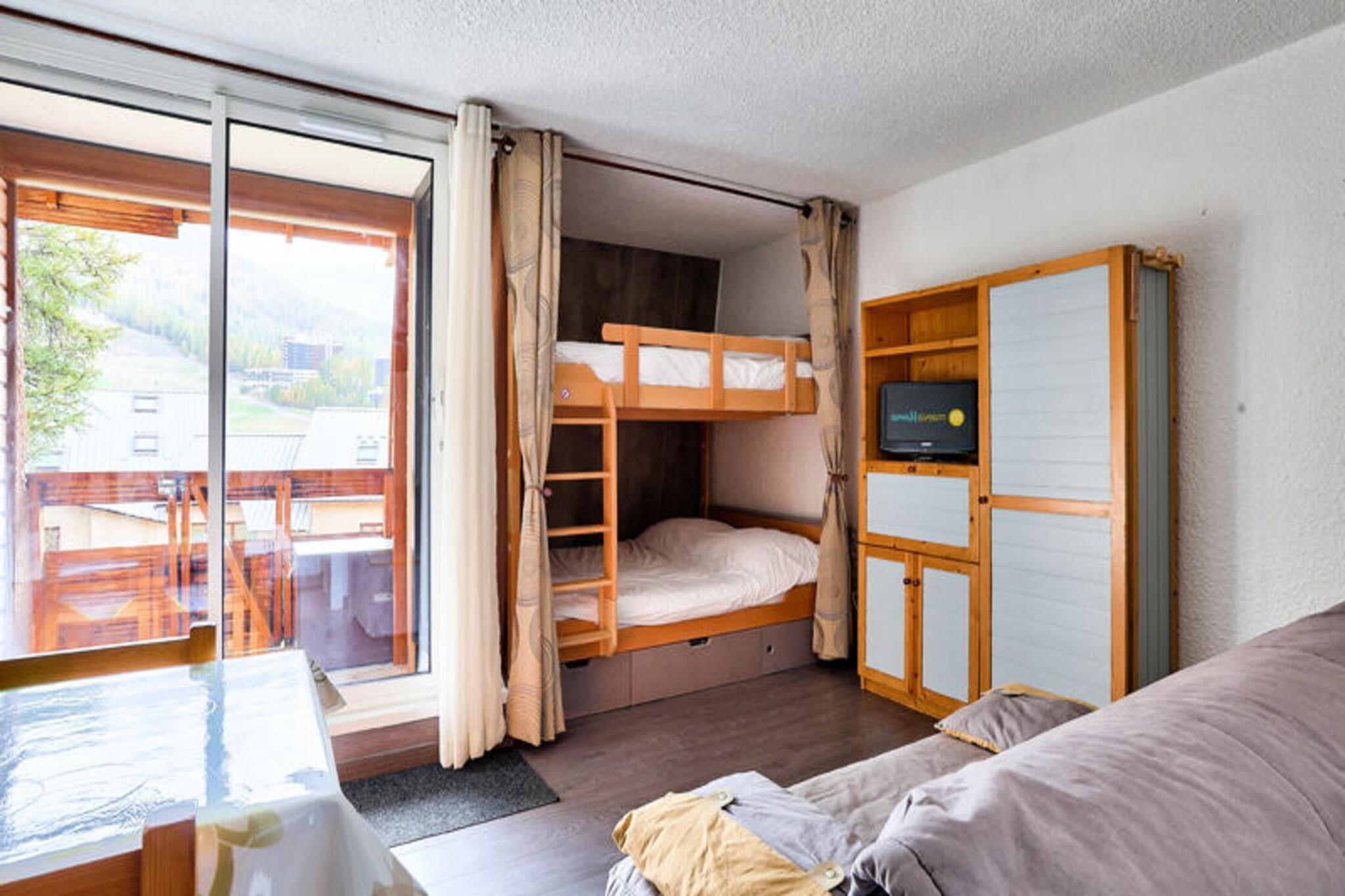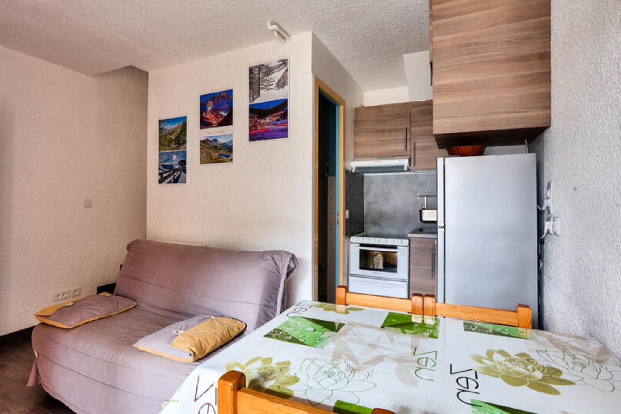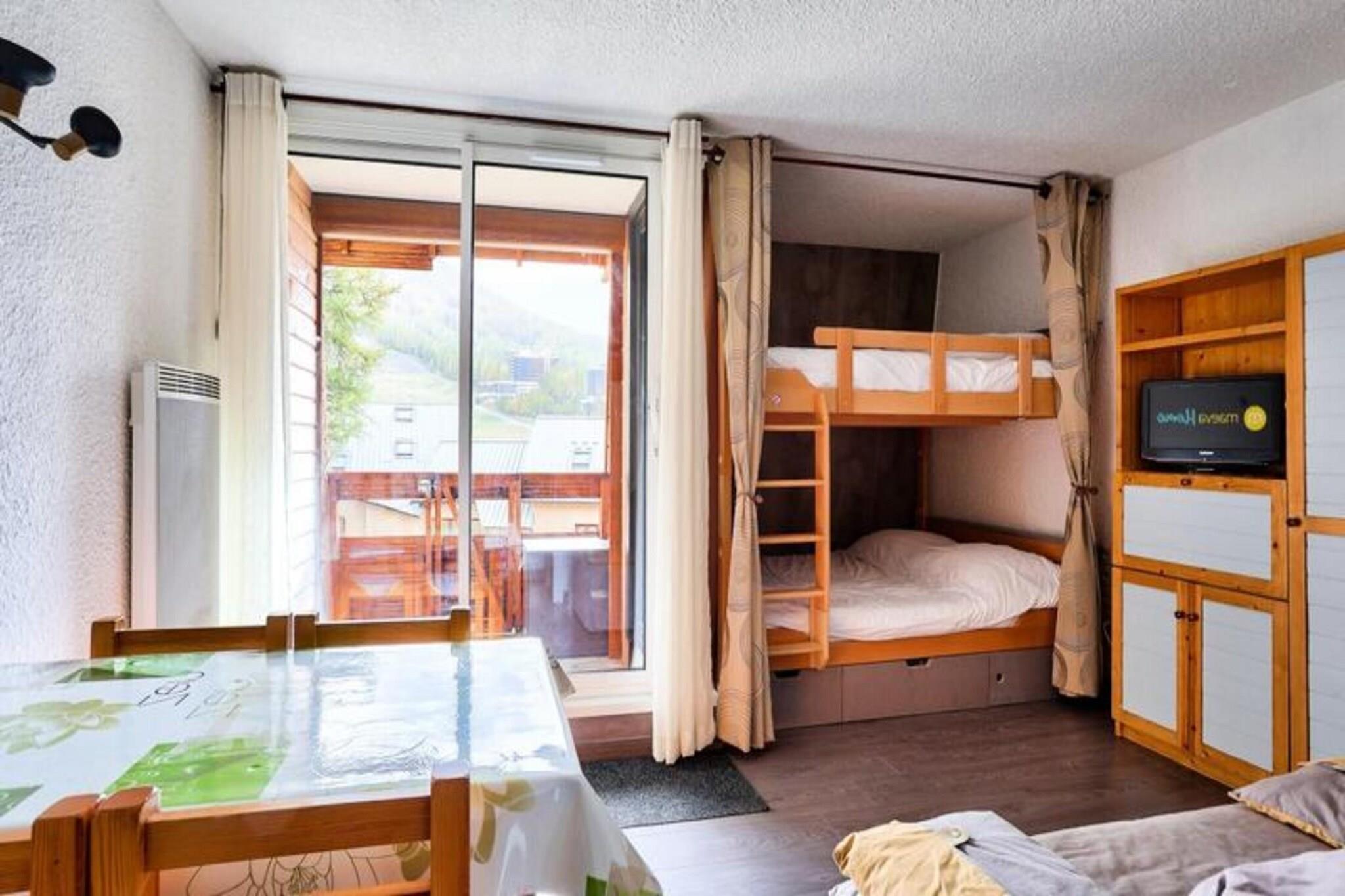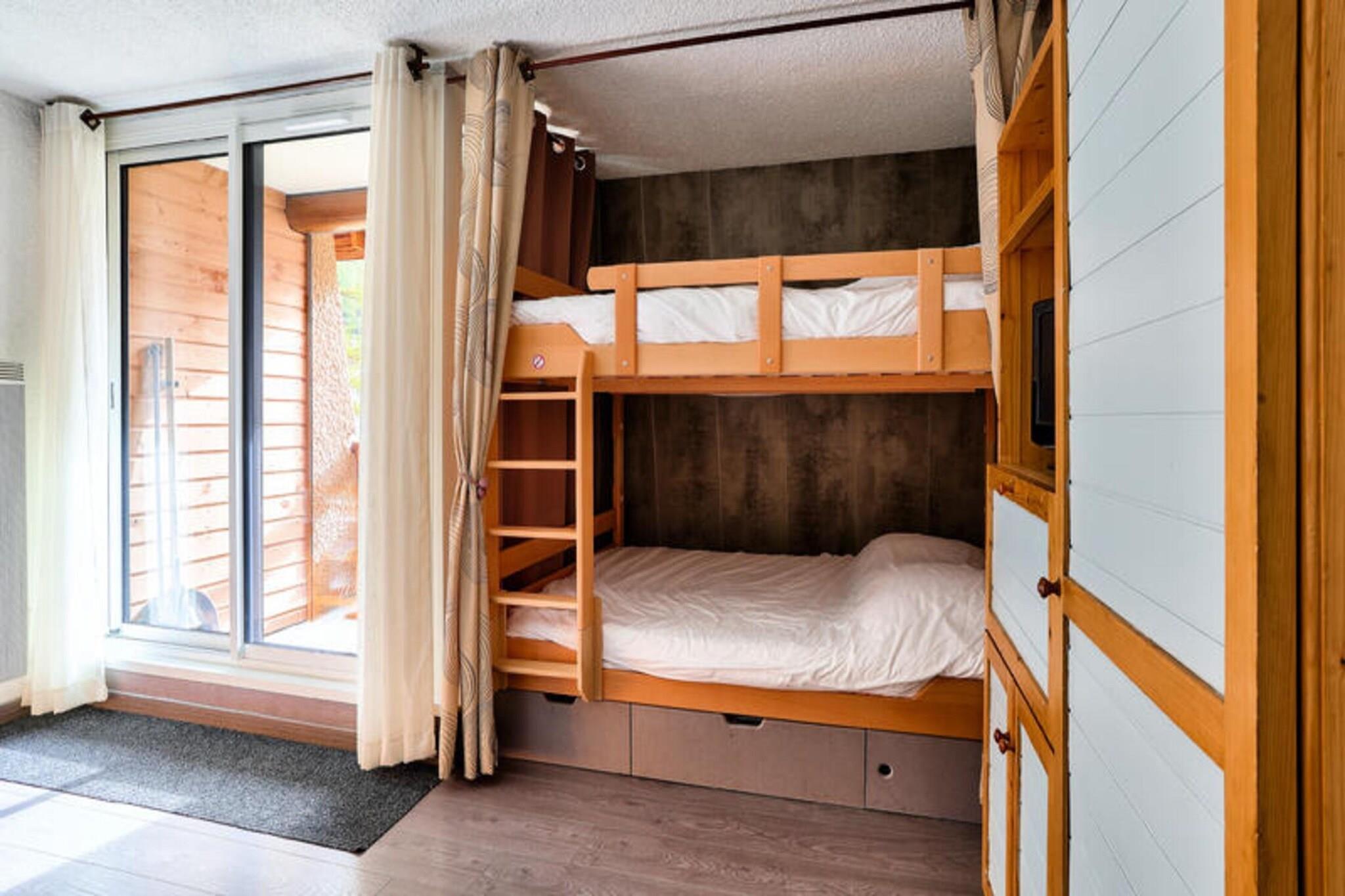 Ejendommen tilbyder sammen med sin hyggelige og praktiske indretning et behageligt ophold for op til 6 gæster. Lejligheden har en stue med en sofa til tre, et kabineområde med dobbeltsenge køjesenge og et badeværelse med separat toilet. Gæsterne kan nyde en privat sydvestvendt balkon, perfekt til at slappe af, mens de nyder den fantastiske udsigt over bjergene. Selvom kæledyr er tilladt mod et ekstra gebyr, inkluderer ejendommen ikke gratis aktiviteter. For ekstra bekvemmelighed kan gæster leje sengelinned, håndklæder og trådløs internetadgang mod et ekstra gebyr. Slutrengøring er obligatorisk og kan arrangeres ved ankomsten. Lejligheden er ideelt beliggende ved foden af ??pisterne, hvilket giver nem adgang til skiløb og udendørs aktiviteter. Det pulserende landsbycentrum ligger inden for gåafstand, med butikker, restauranter og barer mellem 100 og 500 meter væk. For dem, der ønsker at udforske ud over landsbyen, er forskellige attraktioner og rekreative aktiviteter også tilgængelige i nærheden. Lejlighedens beliggenhed sikrer, at gæsterne kan få mest muligt ud af både vinter- og sommerferier, med offentlige transportmuligheder til rådighed for nem rejse. Det veludstyrede køkken indeholder alt det nødvendige for selvforplejning, hvilket gør det ideelt for gæster, der foretrækker at tilberede deres egne måltider. Lejligheden har også opdateret interiør for at sikre komfort og bekvemmelighed under dit ophold. Yderligere faciliteter som en stikkontakt nær badeværelsesspejlet og rigelig opbevaringsplads forbedrer den samlede oplevelse. Selvom tjenester som Wi-Fi og sengetøj er tilgængelige mod et ekstra gebyr, udgør lejligheden en solid base for et mindeværdigt ophold, uanset om det er til et kort besøg eller længere ferie.