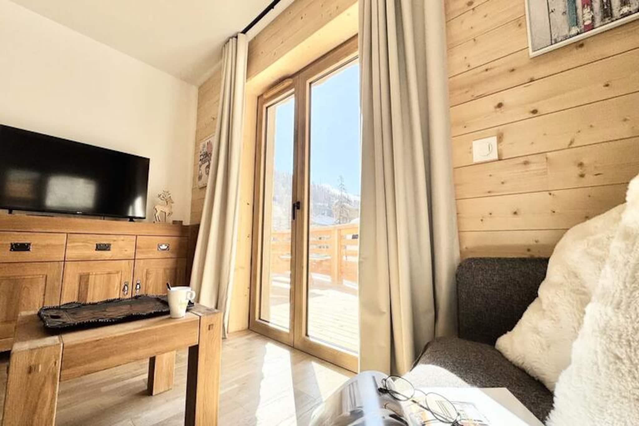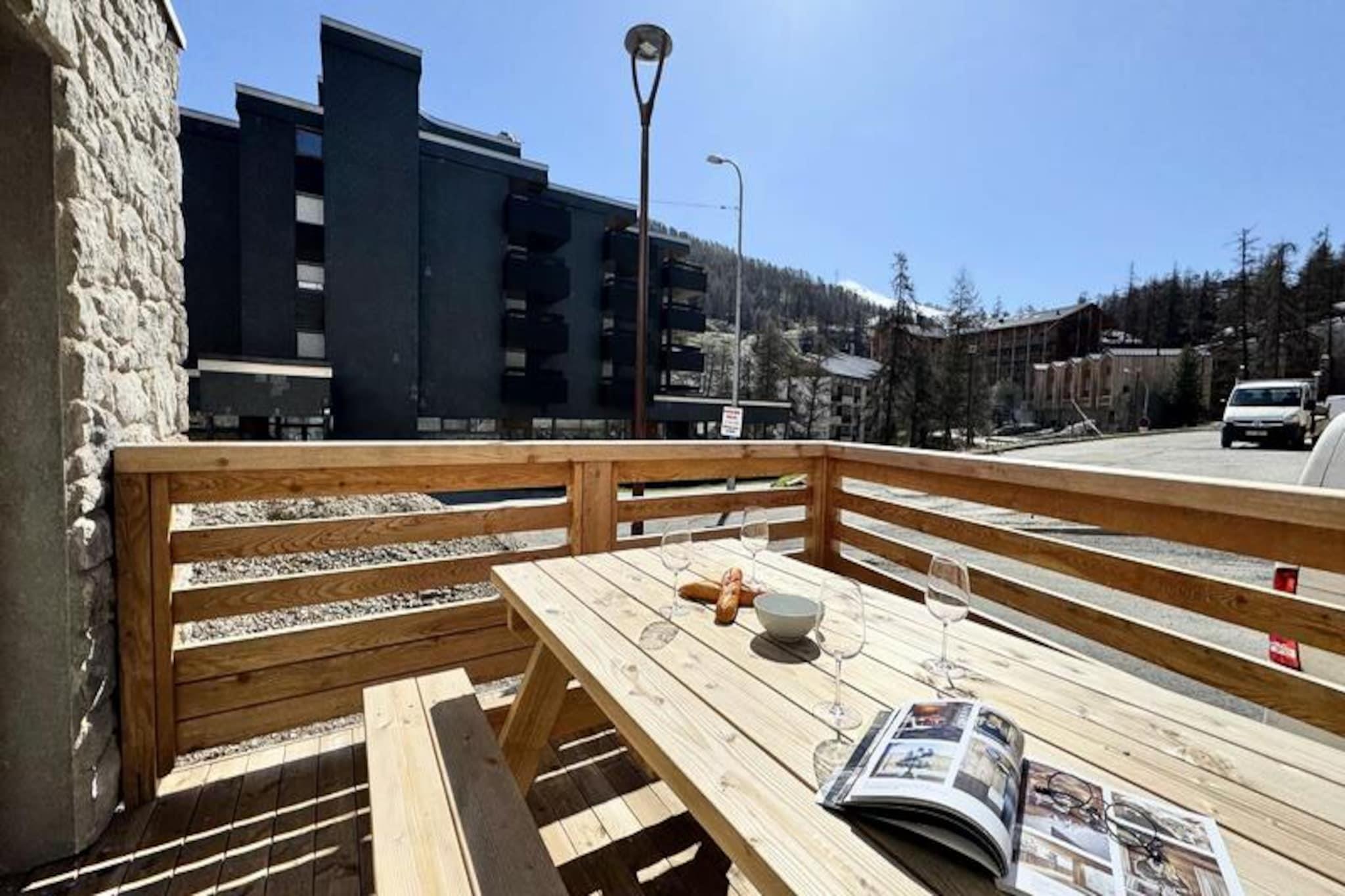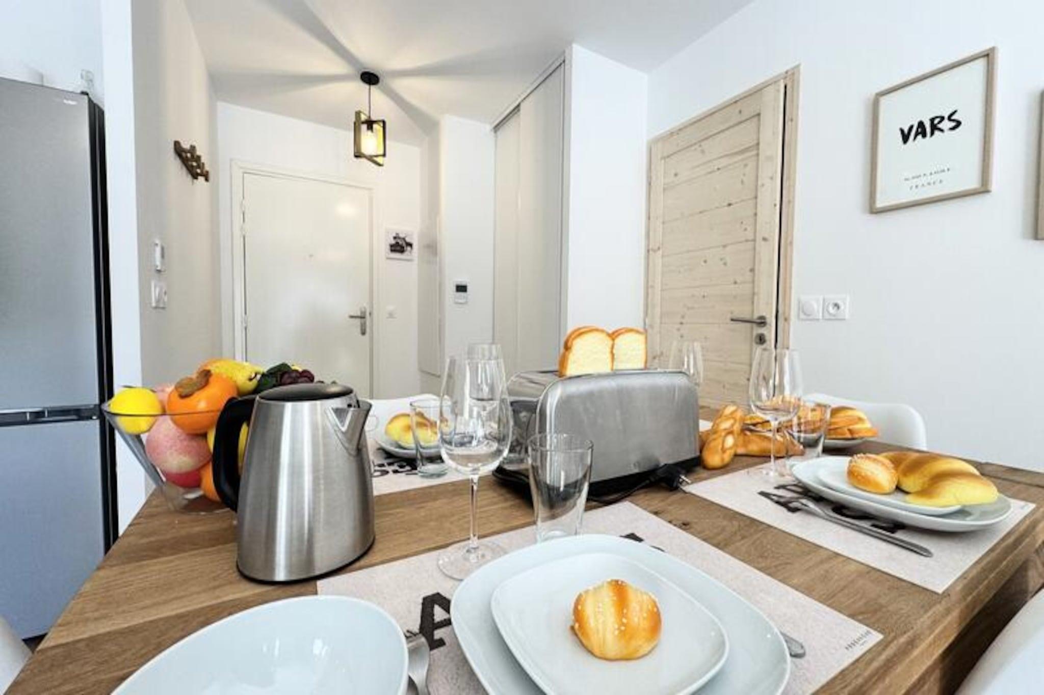 I det pulserende hjerte af Vars Les Claux tilbyder denne nybyggede bolig et exceptionelt alpint tilflugtssted kun få skridt fra butikkerne og blot 150 meter fra skiløjperne. Forestil dig at vågne op til den friske bjergluft og nyde det naturlige lys fra din sydøstvendte terrasse, mens de snedækkede tinder inviterer dig til at udforske. Uanset om du er her for vintersport eller sommervandreture, er denne moderne lejlighed din port til de franske alpers skønhed. \n\nIndenfor kan lejligheden prale af en rummelig og moderne stue udstyret med et tv, der er problemfrit forbundet med et åbent køkken. Køkkenet er en kokkes drøm med avancerede apparater såsom en Nespresso-kaffemaskine, juicer og opvaskemaskine, der sikrer, at hvert måltid er en fornøjelse at tilberede. Sovearrangementet er designet til ultimativ komfort, med et hyggeligt soveværelse med to 120 x 200 cm senge og et andet soveværelse med en luksuriøs 160 x 200 cm dobbeltseng. Et elegant badeværelse og separat toilet fuldender planløsningen, mens den private overdækkede parkeringsplads gør dit ophold mere bekvemt. \n\nResidensens førsteklasses beliggenhed placerer dig i nærheden af ??skiløjperne, hvilket gør den perfekt til ivrige skiløbere og friluftsentusiaster. Om sommeren tilbyder de omkringliggende stier og betagende landskaber uendelige muligheder for eventyr. Nærliggende butikker og restauranter sikrer, at du har alt, hvad du behøver, lige ved hånden, mens Vars charme tilføjer et strejf af magi til din ferie. \n\nMed sengelinned inkluderet, opredte senge ved ankomst og slutrengøring garanterer denne lejlighed et problemfrit og mindeværdigt ophold. Uanset om du søger spændende dage på pisterne eller rolige aftener i bjergene, er denne ejendom dit ideelle hjem væk fra hjemmet i Vars Les Claux.