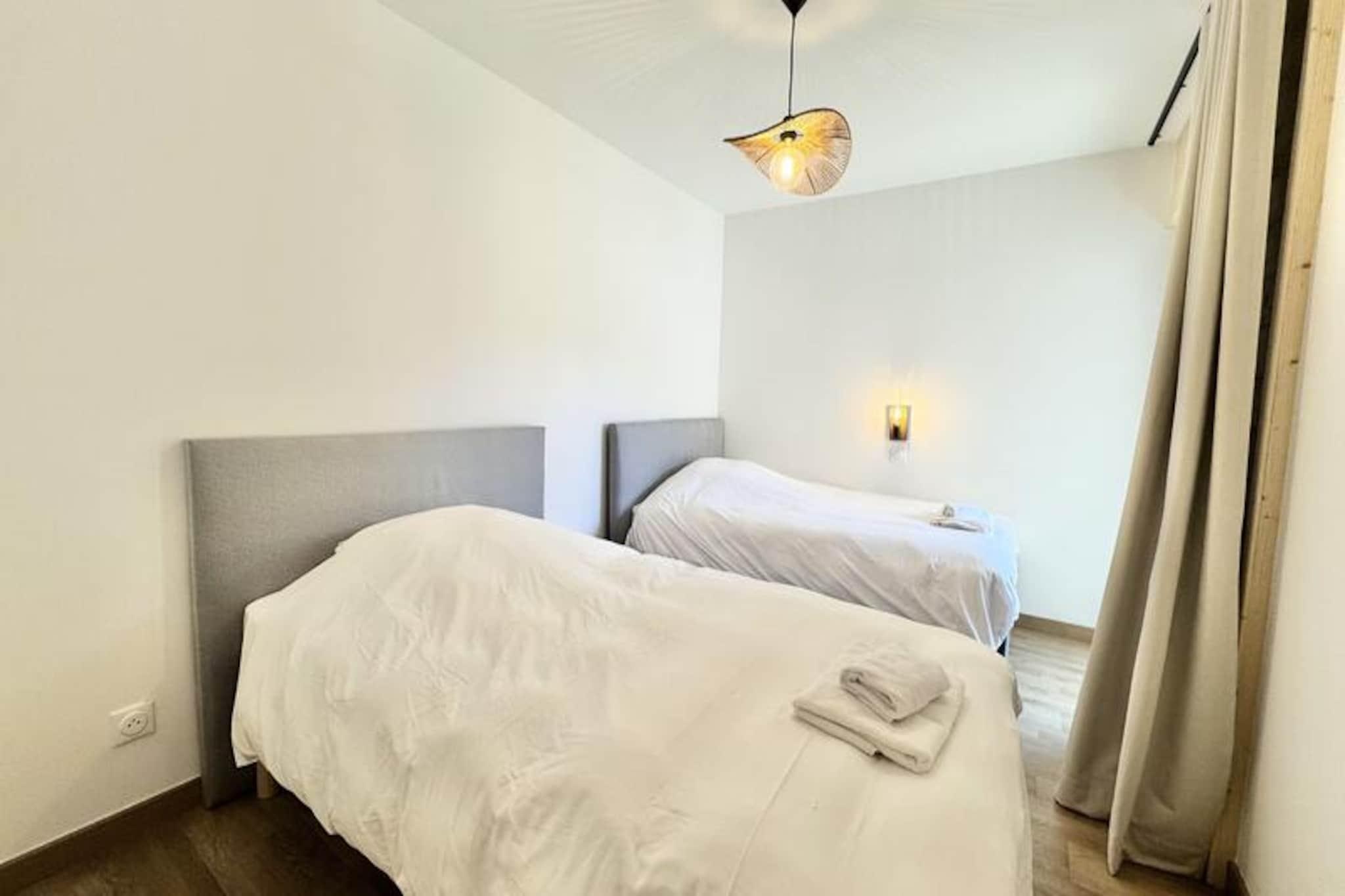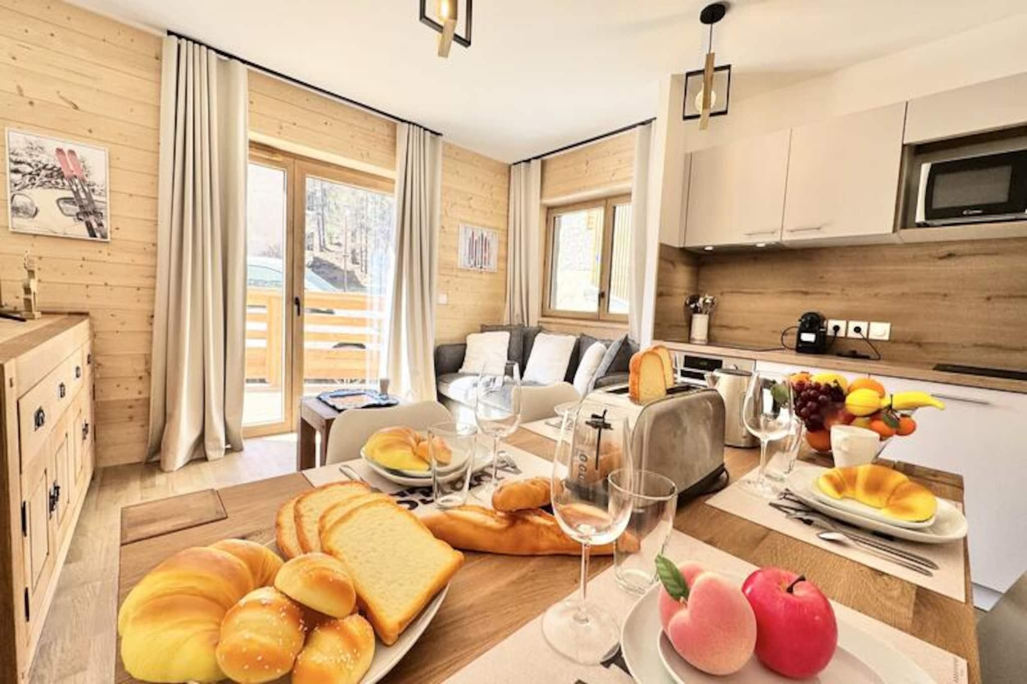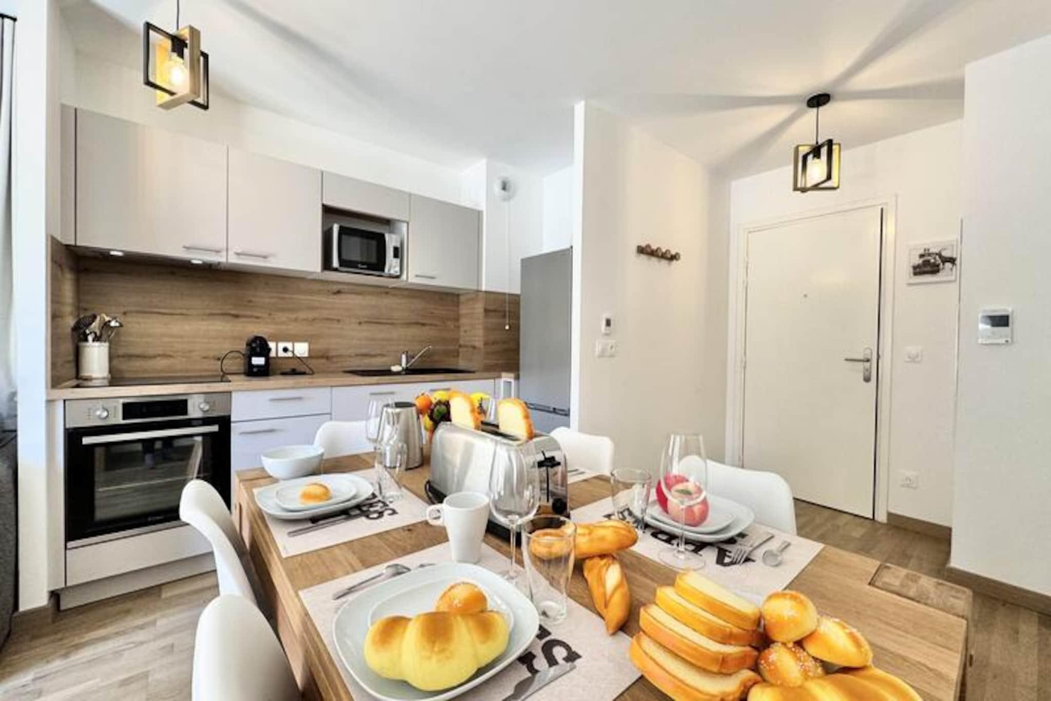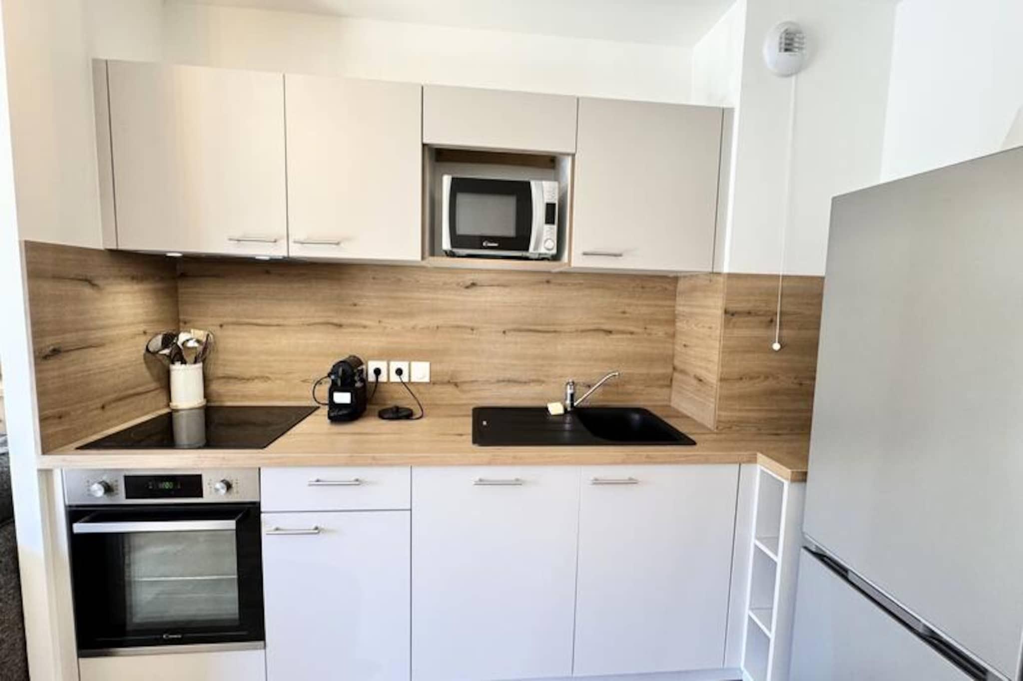 I det pulserende hjerte af Vars Les Claux tilbyder denne nybyggede bolig et exceptionelt alpint tilflugtssted kun få skridt fra butikkerne og blot 150 meter fra skiløjperne. Forestil dig at vågne op til den friske bjergluft og nyde det naturlige lys fra din sydøstvendte terrasse, mens de snedækkede tinder inviterer dig til at udforske. Uanset om du er her for vintersport eller sommervandreture, er denne moderne lejlighed din port til de franske alpers skønhed. \n\nIndenfor kan lejligheden prale af en rummelig og moderne stue udstyret med et tv, der er problemfrit forbundet med et åbent køkken. Køkkenet er en kokkes drøm med avancerede apparater såsom en Nespresso-kaffemaskine, juicer og opvaskemaskine, der sikrer, at hvert måltid er en fornøjelse at tilberede. Sovearrangementet er designet til ultimativ komfort, med et hyggeligt soveværelse med to 120 x 200 cm senge og et andet soveværelse med en luksuriøs 160 x 200 cm dobbeltseng. Et elegant badeværelse og separat toilet fuldender planløsningen, mens den private overdækkede parkeringsplads gør dit ophold mere bekvemt. \n\nResidensens førsteklasses beliggenhed placerer dig i nærheden af ??skiløjperne, hvilket gør den perfekt til ivrige skiløbere og friluftsentusiaster. Om sommeren tilbyder de omkringliggende stier og betagende landskaber uendelige muligheder for eventyr. Nærliggende butikker og restauranter sikrer, at du har alt, hvad du behøver, lige ved hånden, mens Vars charme tilføjer et strejf af magi til din ferie. \n\nMed sengelinned inkluderet, opredte senge ved ankomst og slutrengøring garanterer denne lejlighed et problemfrit og mindeværdigt ophold. Uanset om du søger spændende dage på pisterne eller rolige aftener i bjergene, er denne ejendom dit ideelle hjem væk fra hjemmet i Vars Les Claux.