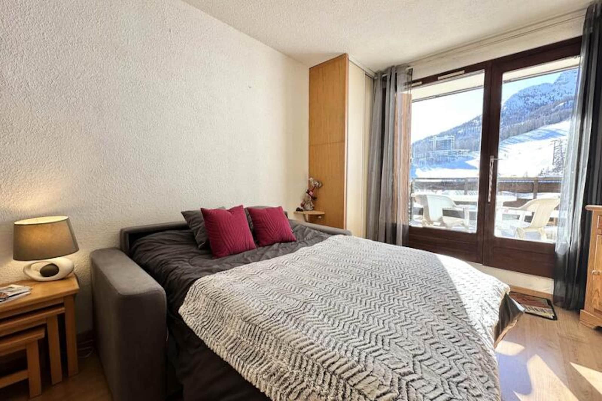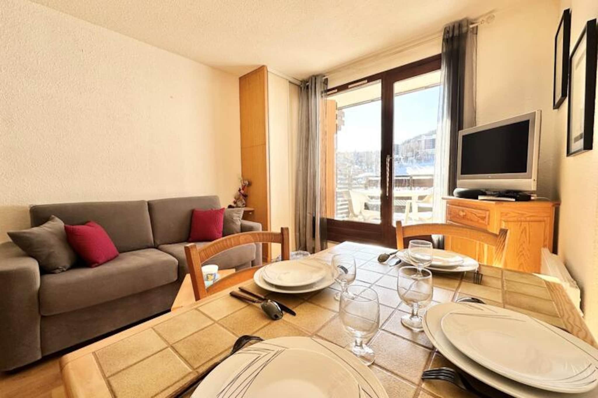 I hjertet af den charmerende alpelandsby Vars tilbyder denne dejlige lejlighed et perfekt tilflugtssted for dem, der søger en ski-in, ski-out-oplevelse. Kun få skridt fra Chabrière-liften og Mayts-stoleliften finder du dig selv ubesværet forbundet med de vidtstrakte pister i skiområdet Forêt Blanche. Lejlighedens sydlige beliggenhed sikrer, at sollyset strømmer ind i rummet og skaber en varm og indbydende atmosfære til din bjergferie. Med centrum af feriestedet og snefronten kun en kort gåtur væk, er alt hvad du behøver lige ved hånden. Lejligheden er designet til at rumme op til fire gæster og har en hyggelig opholdsstue med en komfortabel 140 cm sovesofa og en sovekrog udstyret med to 90 cm køjesenge. Det fuldt udstyrede køkken med ovn, mikrobølgeovn, køleskab, opvaskemaskine og Senseo-kaffemaskine gør det nemt at tilberede solide måltider efter en dag på pisterne. Et privat badeværelse og separat toilet bidrager til bekvemmeligheden, mens den udendørs spiseplads tilbyder et roligt sted at slappe af og nyde den betagende udsigt over bjergene. Beliggende kun 20 meter fra turistkontoret og lokale butikker, og 250 meter fra udstillingsstedet med en swimmingpool, er beliggenheden ideel til både eventyr og afslapning. Uanset om du er på pisterne, udforsker landsbyen eller blot nyder den alpine atmosfære, er denne lejlighed din indgang til et uforglemmeligt ophold i Vars. Med yderligere tjenester såsom reservation af skiudstyr og skikort tilgængelige gennem Forêt Blanche-bureauet, bliver din ferie endnu mere problemfri. Oplev den perfekte blanding af komfort, praktisk anvendelighed og bjergcharme i denne idylliske alpine ferie.