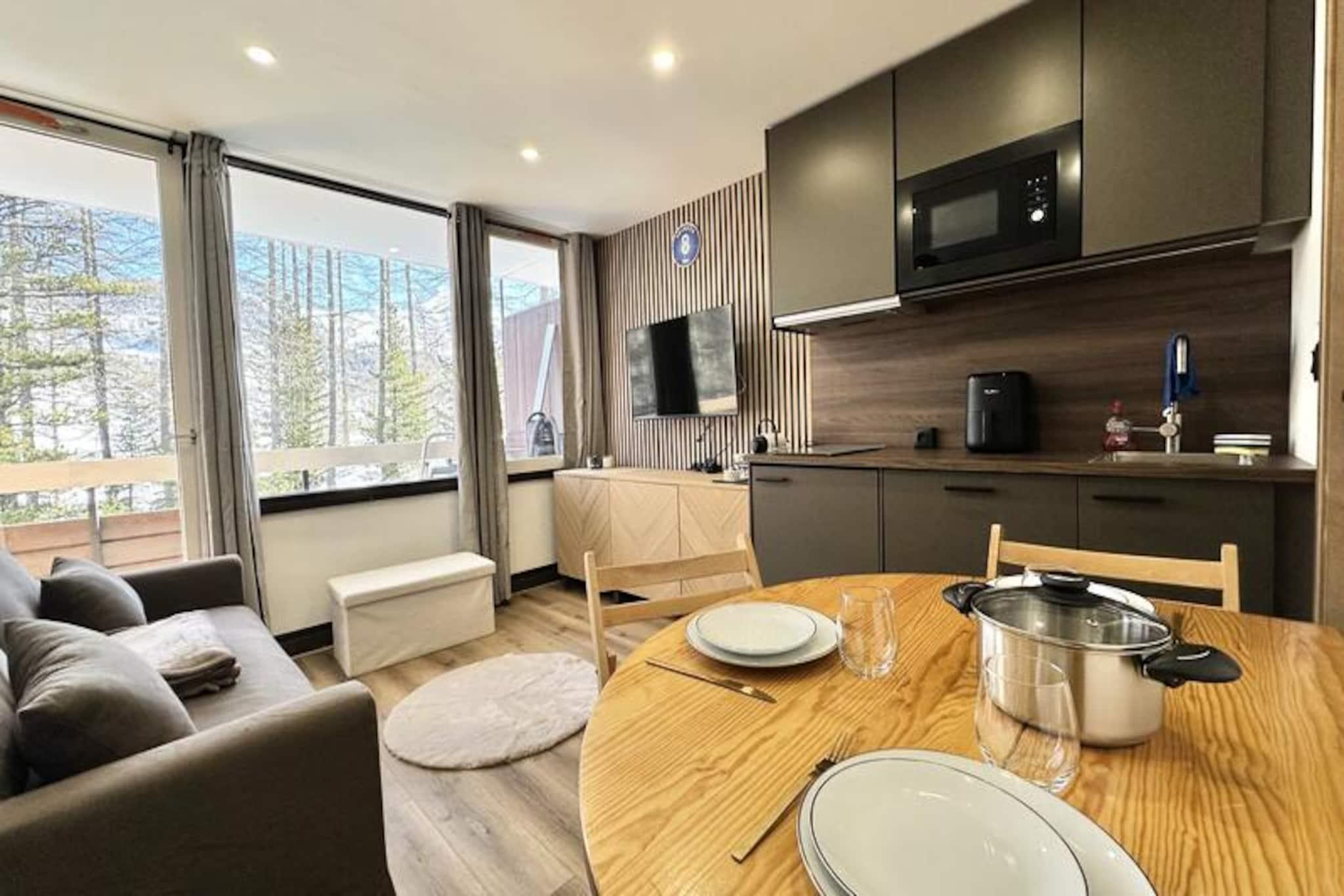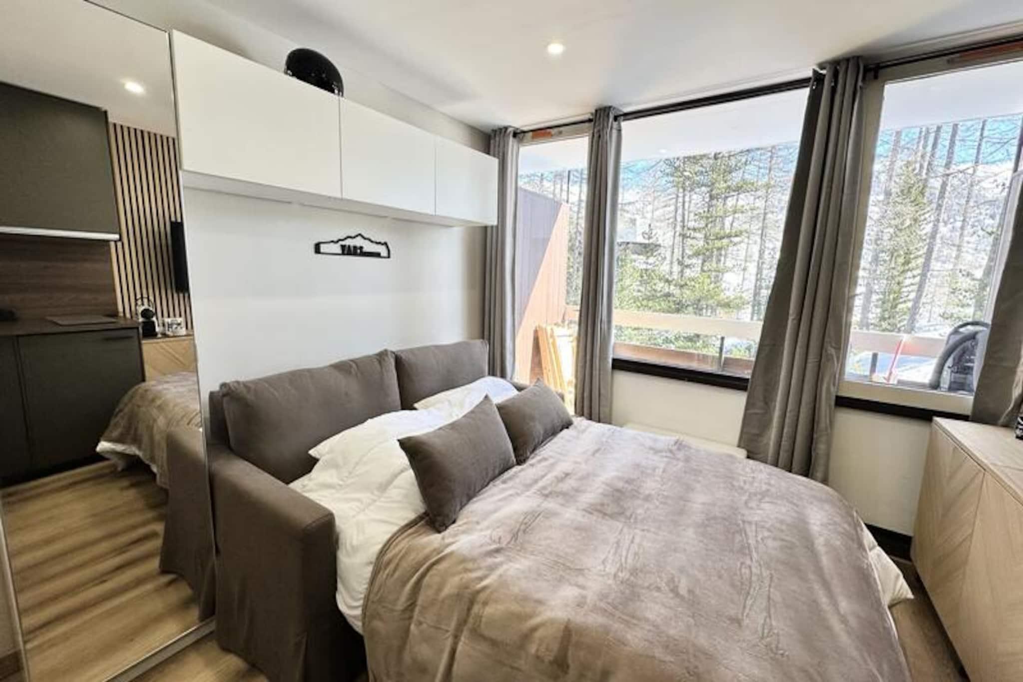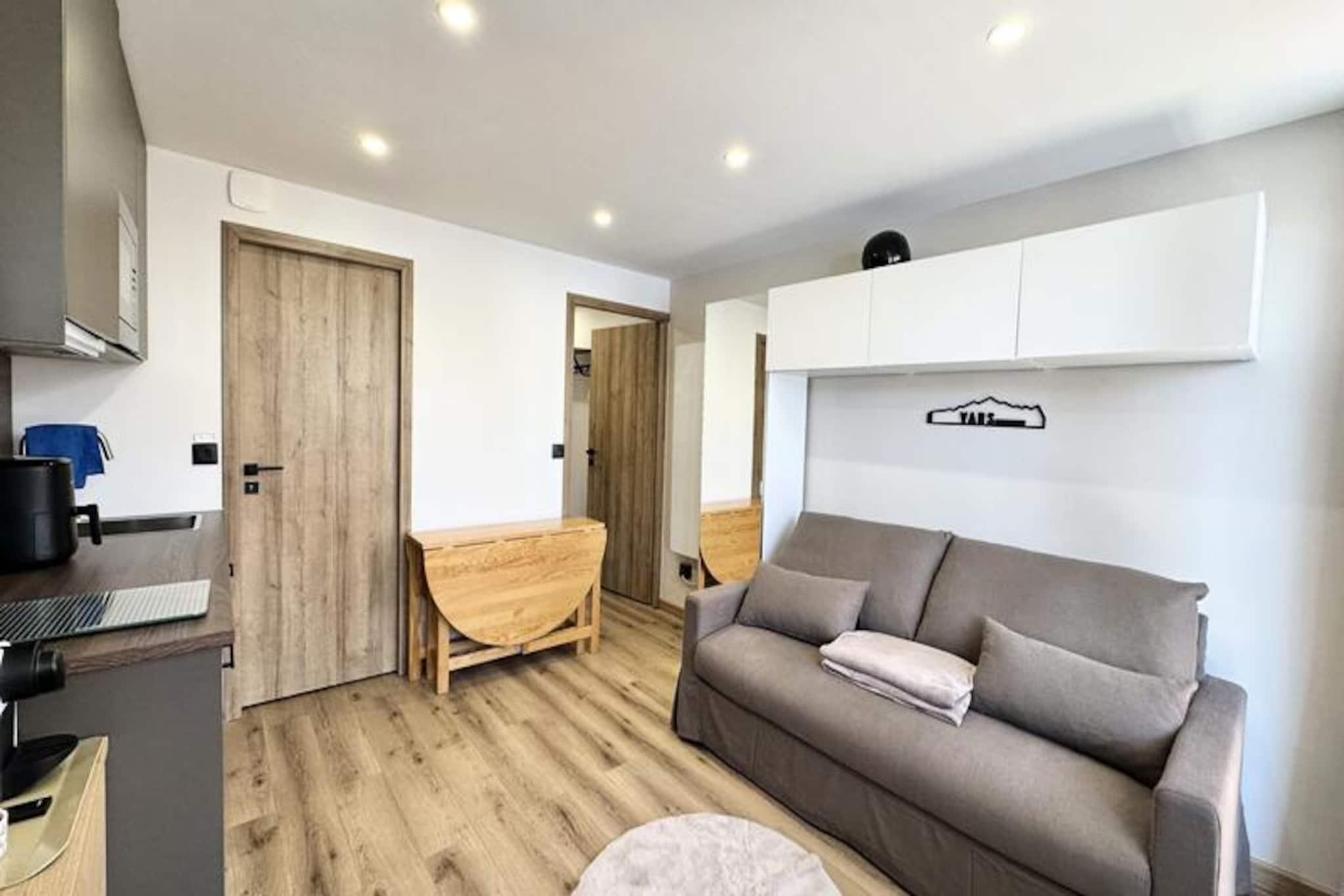 Hvor den alpine luft bærer en hvisken af ??eventyr, inviterer dette charmerende studie dig til en rolig bjergflugt i Plateau du Fournet-området i Vars Les Claux. Med direkte adgang til den grønne piste 'Chemin des Italiens' begynder morgenen med spændingen ved skiløb lige uden for døren. Omgivet af lærketræer og badet i blødt, naturligt lys fra sin østvendte beliggenhed tilbyder studiets balkon et roligt sted at indånde den friske bjergluft og beundre de franske alpers skønhed. Uanset om du søger vinterspænding eller sommervandreture, placerer denne bolig dig i hjertet af det hele. \n\nStudioet er designet til at rumme op til fire gæster og er omhyggeligt møbleret med en 140 cm sovesofa og to 90 cm køjesenge, hvilket skaber et hyggeligt tilflugtssted efter en dag med udforskning. Den lyse opholdsstue er udstyret med moderne bekvemmeligheder, herunder et tv og et fuldt udstyret køkken med en Nespresso-kaffemaskine, Airfryer, kombineret mikrobølgeovn, opvaskemaskine og køleskab. Det elegant indrettede badeværelse med håndklædetørrer og hårtørrer sikrer afslapning og komfort efter dine alpine eventyr. Der er et skiskab til rådighed for nemheds skyld, mens parkering er reserveret til bygningens beboere.\n\nBeliggende kun 200 meter fra butikker og tæt på kælkebanen, der er åben hele året, tilbyder denne studiolejlighed den perfekte blanding af tilgængelighed og ro. Uanset om du er her for at klatre på pisterne, udforske bjergstier eller blot slappe af midt i naturen, lover denne bolig et uforglemmeligt ophold i et fredet alpint miljø. Kæledyr er velkomne, og ejendommen er strengt røgfri, hvilket sikrer et rent og behageligt miljø for alle gæster. Lad bjergene omfavne dig i deres tidløse skønhed og skabe minder, du vil værdsætte for evigt.