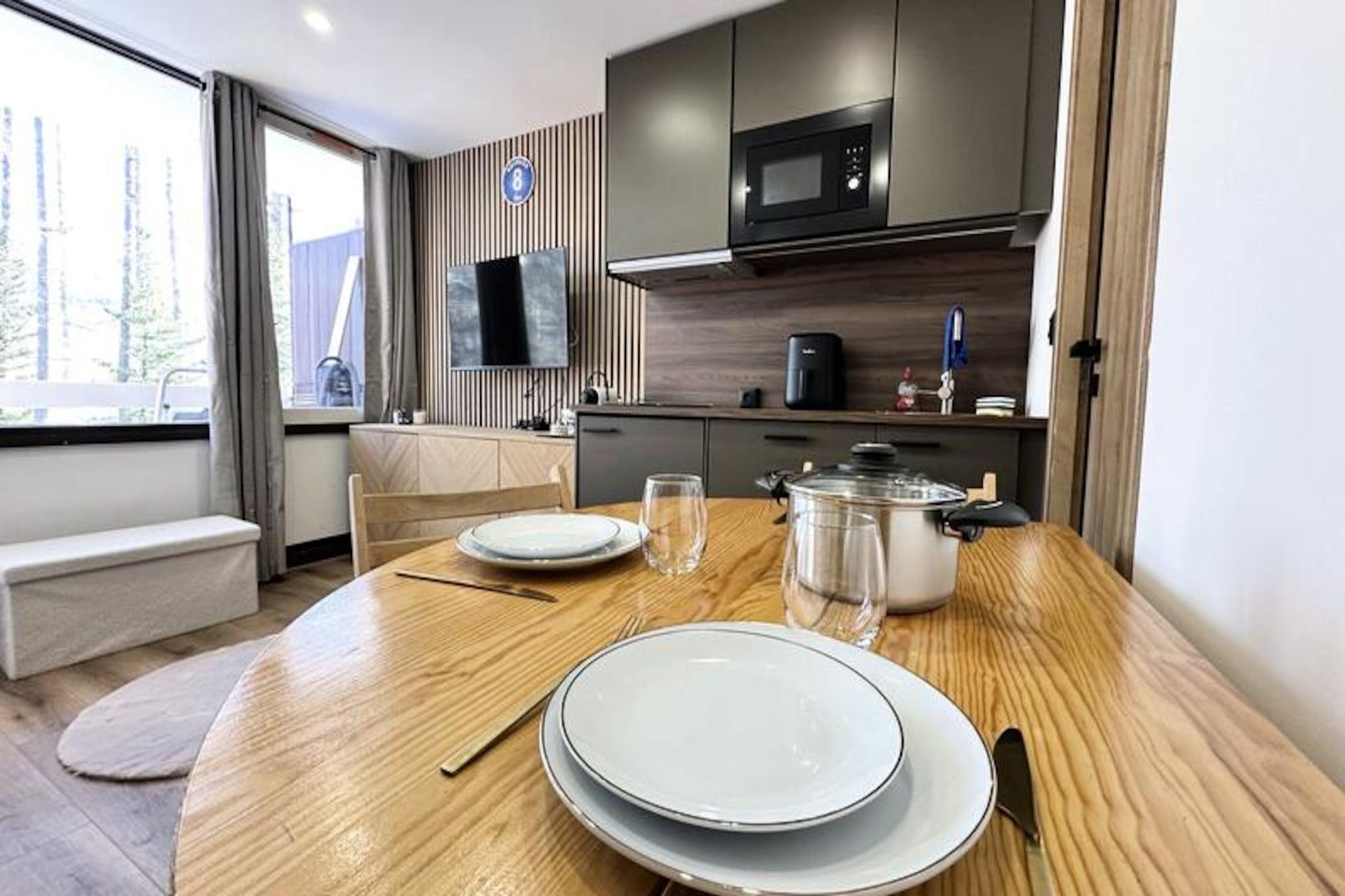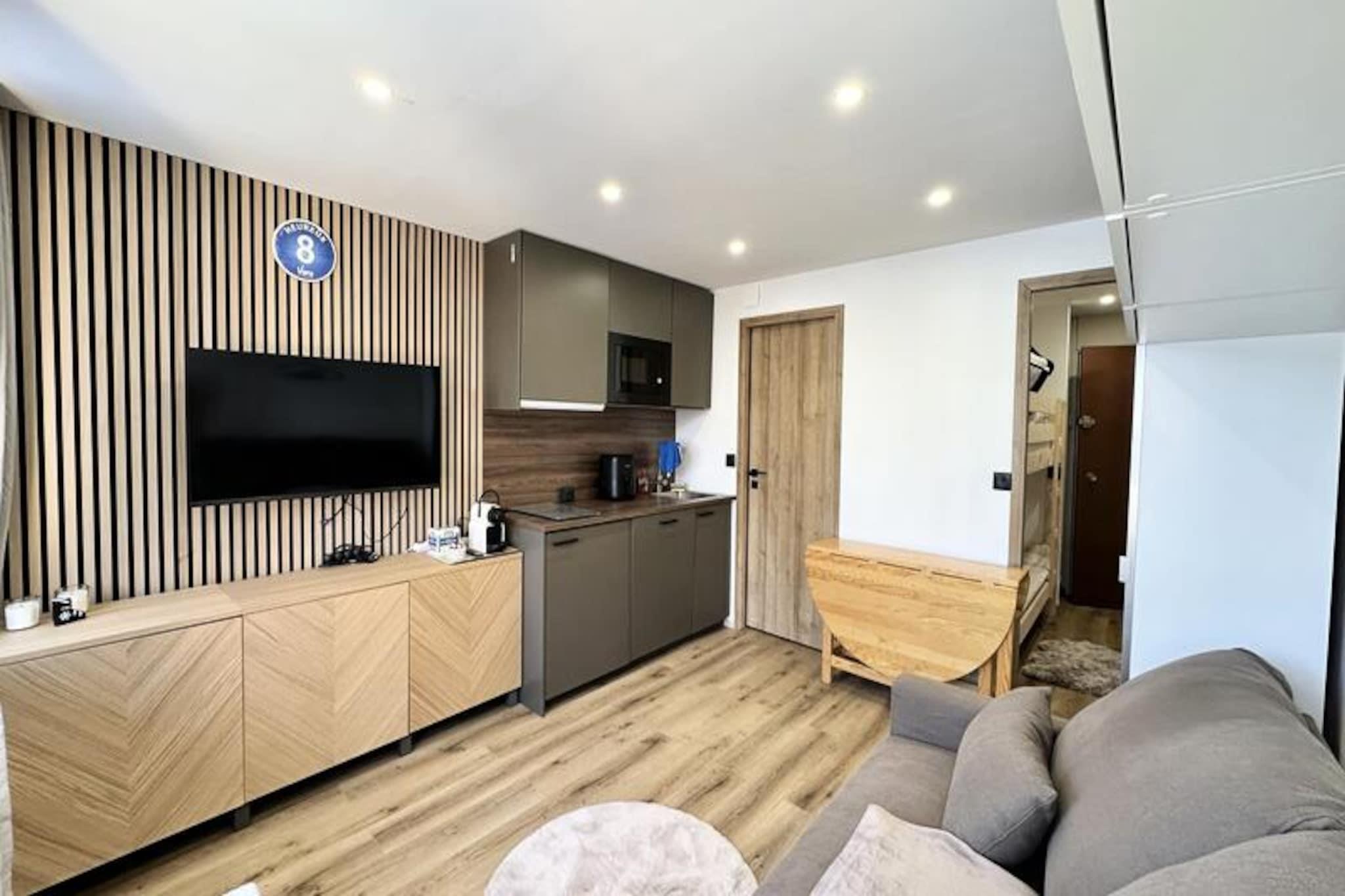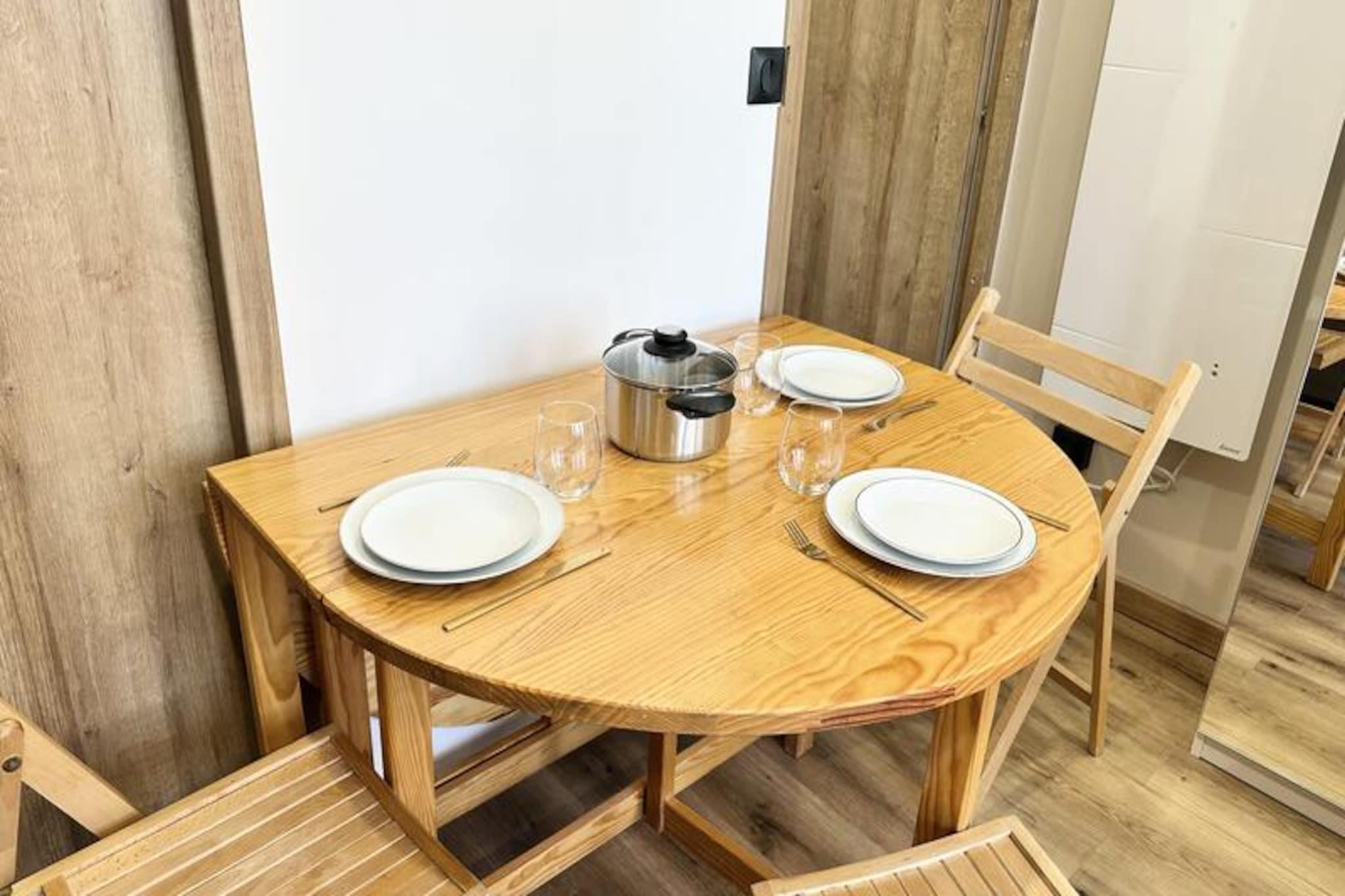 Hvor den alpine luft bærer en hvisken af ??eventyr, inviterer dette charmerende studie dig til en rolig bjergflugt i Plateau du Fournet-området i Vars Les Claux. Med direkte adgang til den grønne piste 'Chemin des Italiens' begynder morgenen med spændingen ved skiløb lige uden for døren. Omgivet af lærketræer og badet i blødt, naturligt lys fra sin østvendte beliggenhed tilbyder studiets balkon et roligt sted at indånde den friske bjergluft og beundre de franske alpers skønhed. Uanset om du søger vinterspænding eller sommervandreture, placerer denne bolig dig i hjertet af det hele. \n\nStudioet er designet til at rumme op til fire gæster og er omhyggeligt møbleret med en 140 cm sovesofa og to 90 cm køjesenge, hvilket skaber et hyggeligt tilflugtssted efter en dag med udforskning. Den lyse opholdsstue er udstyret med moderne bekvemmeligheder, herunder et tv og et fuldt udstyret køkken med en Nespresso-kaffemaskine, Airfryer, kombineret mikrobølgeovn, opvaskemaskine og køleskab. Det elegant indrettede badeværelse med håndklædetørrer og hårtørrer sikrer afslapning og komfort efter dine alpine eventyr. Der er et skiskab til rådighed for nemheds skyld, mens parkering er reserveret til bygningens beboere.\n\nBeliggende kun 200 meter fra butikker og tæt på kælkebanen, der er åben hele året, tilbyder denne studiolejlighed den perfekte blanding af tilgængelighed og ro. Uanset om du er her for at klatre på pisterne, udforske bjergstier eller blot slappe af midt i naturen, lover denne bolig et uforglemmeligt ophold i et fredet alpint miljø. Kæledyr er velkomne, og ejendommen er strengt røgfri, hvilket sikrer et rent og behageligt miljø for alle gæster. Lad bjergene omfavne dig i deres tidløse skønhed og skabe minder, du vil værdsætte for evigt.