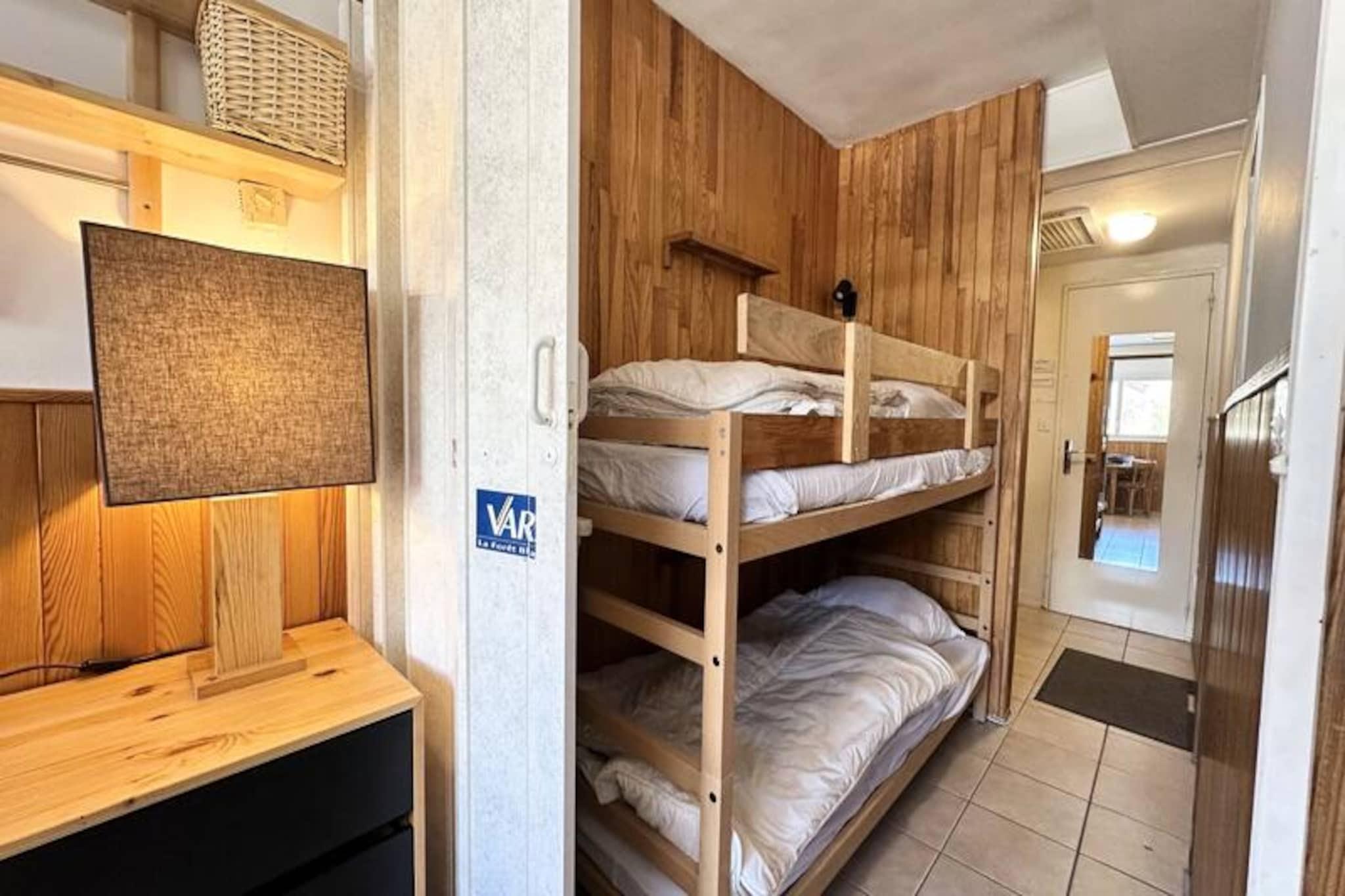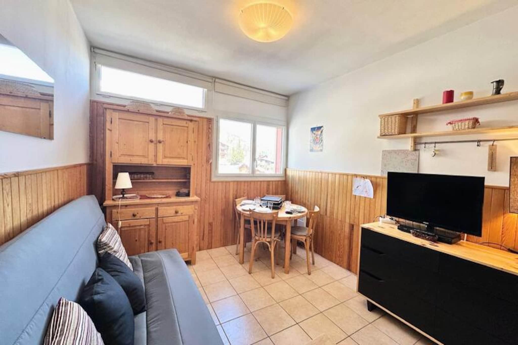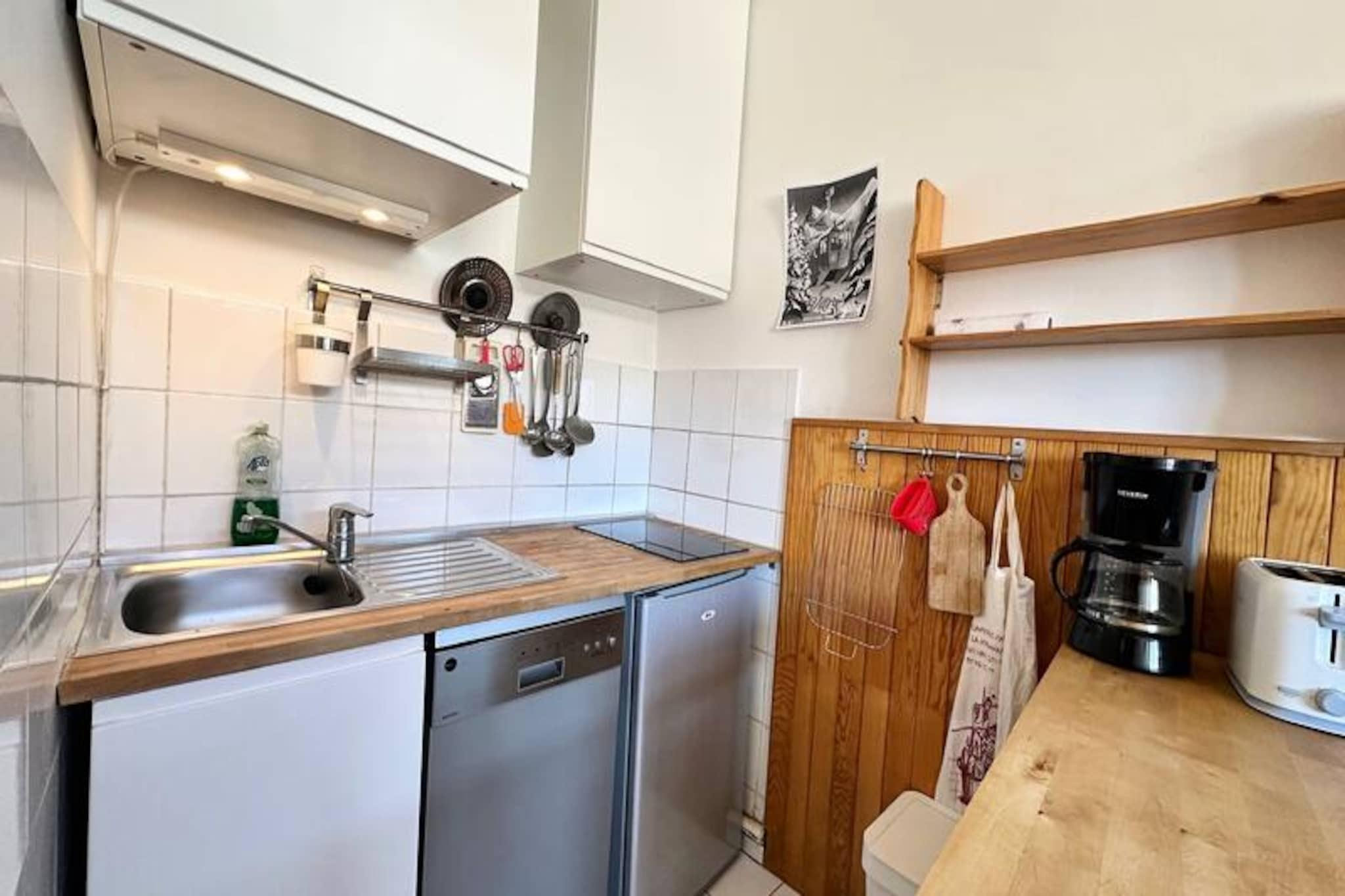 I hjertet af det pulserende Vars Les Claux tilbyder denne charmerende studiolejlighed det perfekte alpine tilflugtssted for både familier og par. Kun få skridt fra snefronten og turistkontoret placerer denne ejendom dig i centrum af al action, samtidig med at den sikrer et hyggeligt og komfortabelt ophold. Forestil dig at vågne op til den friske bjergluft, gribe dine ski fra det dedikerede skirum og straks tage direkte til pisterne. Bekvemmeligheden ved nærliggende butikker, restauranter og resortfaciliteter gør dette til en uovertruffen beliggenhed til din bjergferie. Indenfor er lejligheden omhyggeligt designet til at maksimere komfort og funktionalitet. Det veludstyrede køkken inkluderer en filterkaffemaskine, brødrister, opvaskemaskine, køleskab, keramisk kogeplade og endda en raclette og stengrill til de hyggelige alpine aftener. Opholdsstuen har en sovesofa (140 cm), mens sovekrogen tilbyder to enkeltkøjesenge, perfekt til børn. Et moderne badeværelse med toilet og et fjernsyn i stuen bidrager til bekvemmeligheden og sikrer en afslappende oplevelse efter en dag med eventyr. Vars Les Claux er et paradis for friluftsentusiaster med direkte adgang til pisterne i skiområdet Forêt Blanche. Udover skiløb tilbyder feriestedet en række aktiviteter, lige fra sneskovandring til afterskiing. Om sommeren forvandles regionen til et paradis for vandrere og mountainbikere med stier, der snor sig gennem betagende alpine landskaber. Uanset om du er her for spændingen ved pisterne eller roen i bjergene, er denne lejlighed den perfekte base for at skabe uforglemmelige minder i de franske alper.