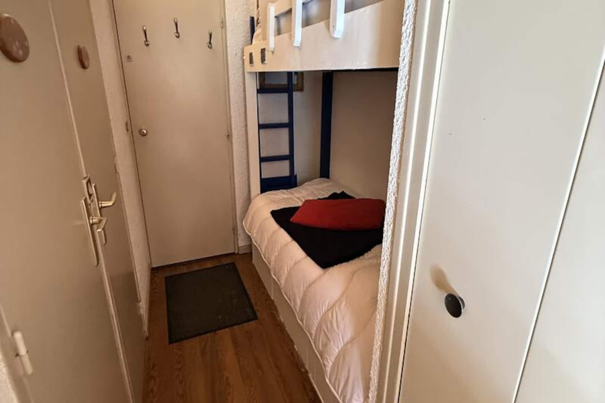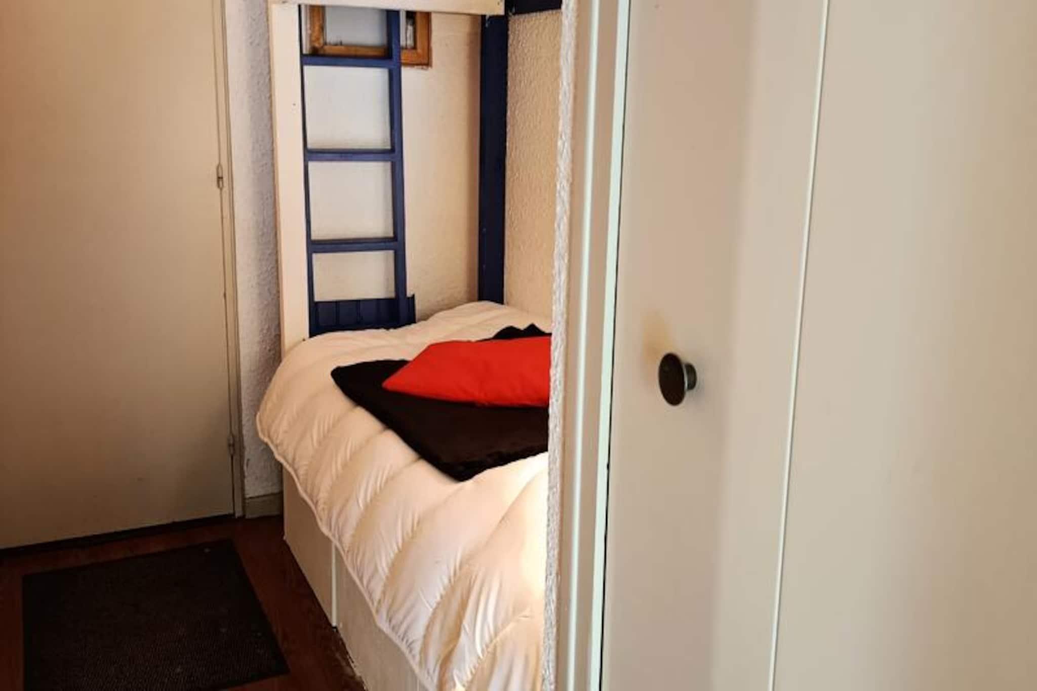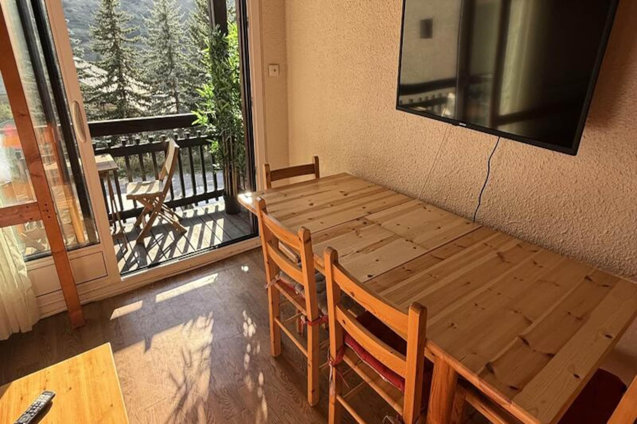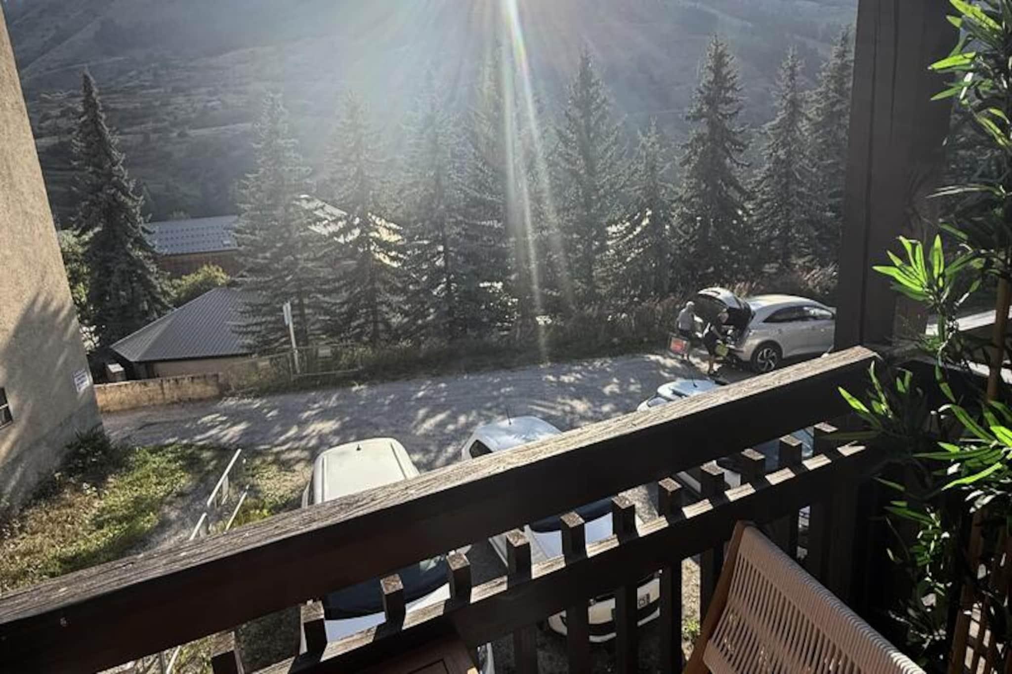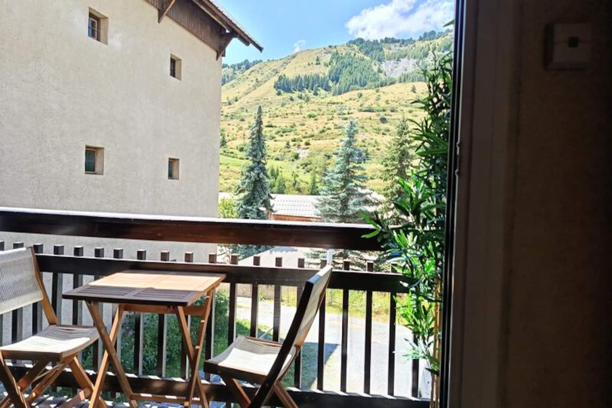 I hjertet af den charmerende landsby Sainte-Marie tilbyder denne dejlige lejlighed et hyggeligt tilflugtssted for din bjergferie. Omgivet af de franske alpers fredfyldte skønhed inviterer boligen dig til at vågne op til frisk alpeluft og en fantastisk udsigt fra din private balkon. Uanset om du er her for at stå på ski, vandre eller blot slappe af, sikrer beliggenheden, at du altid er tæt på begivenhederne, mens du nyder en fredelig landsbystemning. Det nærliggende Sherpa-supermarked og lokale restauranter gør det nemt at fordybe dig i regionens smag og kultur. \n\nLejligheden er designet til at rumme 4 til 6 gæster og kan prale af et lyst og indbydende opholdsrum på første sal. Indretningen inkluderer en komfortabel stue med sovesofa og køjesenge, en sovealkove med ekstra køjesenge, et fuldt udstyret køkken og et moderne badeværelse med separat toilet. Skiboksen er ekstra bekvemmelighed for vintersportsentusiaster, mens den fælles terrasse giver et solrigt sted at slappe af efter en dag med eventyr. Denne enkle, men funktionelle bolig er perfekt til familier eller små grupper, der søger en problemfri alpin flugt. \n\nBare 500 meter fra skilifterne Sainte-Marie og Bois Noir har du nem adgang til pisterne. Om sommeren forvandles området til et paradis for vandrere og naturelskere med stier, der snor sig gennem betagende landskaber. Landsbyens centrum, kun få skridt væk, tilbyder butikker, aktiviteter og et turistinformationspunkt, der kan hjælpe dig med at planlægge dit ophold. \n\nUanset om du jagter puddersne om vinteren eller udforsker frodige stier om sommeren, er denne lejlighed den ideelle base for at skabe uforglemmelige minder i hjertet af Alperne. Lad charmen ved Sainte-Marie og bekvemmeligheden ved denne bolig gøre din ferie virkelig speciel.