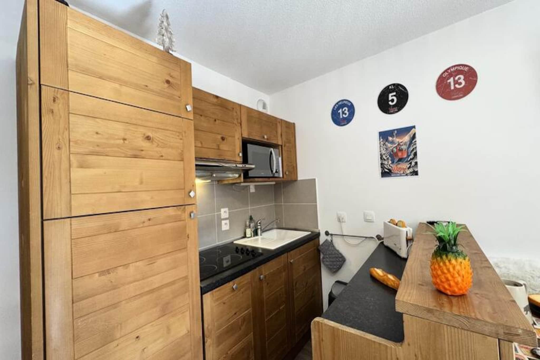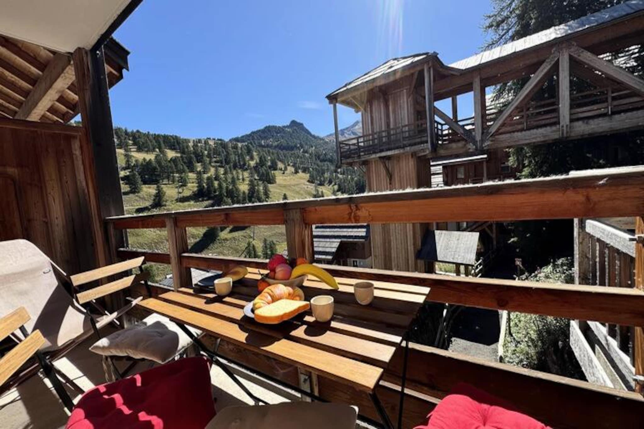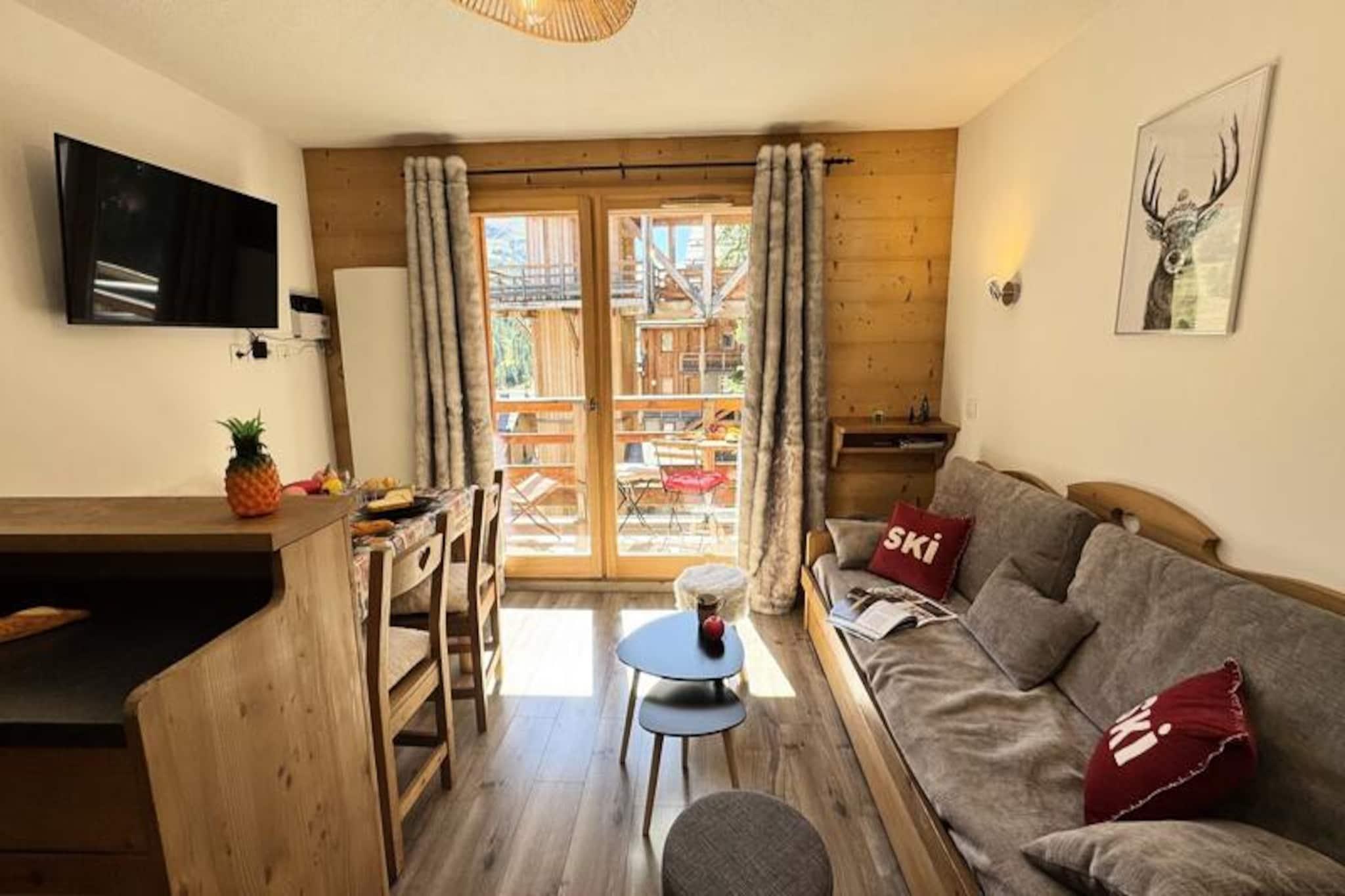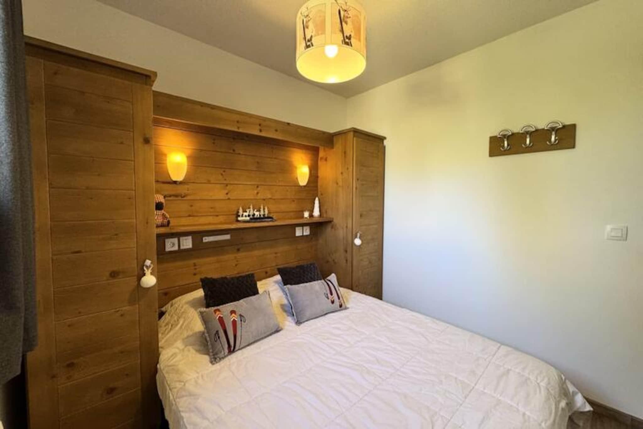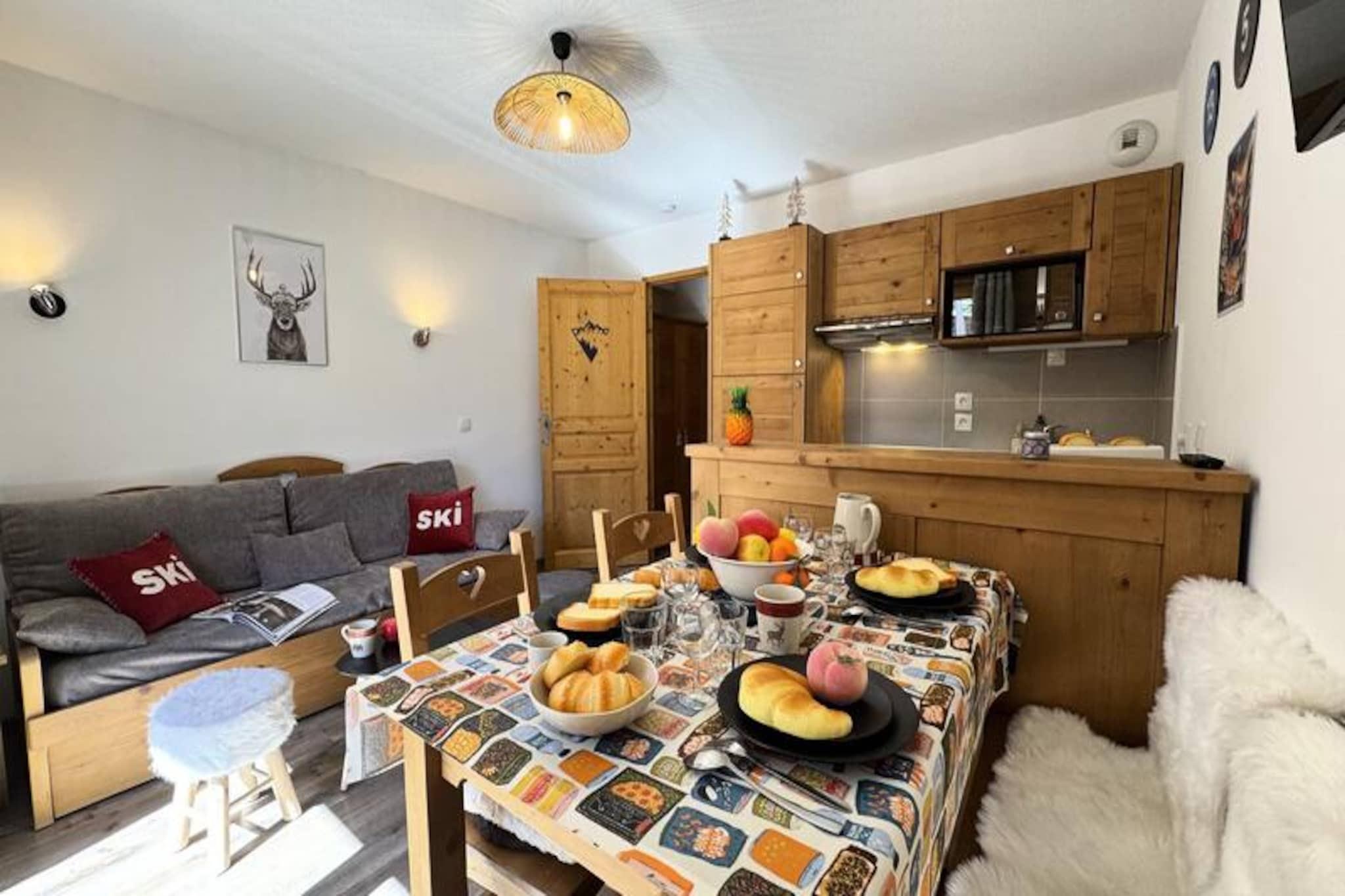 Højt over Vars' maleriske skråninger tilbyder residensen Hameau des Rennes et roligt alpint tilflugtssted, hvor charme og komfort blandes ubesværet. Denne dejlige landsby, beliggende ved foden af ??Fontbonne-stoleliften, giver direkte adgang til pisterne for erfarne skiløbere via en central elevator, hvilket gør den til et paradis for vintersportsentusiaster. Om sommeren forvandles residensen til en rolig oase med både indendørs og udendørs swimmingpools, der inviterer gæsterne til at slappe af midt i et betagende bjerglandskab. Uanset om du er her for snefyldte eventyr eller solrige vandreture, lover omgivelserne uforglemmelige øjeblikke i hjertet af Alperne. \n\nLejligheden, der er designet til op til fire gæster, kan prale af et varmt og lyst opholdsrum, der åbner ud til en solrig balkon. Forestil dig at starte din dag med morgenmad med udsigt over det majestætiske alpine landskab eller at dele en hyggelig middag efter at have udforsket stierne. Det åbne køkken er fuldt udstyret med moderne apparater, herunder opvaskemaskine, Nespresso-maskine, raclette-grill og mere, hvilket sikrer, at hvert måltid er en fornøjelse at tilberede. Et dobbeltværelse med en blød 160x200 cm seng og et fjernsyn, samt en sovesofa i stuen, der kan laves om til to separate sovepladser, giver komfort og fleksibilitet for familier eller venner, der rejser sammen. Badeværelset, komplet med håndklædetørrer og hårtørrer, samt et separat toilet, bidrager til lejlighedens bekvemmelighed.\n\nBeliggende kun 200 meter fra butikker, restauranter og skiudlejning, og betjent af en gratis shuttlebus hvert 15.-20. minut, tilbyder boligen nem adgang til alle faciliteterne i Vars Les Claux. Uanset om du er på pisterne, nyder sommerpoolene eller udforsker den charmerende landsby, er alt hvad du behøver inden for rækkevidde. Bemærk venligst, at swimmingpoolen er lukket i lavsæsonen og genåbner i sommeren 2025 efter reparationer.\n\nMed sit skirum, private parkeringsplads og uovertrufne beliggenhed er denne lejlighed den perfekte base for at skabe dyrebare minder i de franske alper. Book dit ophold i dag og oplev magien ved bjerglivet.