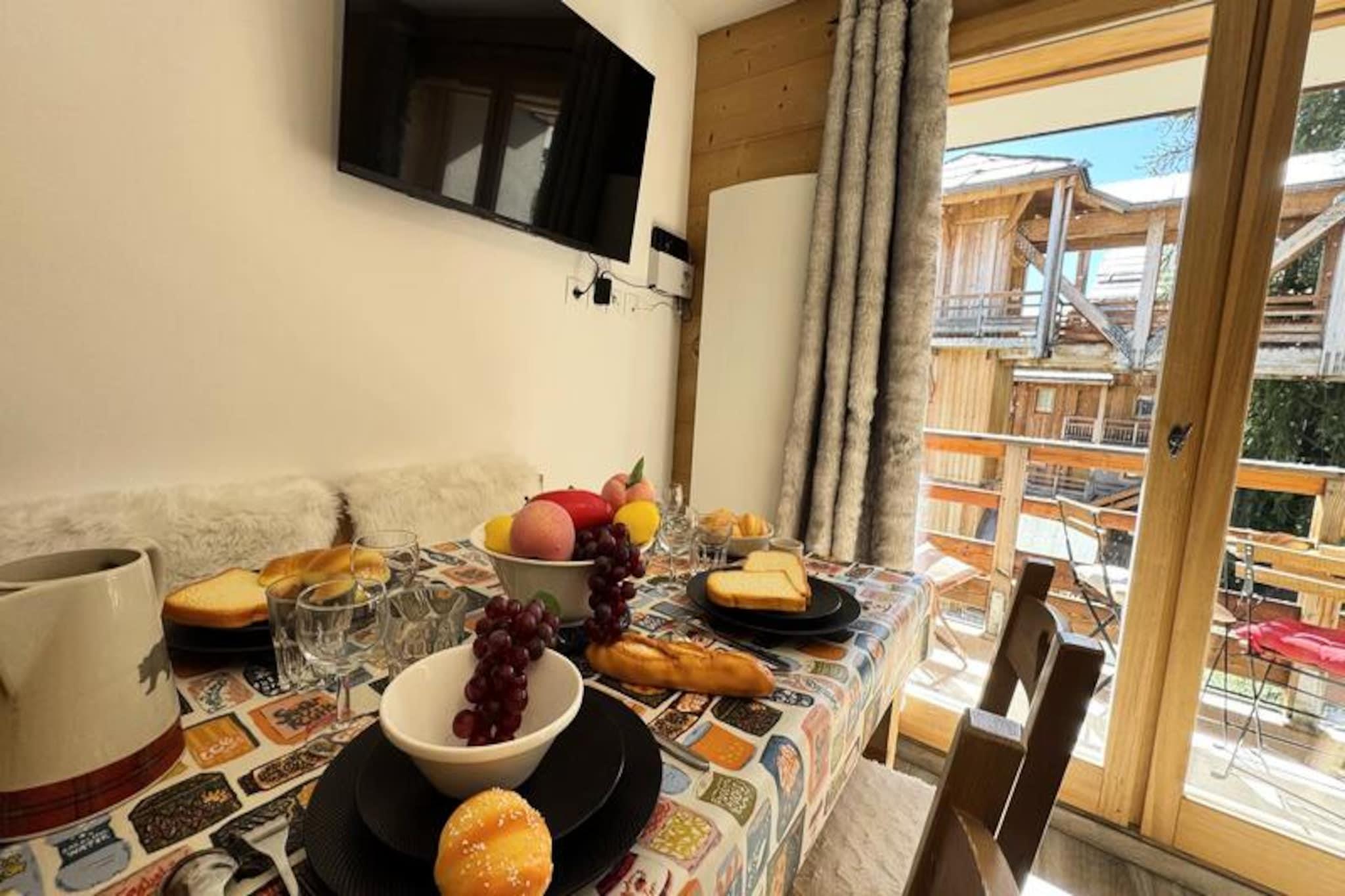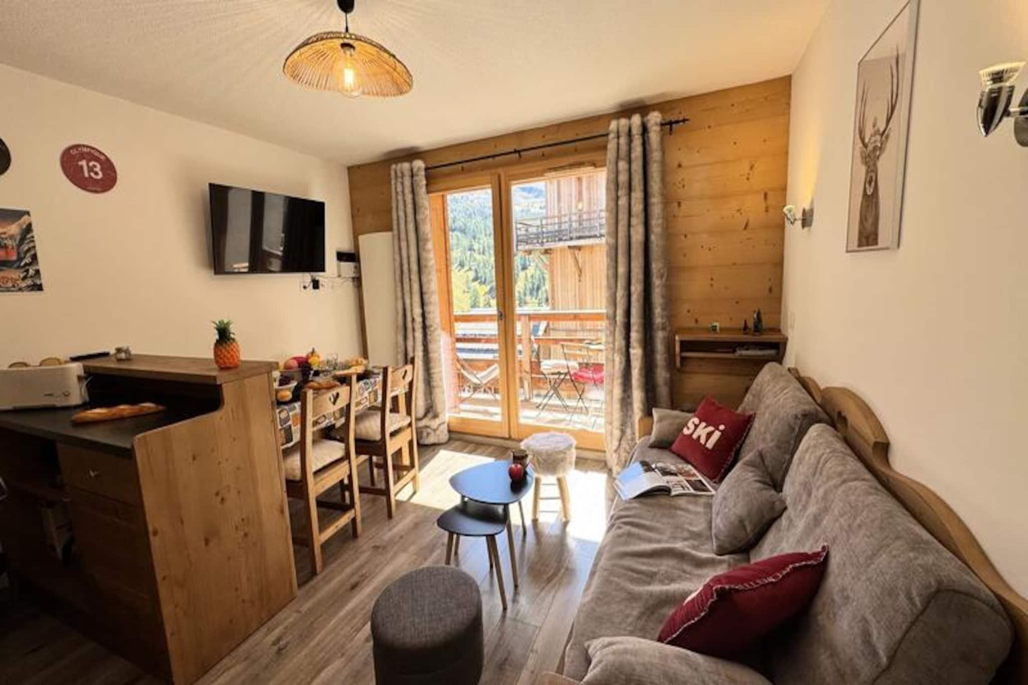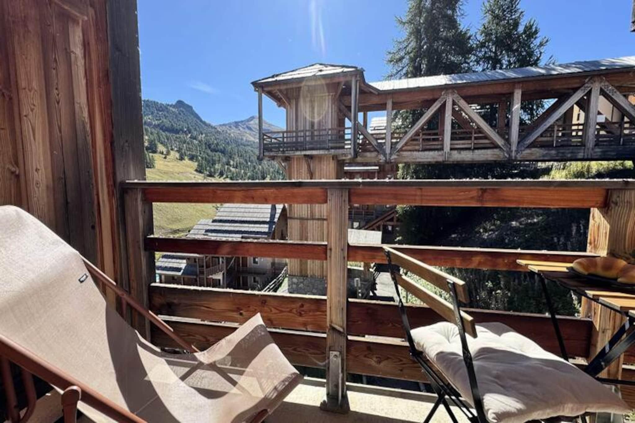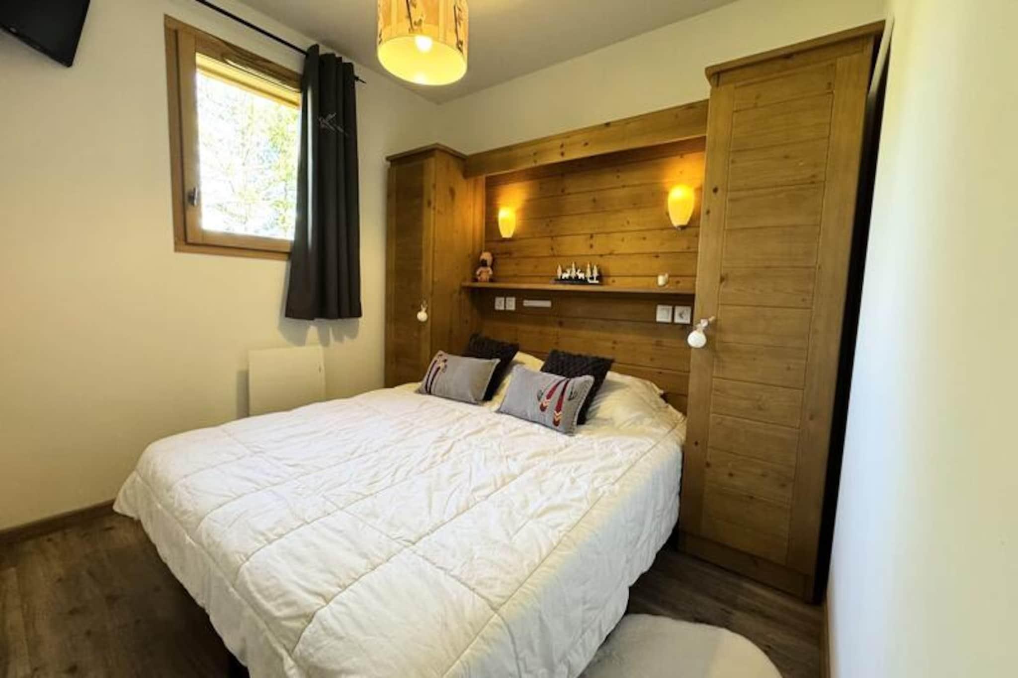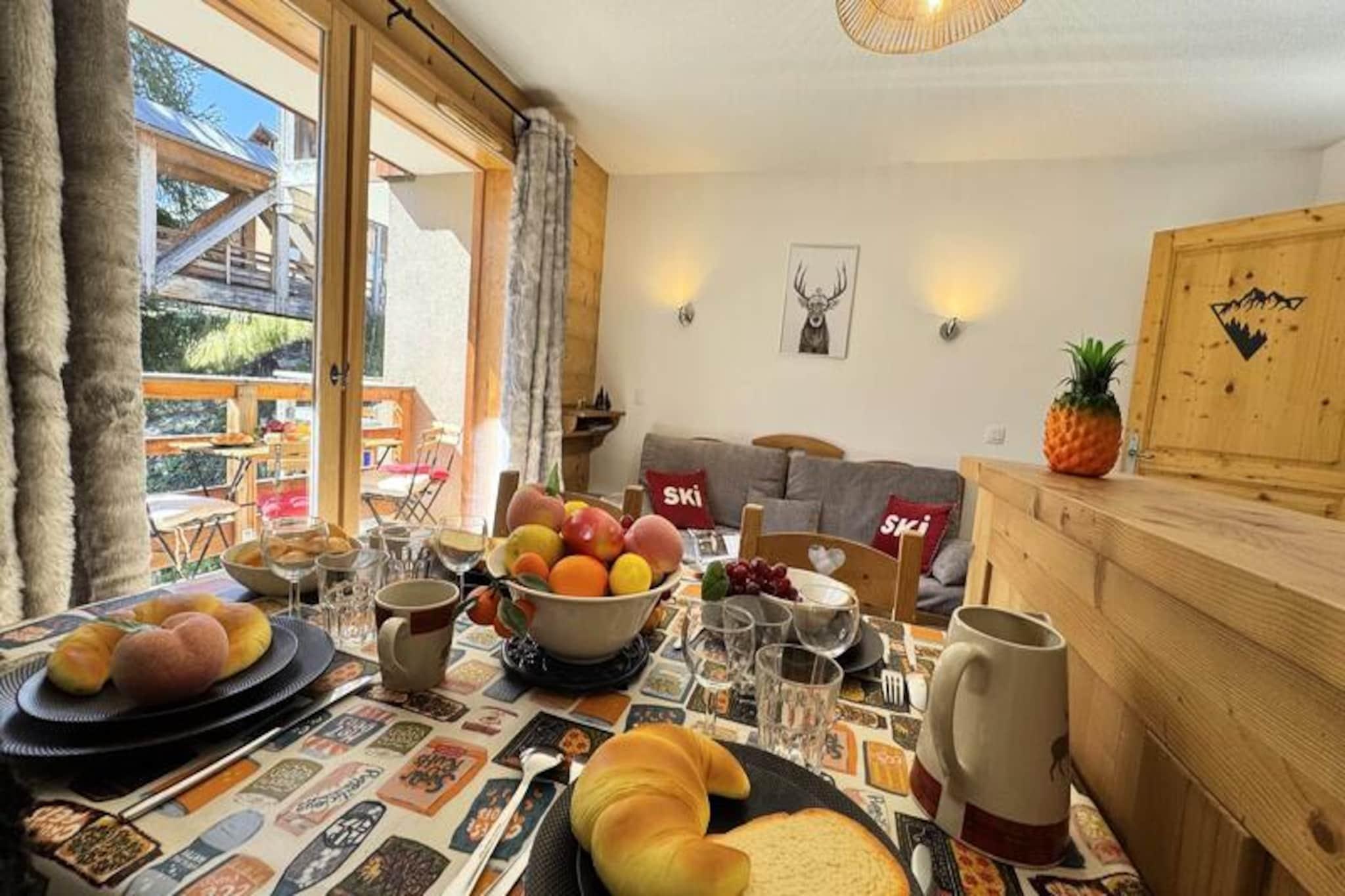 Højt over Vars' maleriske skråninger tilbyder residensen Hameau des Rennes et roligt alpint tilflugtssted, hvor charme og komfort blandes ubesværet. Denne dejlige landsby, beliggende ved foden af ??Fontbonne-stoleliften, giver direkte adgang til pisterne for erfarne skiløbere via en central elevator, hvilket gør den til et paradis for vintersportsentusiaster. Om sommeren forvandles residensen til en rolig oase med både indendørs og udendørs swimmingpools, der inviterer gæsterne til at slappe af midt i et betagende bjerglandskab. Uanset om du er her for snefyldte eventyr eller solrige vandreture, lover omgivelserne uforglemmelige øjeblikke i hjertet af Alperne. \n\nLejligheden, der er designet til op til fire gæster, kan prale af et varmt og lyst opholdsrum, der åbner ud til en solrig balkon. Forestil dig at starte din dag med morgenmad med udsigt over det majestætiske alpine landskab eller at dele en hyggelig middag efter at have udforsket stierne. Det åbne køkken er fuldt udstyret med moderne apparater, herunder opvaskemaskine, Nespresso-maskine, raclette-grill og mere, hvilket sikrer, at hvert måltid er en fornøjelse at tilberede. Et dobbeltværelse med en blød 160x200 cm seng og et fjernsyn, samt en sovesofa i stuen, der kan laves om til to separate sovepladser, giver komfort og fleksibilitet for familier eller venner, der rejser sammen. Badeværelset, komplet med håndklædetørrer og hårtørrer, samt et separat toilet, bidrager til lejlighedens bekvemmelighed.\n\nBeliggende kun 200 meter fra butikker, restauranter og skiudlejning, og betjent af en gratis shuttlebus hvert 15.-20. minut, tilbyder boligen nem adgang til alle faciliteterne i Vars Les Claux. Uanset om du er på pisterne, nyder sommerpoolene eller udforsker den charmerende landsby, er alt hvad du behøver inden for rækkevidde. Bemærk venligst, at swimmingpoolen er lukket i lavsæsonen og genåbner i sommeren 2025 efter reparationer.\n\nMed sit skirum, private parkeringsplads og uovertrufne beliggenhed er denne lejlighed den perfekte base for at skabe dyrebare minder i de franske alper. Book dit ophold i dag og oplev magien ved bjerglivet.
