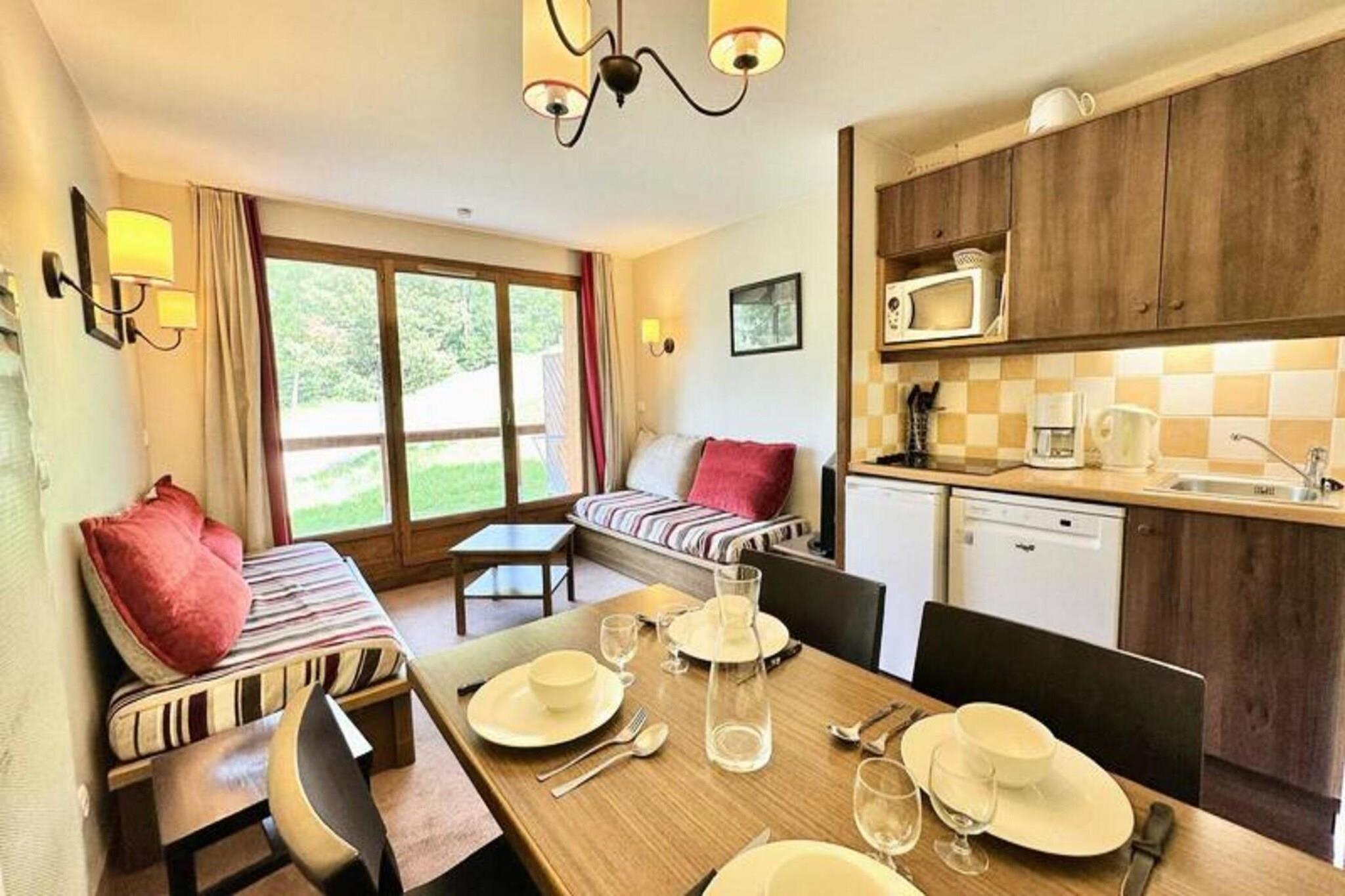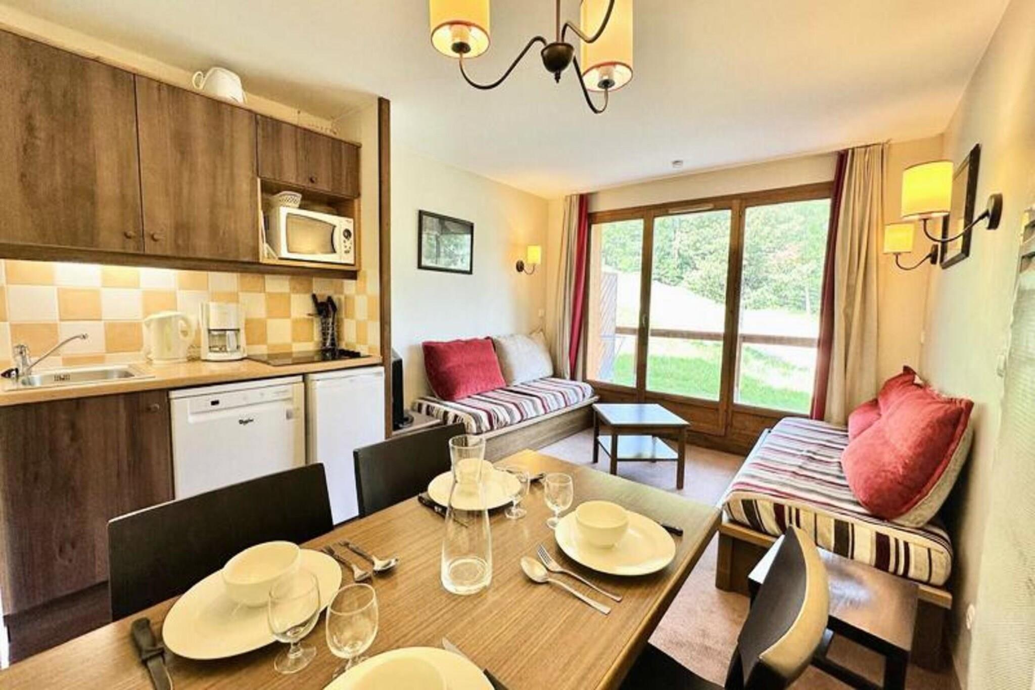 Denne ski-in ski-out lejlighed, beliggende i den fredelige, men alligevel centrale Albane-residens, tilbyder uovertruffen bekvemmelighed og komfort til din ferie i bjergene. Kun få skridt fra resortets Point Show og dets butikker, vil du nyde nem adgang til alle faciliteter, skiskoler og kælkebakken, alt sammen inden for gåafstand. Boligen har reserveret parkering med en digital kode, en opvarmet swimmingpool perfekt til afterski-afslapning og direkte adgang til pisterne fra terrassen. Nærliggende attraktioner omfatter skiløjperne, der er perfekte for vintersportsentusiaster, og landsbyens centrum til shopping og spisning. Boligen tilbyder også yderligere tjenester såsom overdækket parkering (tilgængelig mod et ekstra gebyr) og et vaskerum. Kæledyr er velkomne, og sengetøj kan leveres mod et ekstra gebyr. Denne ikke-ryger ejendom tilbyder det perfekte sted for dit bjergretræte. T2-lejligheden har en rummelig stue med en fantastisk udsigt over bjergene, et fuldt udstyret køkken med kedel, mikroovn, opvaskemaskine, brødrister og filterkaffemaskine samt et hyggeligt tv-område. Den kan rumme op til 5 personer med et soveværelse med dobbeltseng (140 cm seng) og tre enkeltsenge i stuen. Et badeværelse og separat toilet fuldender layoutet, hvilket sikrer komfort under hele dit ophold.