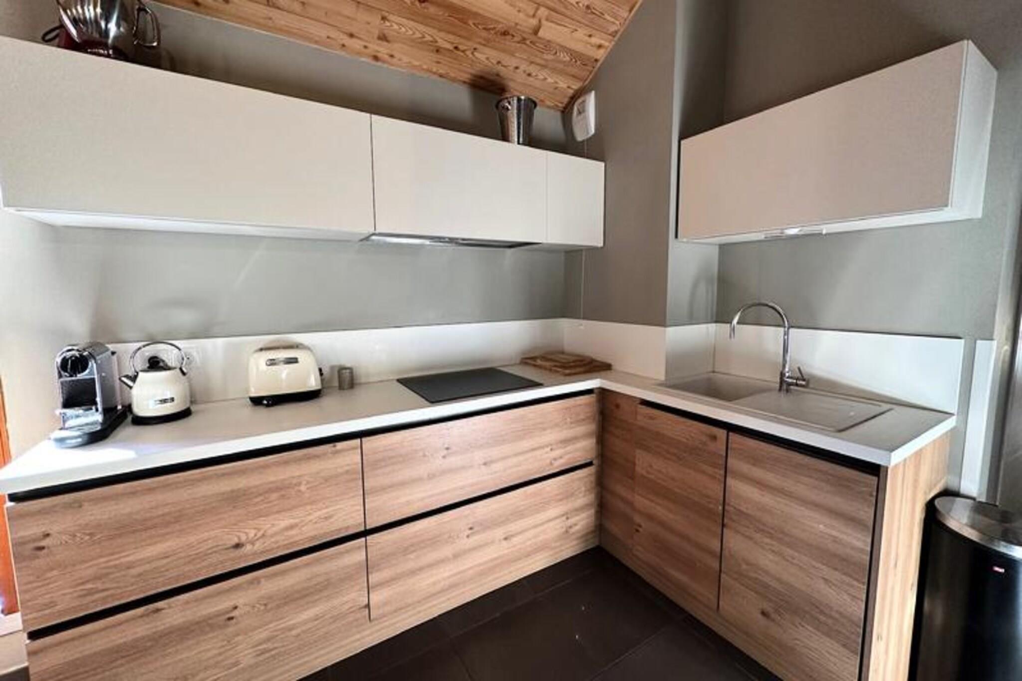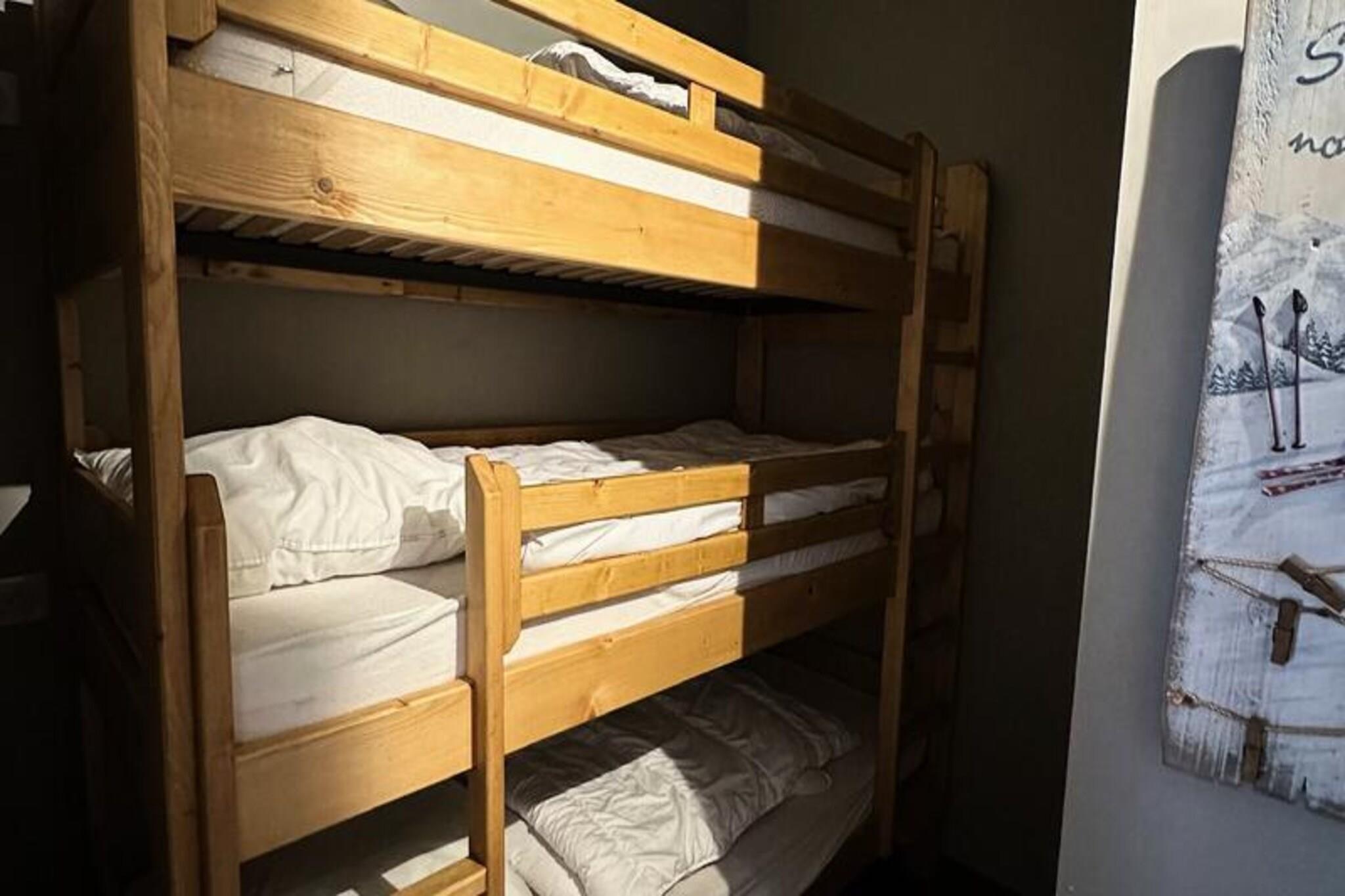 Ejendom sammen med et luksuriøst og rummeligt design kan rumme op til 8 gæster komfortabelt. Denne lejlighed på øverste etage har tre soveværelser, herunder et dobbeltværelse med eget badeværelse, et køjeværelse med tre senge og et soveværelse med dobbeltseng med en ekstra sovesofa. Fra stuen er der udgang til en sydvestvendt solterrasse med panoramaudsigt over den olympiske bane ved Sainte Marie. Ejendommen er ikke-ryger, kæledyr er ikke tilladt, og yderligere tjenester såsom slutrengøring og linned (lagner og håndklæder) er tilgængelige efter anmodning mod et ekstra gebyr. Ideelt beliggende ved foden af ??Sainte-Marie-pisterne, tilbyder denne bolig direkte adgang til skiløb, med en shuttle-stop i nærheden, som giver nem adgang til resortet på kun 15-20 minutter. Landsbyen giver en fredelig bjergatmosfære, mens den er inden for rækkevidde af resortets faciliteter. Butikker, restauranter og andre tjenester er let tilgængelige, hvilket gør det til et godt valg for både skientusiaster og dem, der leder efter et afslappende tilflugtssted. Lejligheden har et fuldt udstyret åbent køkken med moderne apparater, herunder induktionskomfur, køleskab, fryser, traditionel ovn, mikroovn, opvaskemaskine og Nespresso kaffemaskine. Gæsterne kan også nyde en raclettemaskine og KitchenAid-mixer for ekstra bekvemmelighed. Til underholdning er der et storskærms-tv og en lille Bose-højttaler. Yderligere faciliteter inkluderer en Dyson-støvsuger, strygejern, kedel, brødrister og citruspresse. Lejligheden er designet med komfort i tankerne, og tilbyder alle de nødvendige apparater til et bekvemt og behageligt ophold.