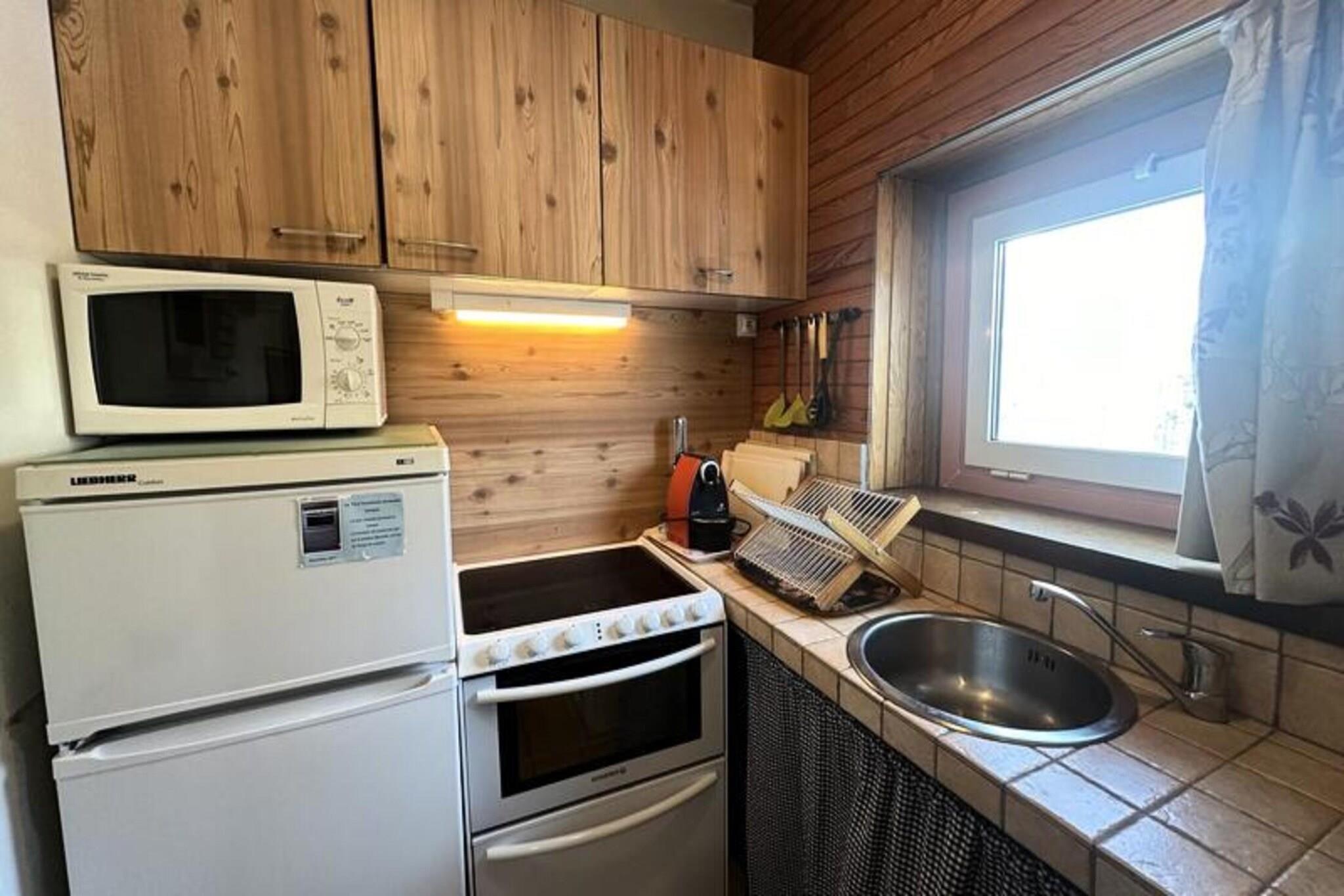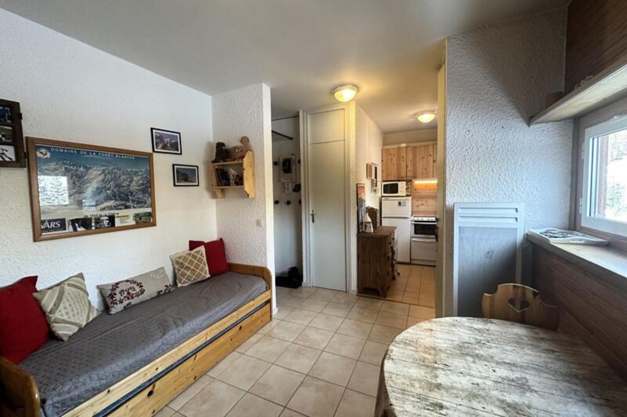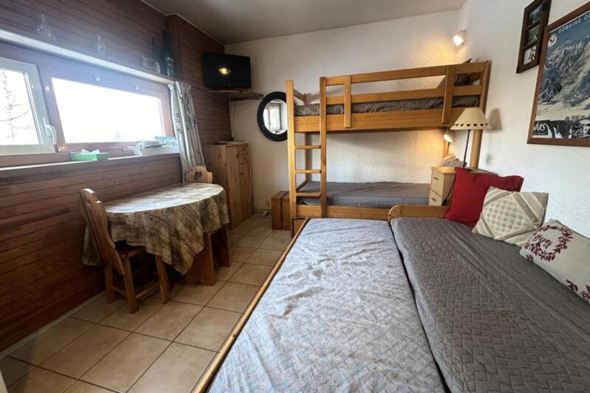 Denne charmerende lejlighed tilbyder en uovertruffen beliggenhed "på pisterne", som giver direkte adgang til skilifterne og en fantastisk udsigt over konkurrencestadionet og de omkringliggende pister. Skirummet giver nem adgang til foden af ??Sibière-stoleliften, mens fodgængeradgang fører til det pulserende Point Show-område, hvor du finder en række butikker, restauranter og andre faciliteter for din bekvemmelighed. Lejligheden har en rummelig stue med en køjeseng og en udtrækssofa, der kan omdannes til en dobbeltseng, hvilket tilbyder fleksible sovepladser. For dem, der elsker udendørs, er denne bolig ideelt beliggende til skiløb og snowboarding, med nem adgang til pisterne. Om sommeren byder området på muligheder for vandreture og udforskning af de smukke alpine omgivelser. Med sin centrale beliggenhed, nærhed til faciliteter og betagende udsigt er denne lejlighed det perfekte valg til dit bjergretræte. Det åbne køkken er fuldt udstyret med en mikrobølgeovn, traditionel ovn, opvaskemaskine, brødrister, kedel, Nespresso-kaffemaskine og en raclettemaskine, hvilket gør det perfekt til at tilberede måltider efter en dag på pisterne. Badeværelset indeholder bruseniche, håndvask og toilet.