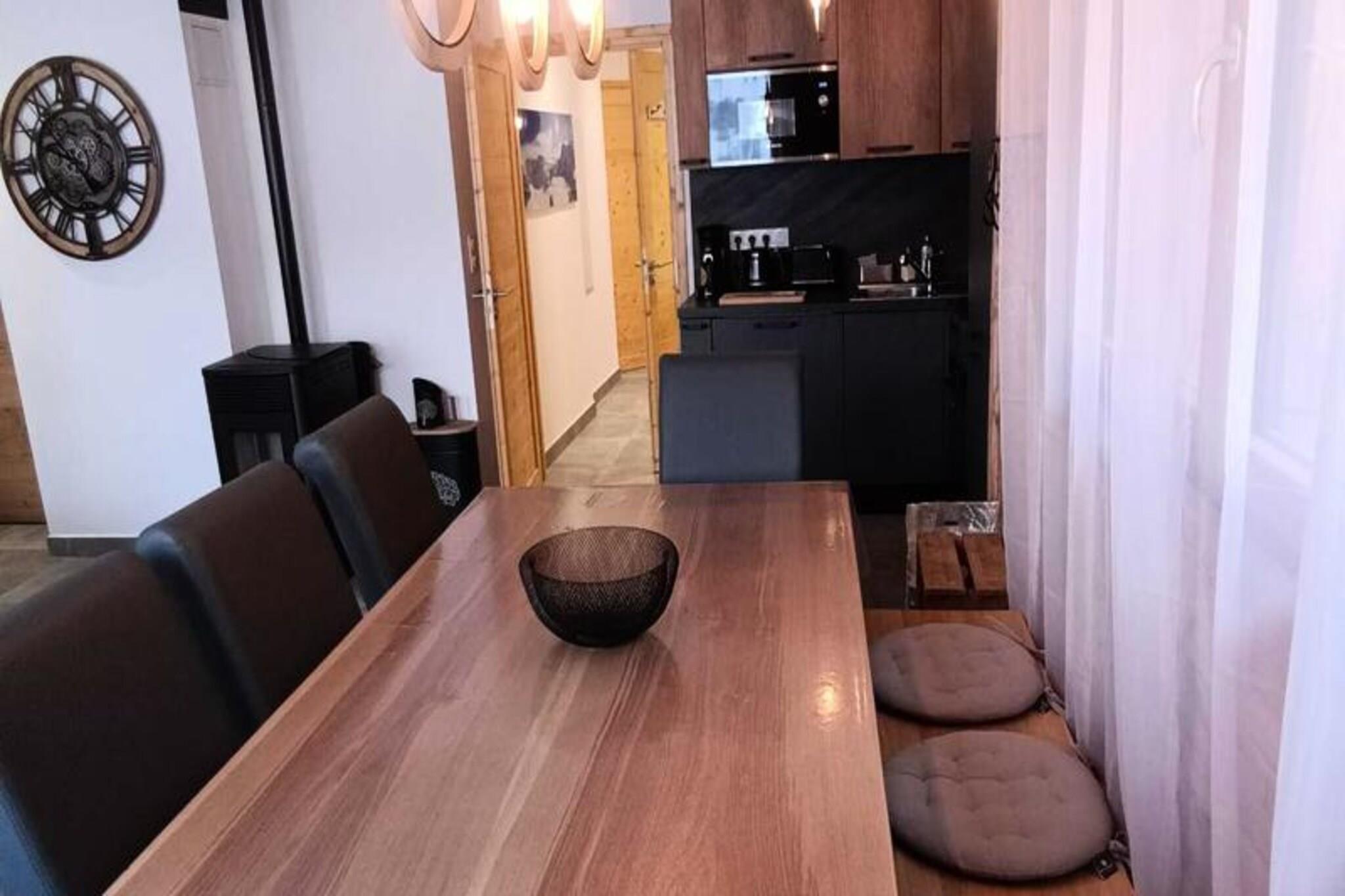Denne charmerende og nybyggede bolig har fire lejligheder og er designet i stil med en traditionel hytte, der tilbyder en hyggelig og elegant atmosfære. Beliggende i hjertet af den maleriske landsby Vars Sainte-Catherine, er ejendommen perfekt placeret med en gratis shuttle-stop lige udenfor, hvilket giver nem adgang til nærliggende aktiviteter og pister. Selve lejligheden kan komfortabelt rumme 5 til 7 personer, med et soveværelse med dobbeltseng, der åbner på ydersiden og har et fjernsyn. Lejligheden byder på to skønne terrasser, perfekt til at nyde den fantastiske udsigt over bjergene, og indeholder en rummelig stue med en varm og indbydende pilleovn. Det åbne køkken forbedrer rumfølelsen og er fuldt udstyret med moderne apparater, herunder en opvaskemaskine, kedel, brødrister, traditionel ovn, mikroovn og en SENSEO kaffemaskine, hvilket sikrer bekvemmelighed og komfort under dit ophold. Et brusebad og et separat toilet fuldender lejlighedens faciliteter. Sengetøj er tilgængeligt efter anmodning mod et ekstra gebyr på EURO 16 per person (lagner og håndklæder), og slutrengøring er ikke inkluderet i lejeprisen. Kæledyr er ikke tilladt, og lejligheden er strengt røgfri. Der kræves et depositum på 600 EURO ved ankomst. Uanset om du besøger for at stå på ski om vinteren eller vandre i de varmere måneder, tilbyder denne lejlighed en ideel base for at nyde alt, hvad Vars Sainte-Catherine har at tilbyde.