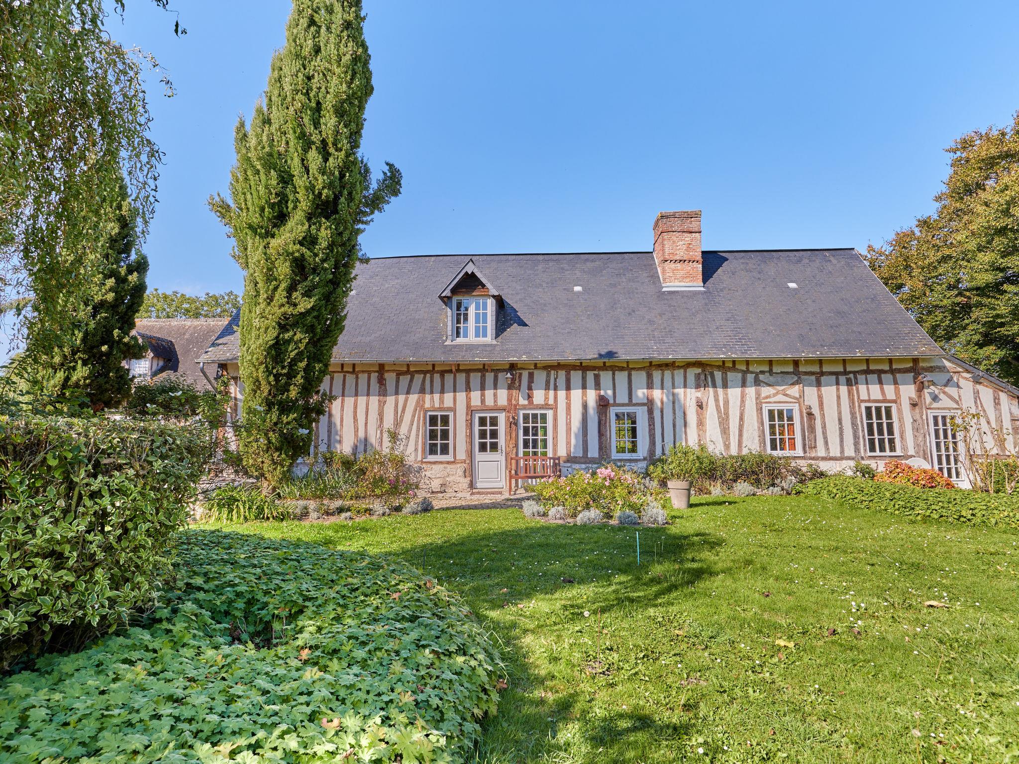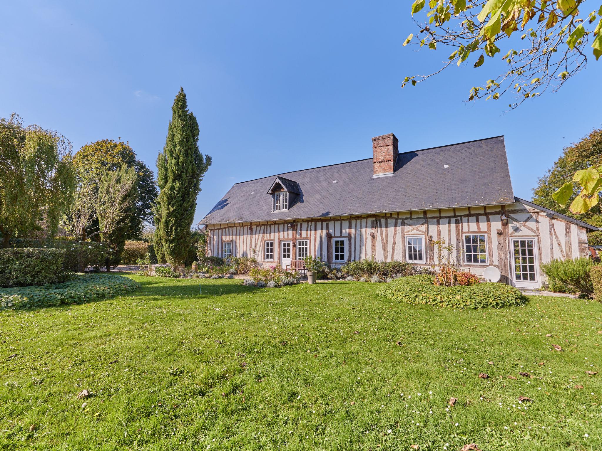 House "La longère", from the 16th century, surrounded by trees and fields. Property composed of main house and outbuilding, in the resort 300 m from the centre of Vatteville la rue, in a quiet position, 6 km from the edge of the forest, 50 km from the sea, 50 km from the beach. Private: natural state property 2'500 m2, garden (fenced) with lawn 3'000 m2, swimming pool angular (10 x 4 m, depth 145 - 145 cm, seasonal availability: 15.Jun. - 15.Sep.). Parking. Grocery 1 km, bus stop "Centre" 17.9 km. Golf course (18 hole) 20 km, riding stable 5 km. Nearby attractions: Honfleur 60 km, Deauville 65 km, Le Havre 60 km, Etretat 70 km, Rouen 60 km, Abbaye de jumieges 15 km.