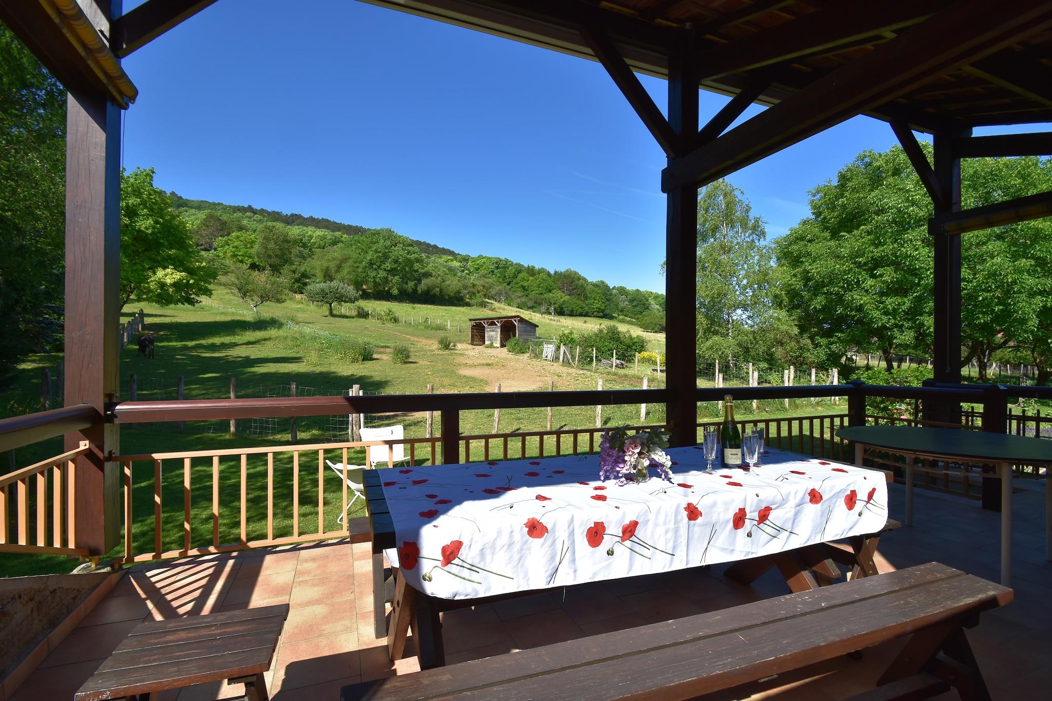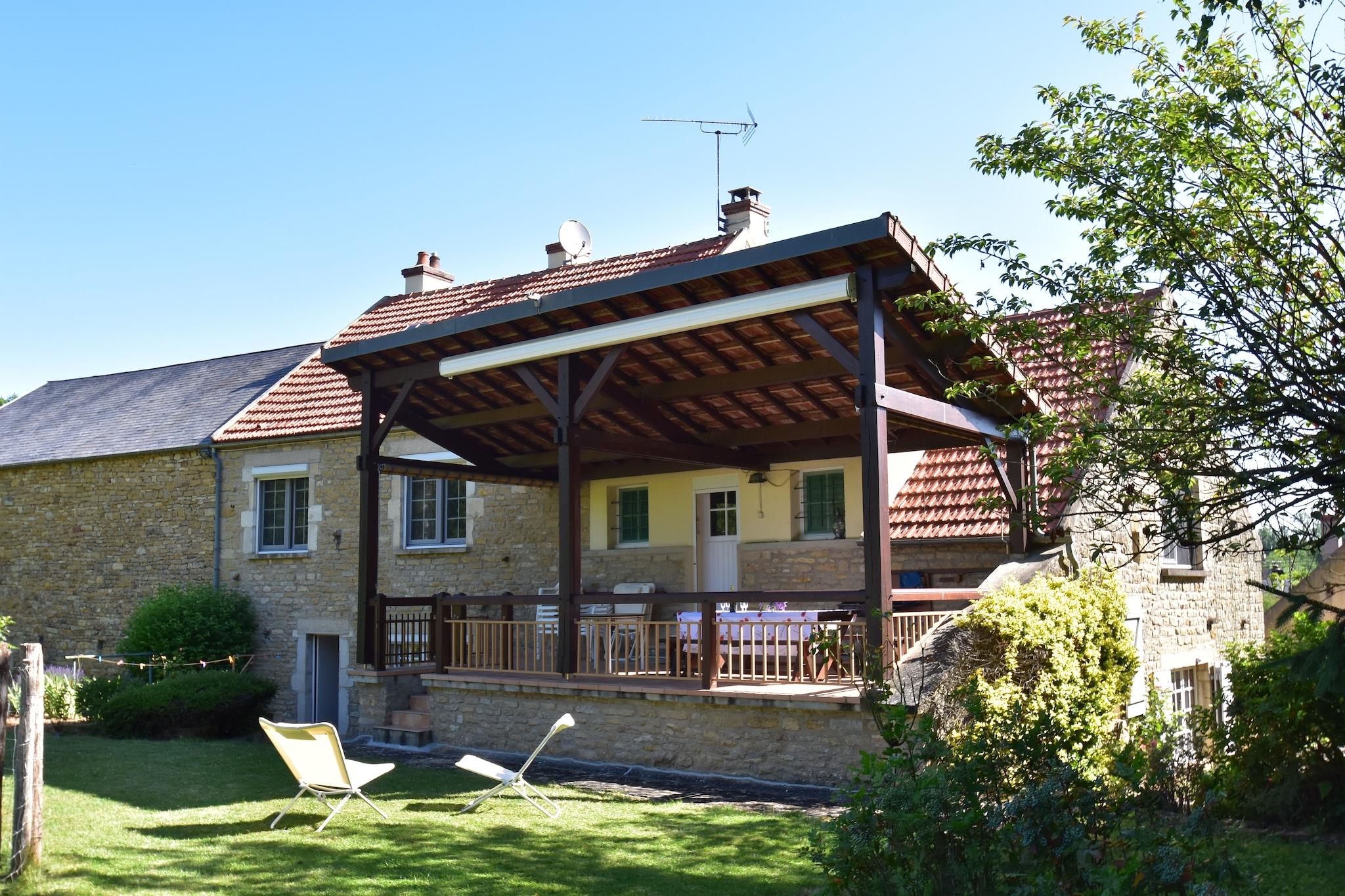 Dette fritliggende hus har en overdækket terrasse med vidtrækkende udsigt. Her kan du tilbringe varme sommeraftener. Huset har et stort opholdsområde med flere siddepladser, et læsehjørne og en bar. Indkvarteringen er ideel til flere familier eller en stor gruppe af venner. Ejerne bor på den tilstødende grund (ikke overfor) og står til rådighed for eventuelle spørgsmål under opholdet. Aktiviteter i området omfatter kanosejlads, besøg i grotter, vandreture, cykling og vinsmagning. Besøg også Avallon (6 km). Denne by byder på alle slags kirker, et historisk kvarter, gamle huse, bastioner og tårne. Du kan også finde fritidsaktiviteter som f.eks. en swimmingpool, indendørs og udendørs tennisbaner, biblioteker, biografer, eventyrsport og museer. Du kan tage på vandreture og cykelture hjemmefra. Der er masser af ruter, der venter på dig! Både på forsiden og bagsiden af huset er der flere siddepladser. Haven er fuldt indhegnet og grænser op til en eng, hvor æsler græsser.