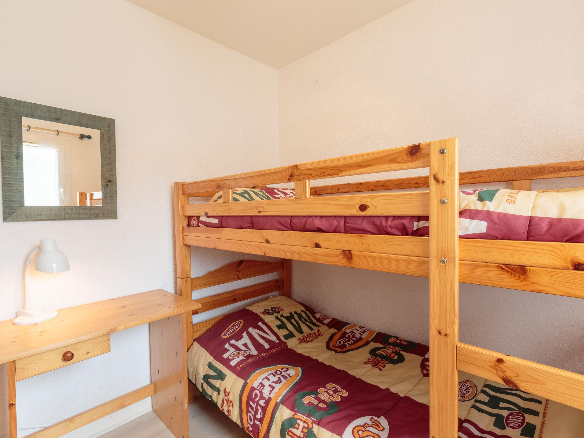 4-room house 76 m2 on 2 levels. Modern furnishings: living/dining room with TV (flat screen). 2 rooms, each room with 1 french bed (1 x 140 cm, length 190 cm). 1 room with 1 x 2 bunk beds (90 cm, length 190 cm). Open kitchen (4 hot plates, oven, dishwasher, microwave). Shower, sep. WC. Upper floor: gallery with sloping ceilings with 1 french bed (1 x 140 cm, length 190 cm). Electric heating. Terrace 14 m2, garden 350 m2. Terrace furniture. Facilities: washing machine. Internet (WiFi, extra). Parking (2 cars). Please note: smoke alarm. Instead of an enclosed bedroom, some sleeping areas are located in an open-plan area (gallery, alcove, etc.).